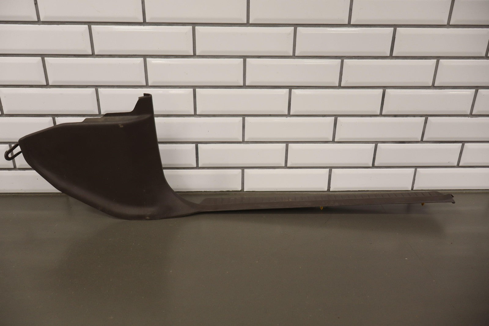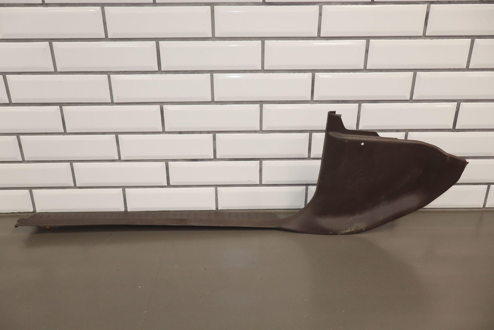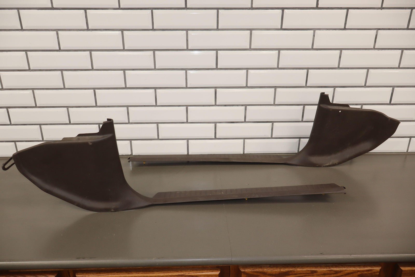 Par izquierdo, placas de umbral delanteras, marrón, rayones/rayones leves, manchas leves, 1 pestaña faltante (roja)