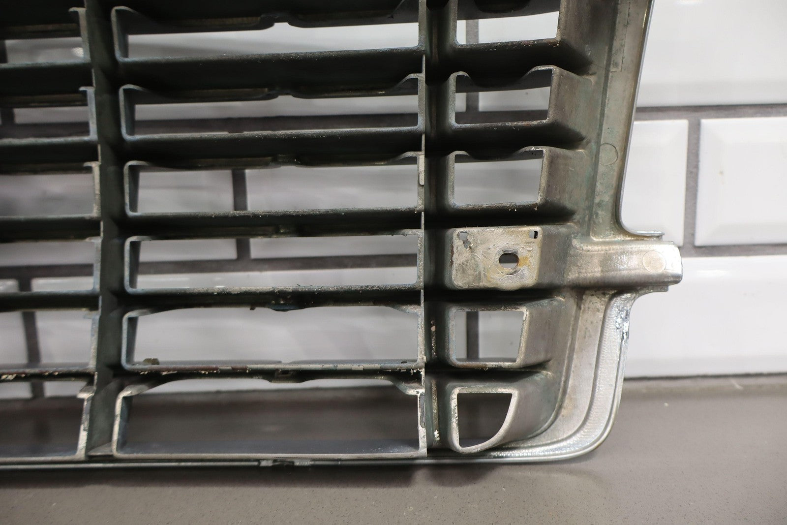 Parrilla superior, desgaste leve a aceptable, grieta grande en el centro (superior), múltiples lascas de piedras