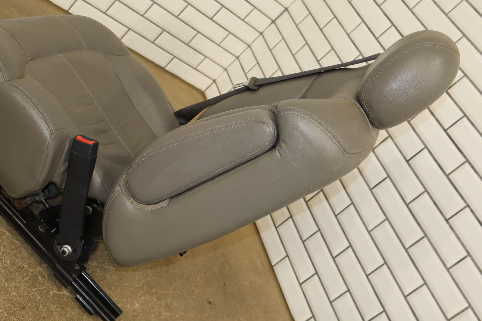 Rh Front Leather Bucket, Graphite/medium Gray (122), Mild Wear, Light Staining, All Power Functions Work Properly