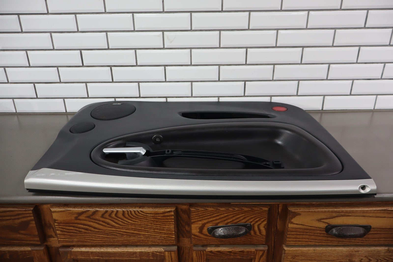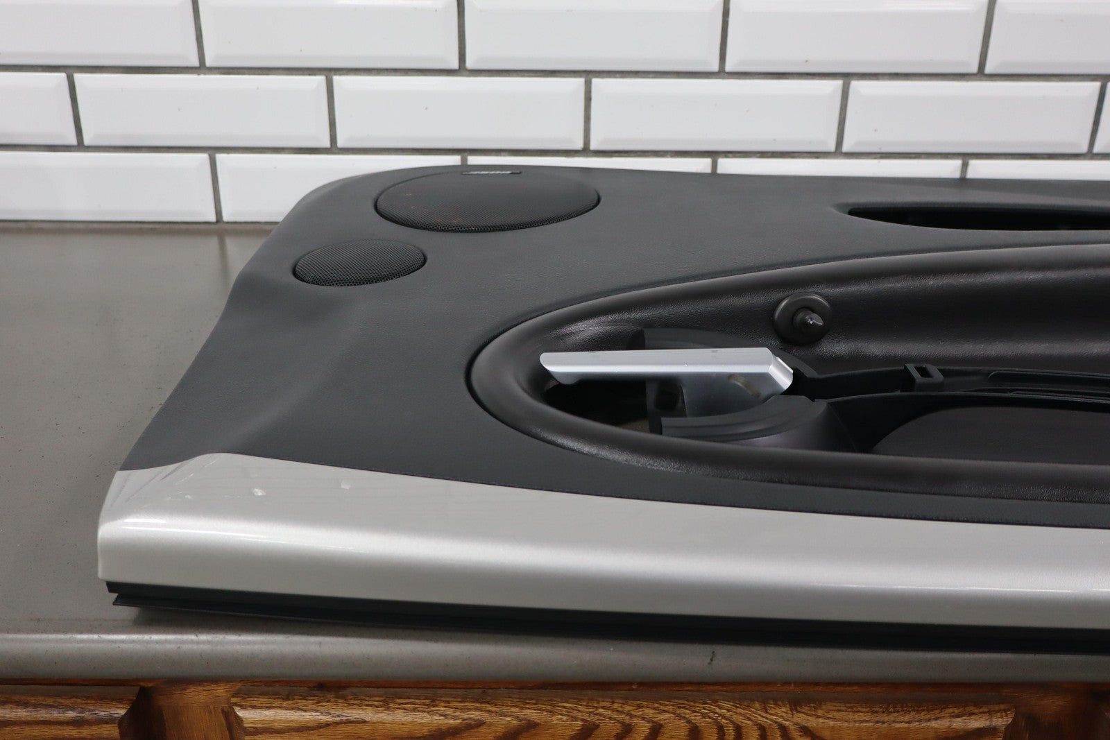 Lh, Ébano (192) con detalles en Plata Metalizada Ricochet (67u), Sin detalles en el mango interior, Material del apoyabrazos levantado, Ligeros signos de desgaste