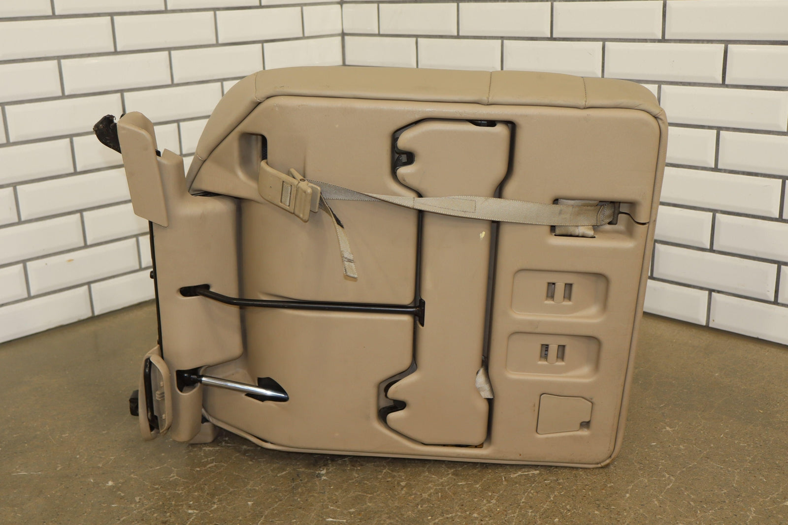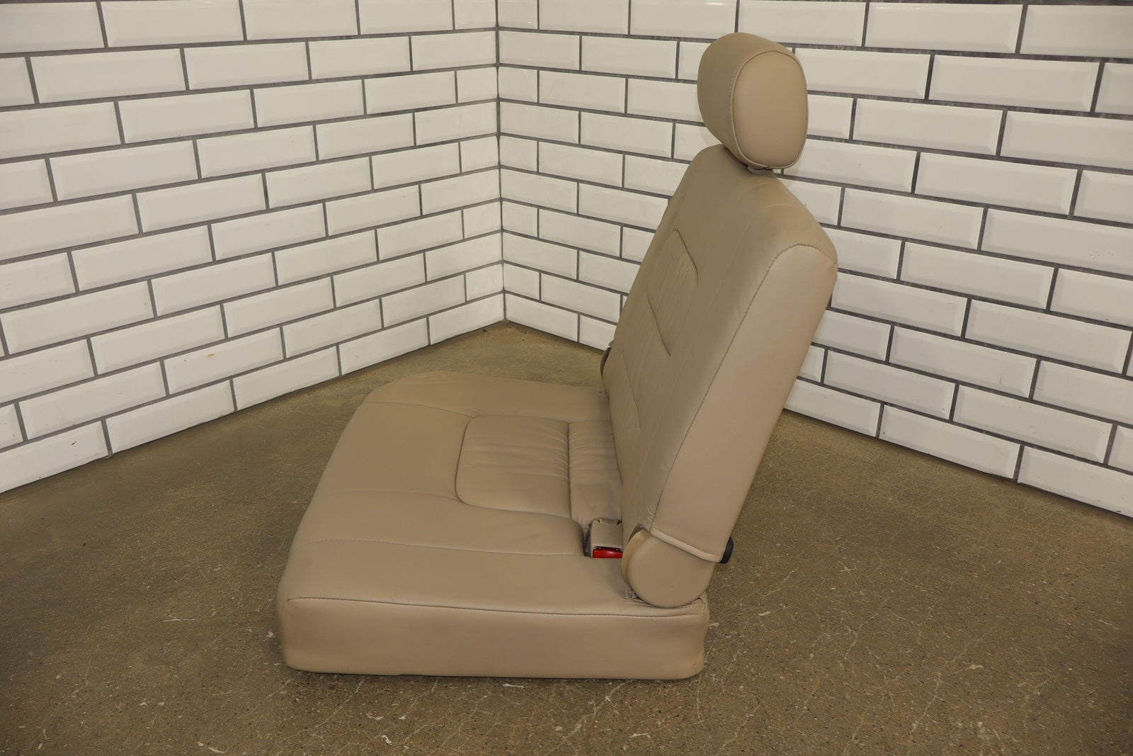 Asiento plegable de tercera fila, color marfil, cuero