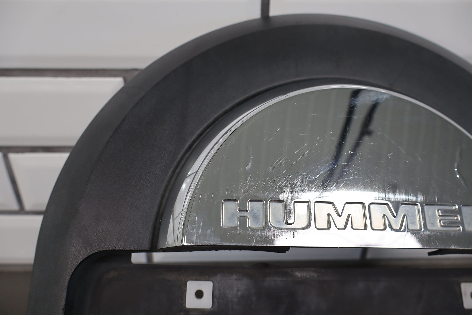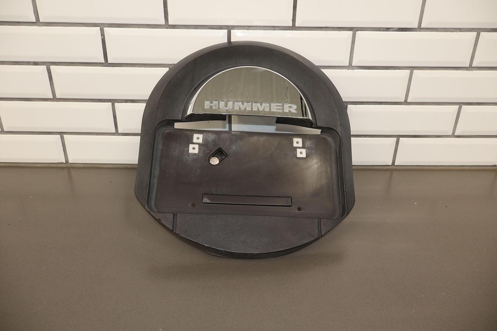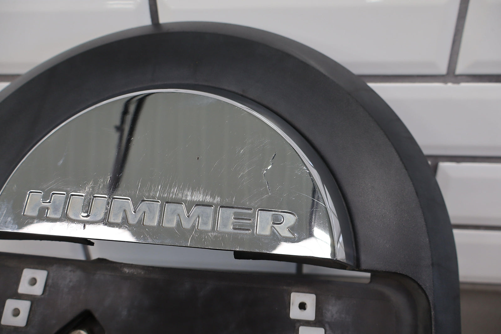 Spare Tire Mounted License Plate Bracket, Mild Damage To Chrome, Decent Sun Fade, Multiple Scuffs/scrapes