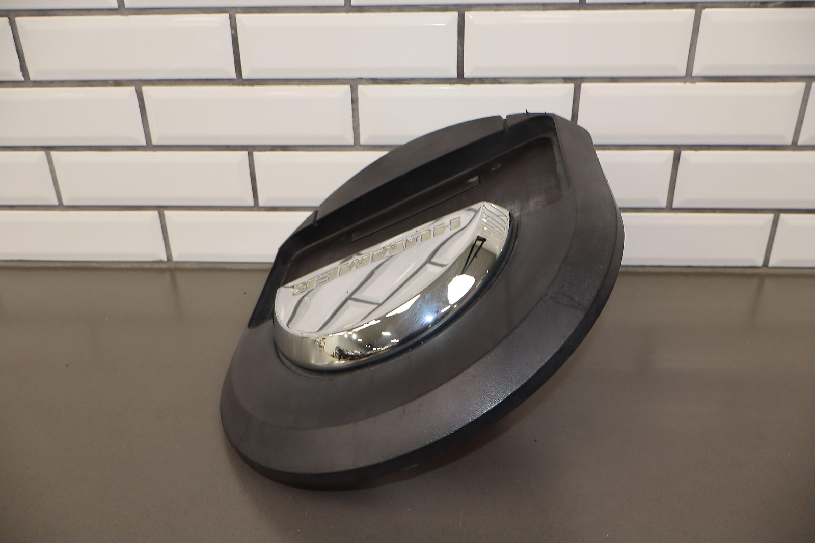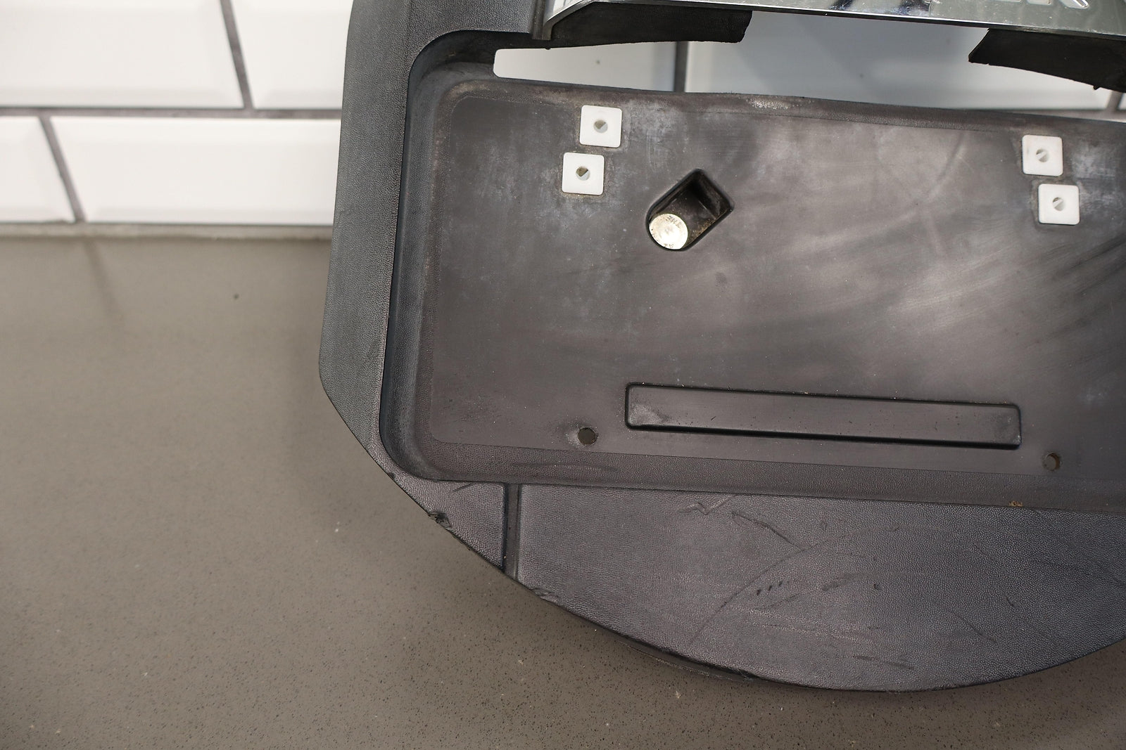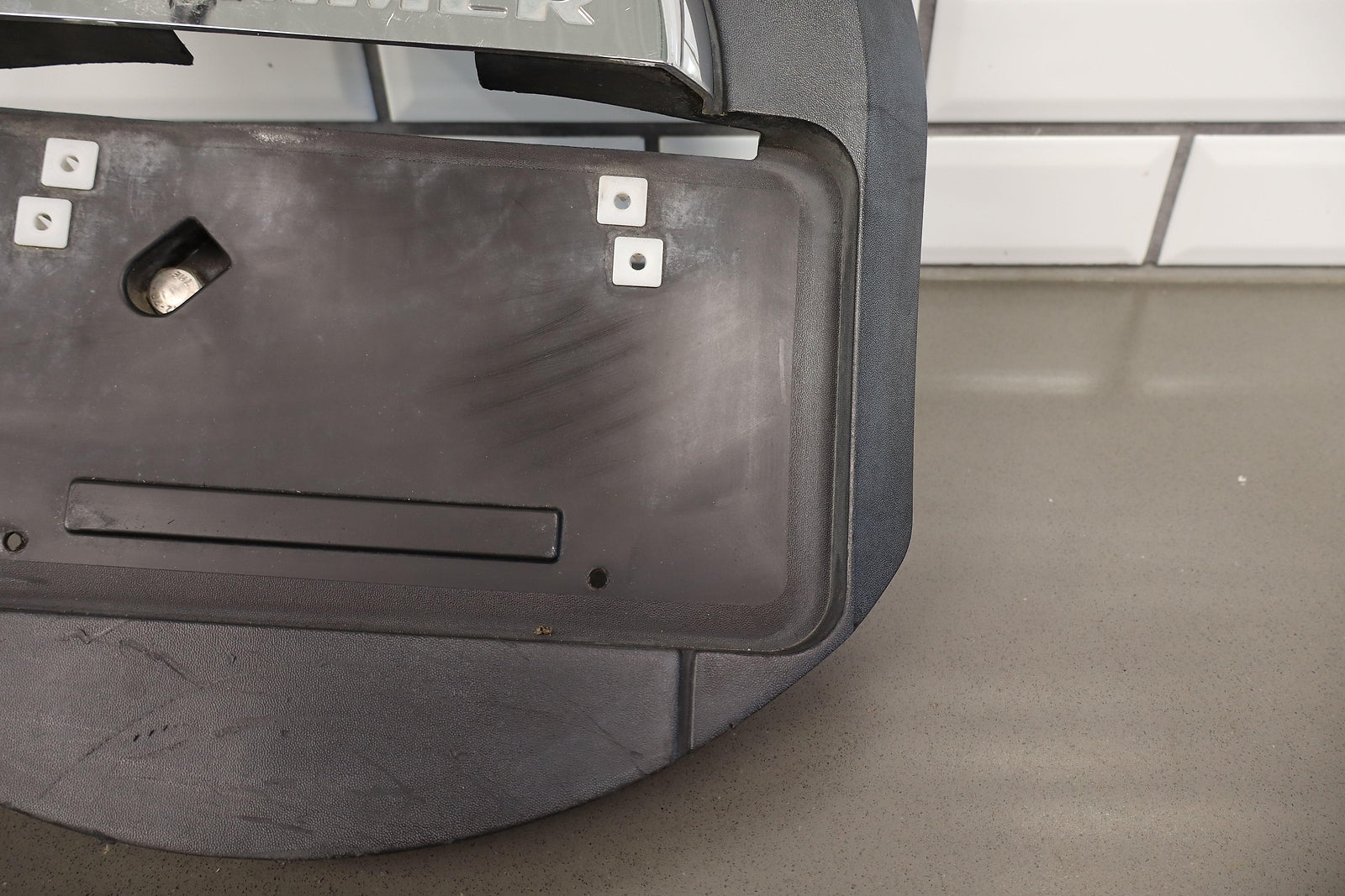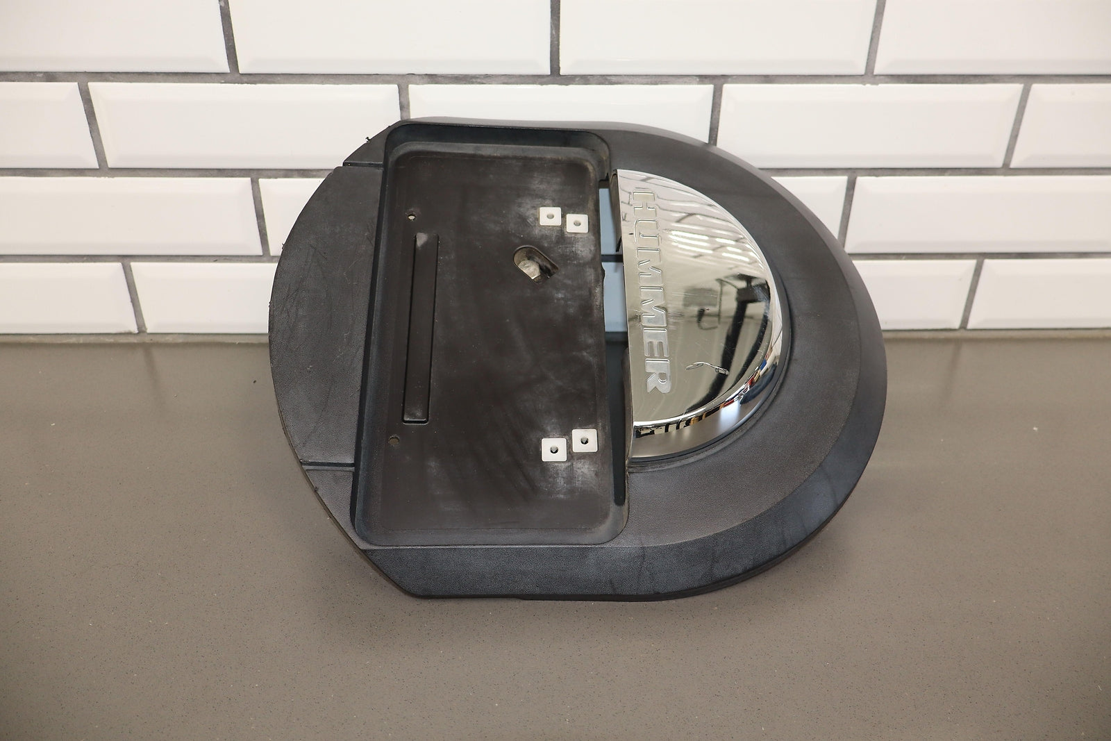 Spare Tire Mounted License Plate Bracket, Mild Damage To Chrome, Decent Sun Fade, Multiple Scuffs/scrapes