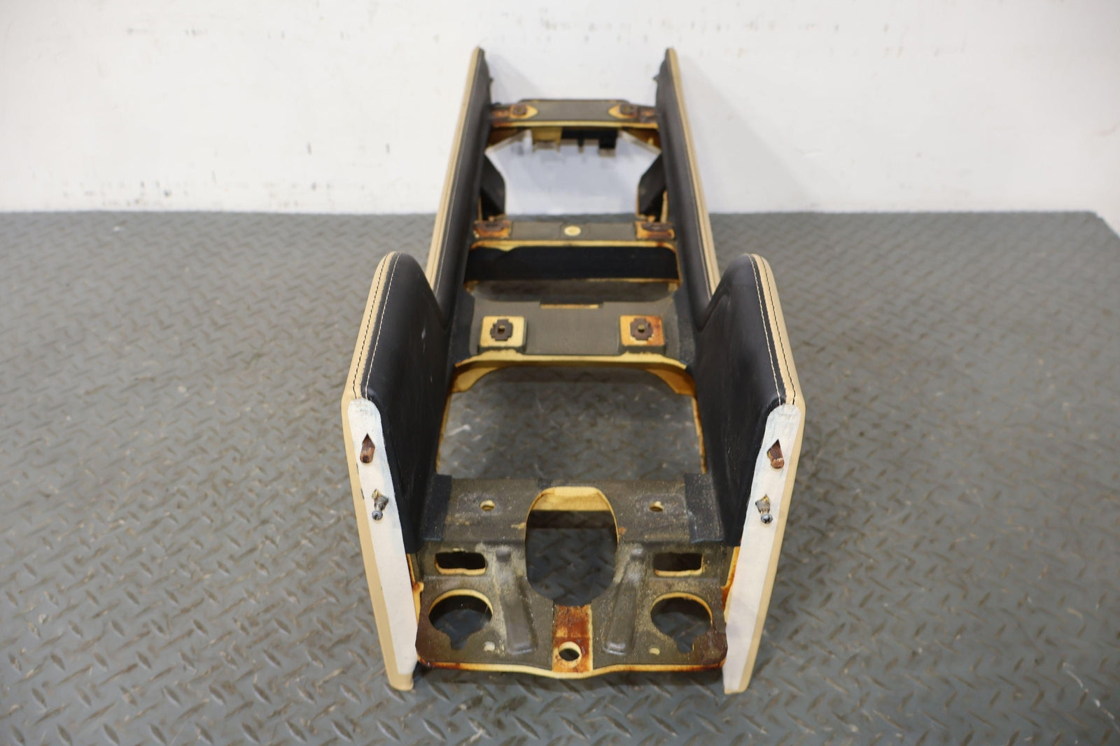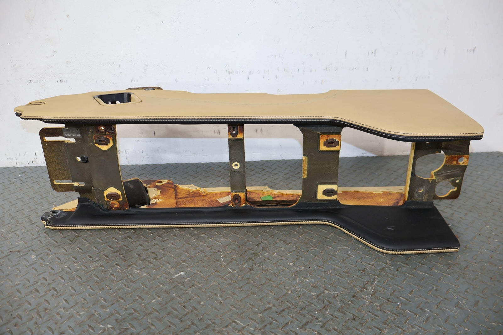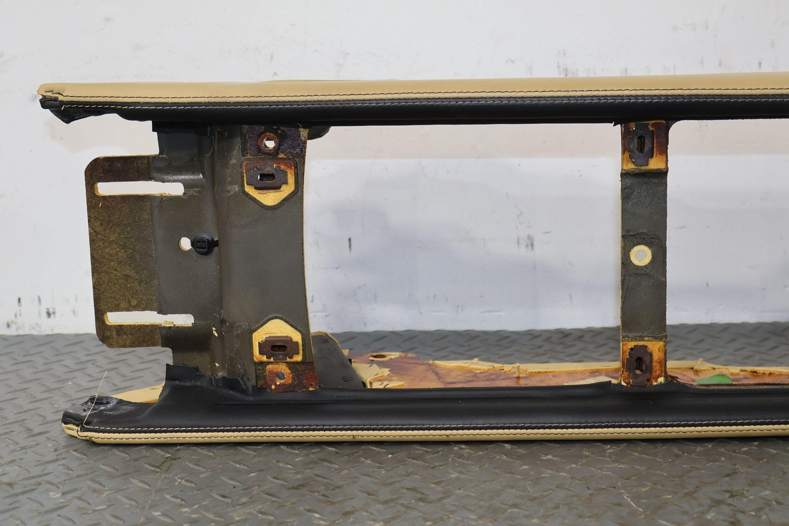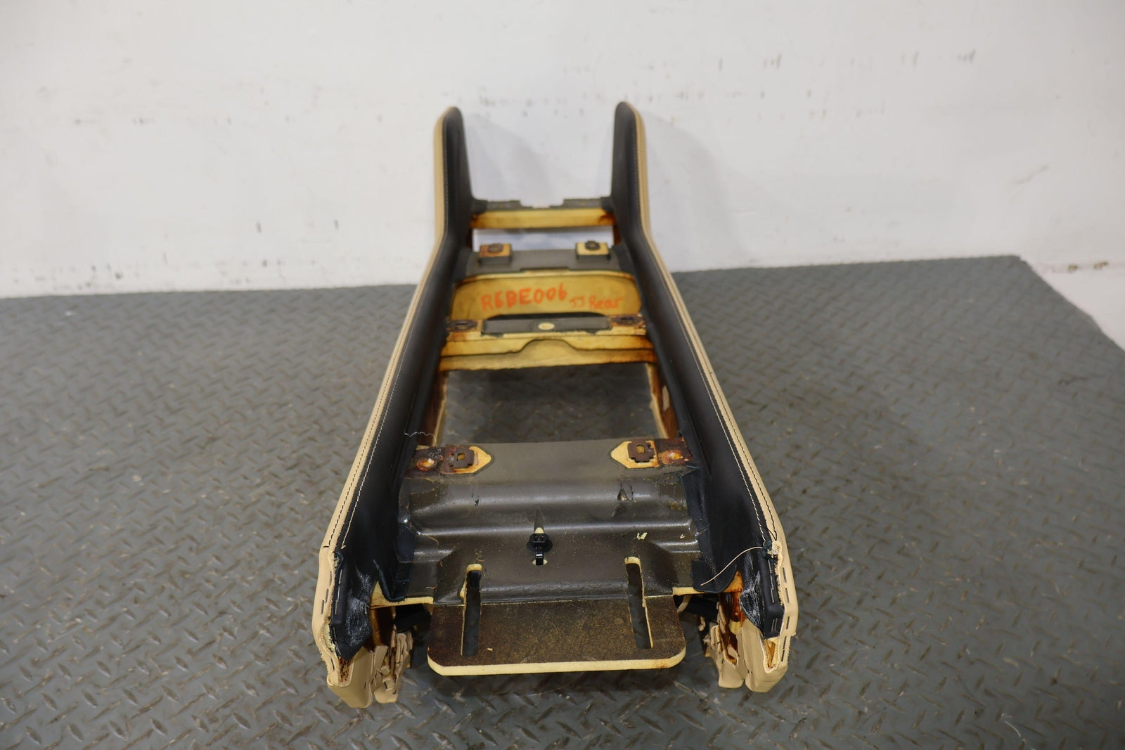 Consola trasera de piso desnudo, color azafrán (mhd), manchas leves, múltiples rayones, montaje sólido