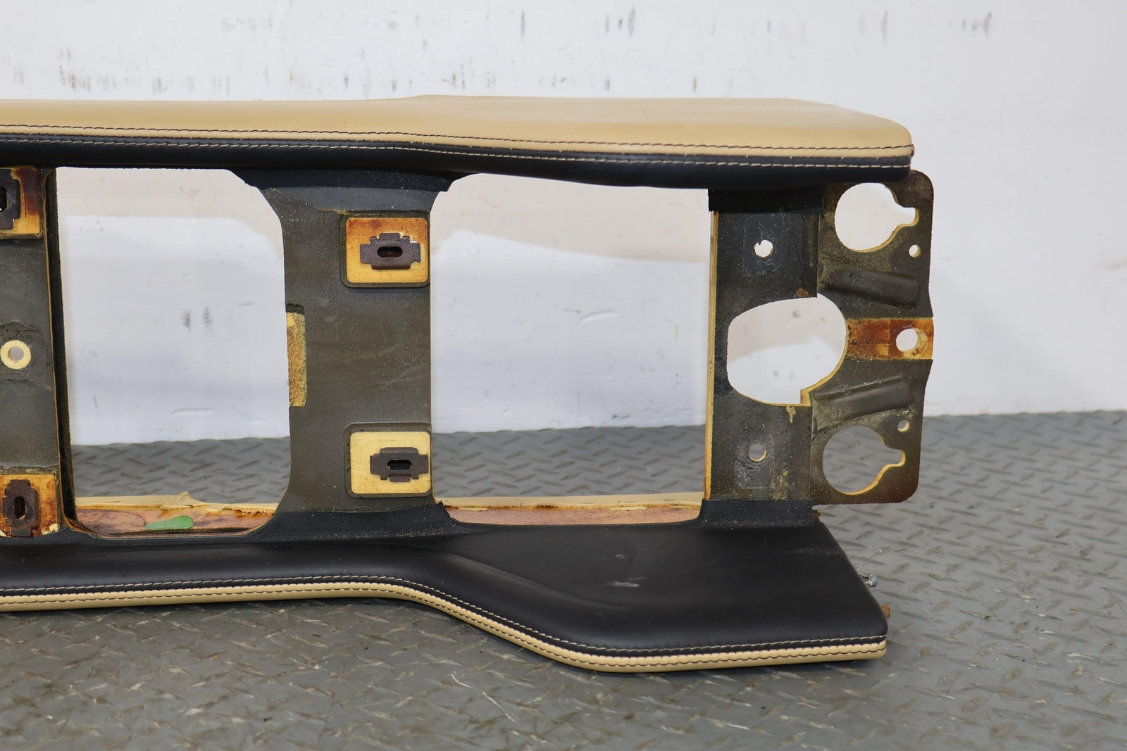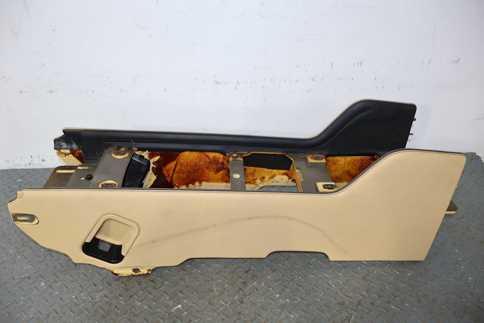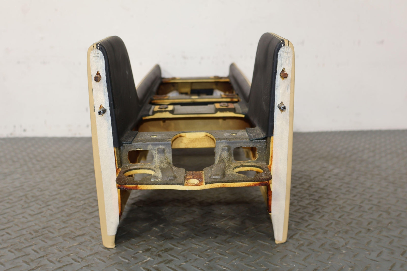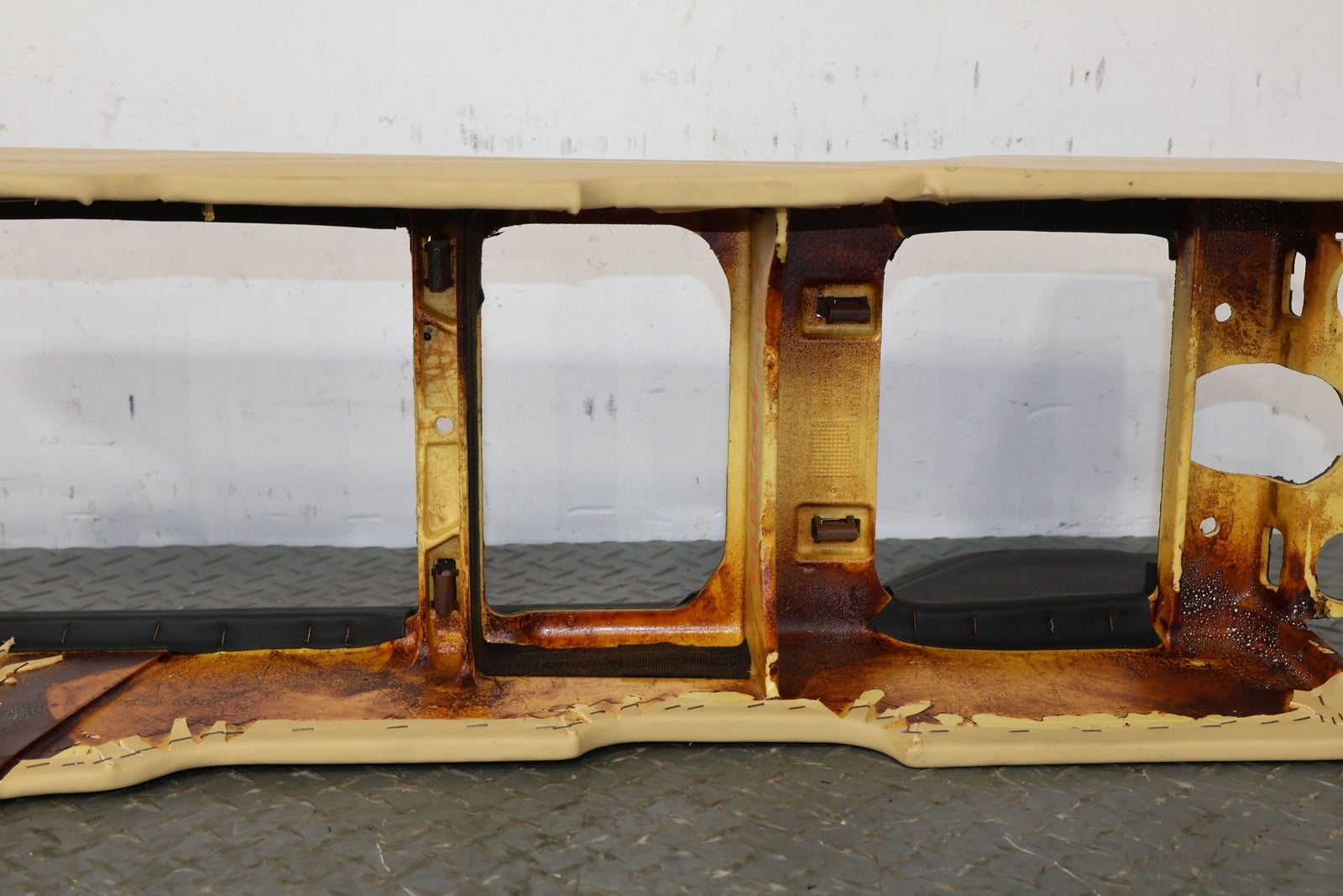 Consola trasera de piso desnudo, color azafrán (mhd), manchas leves, múltiples rayones, montaje sólido