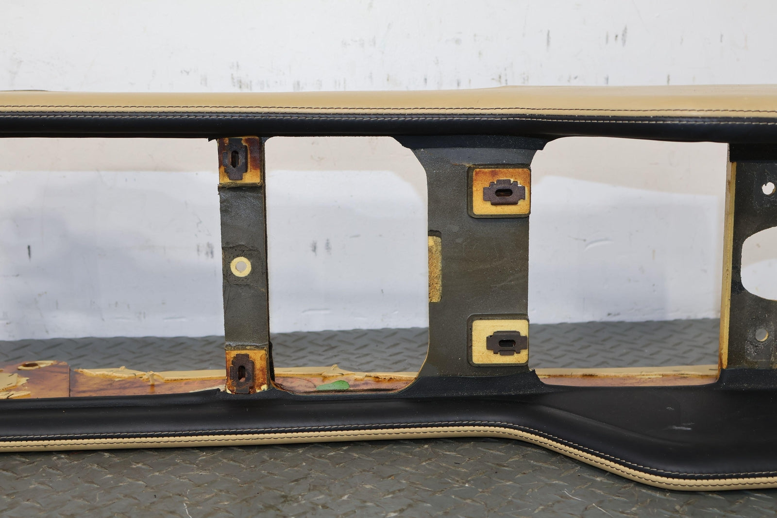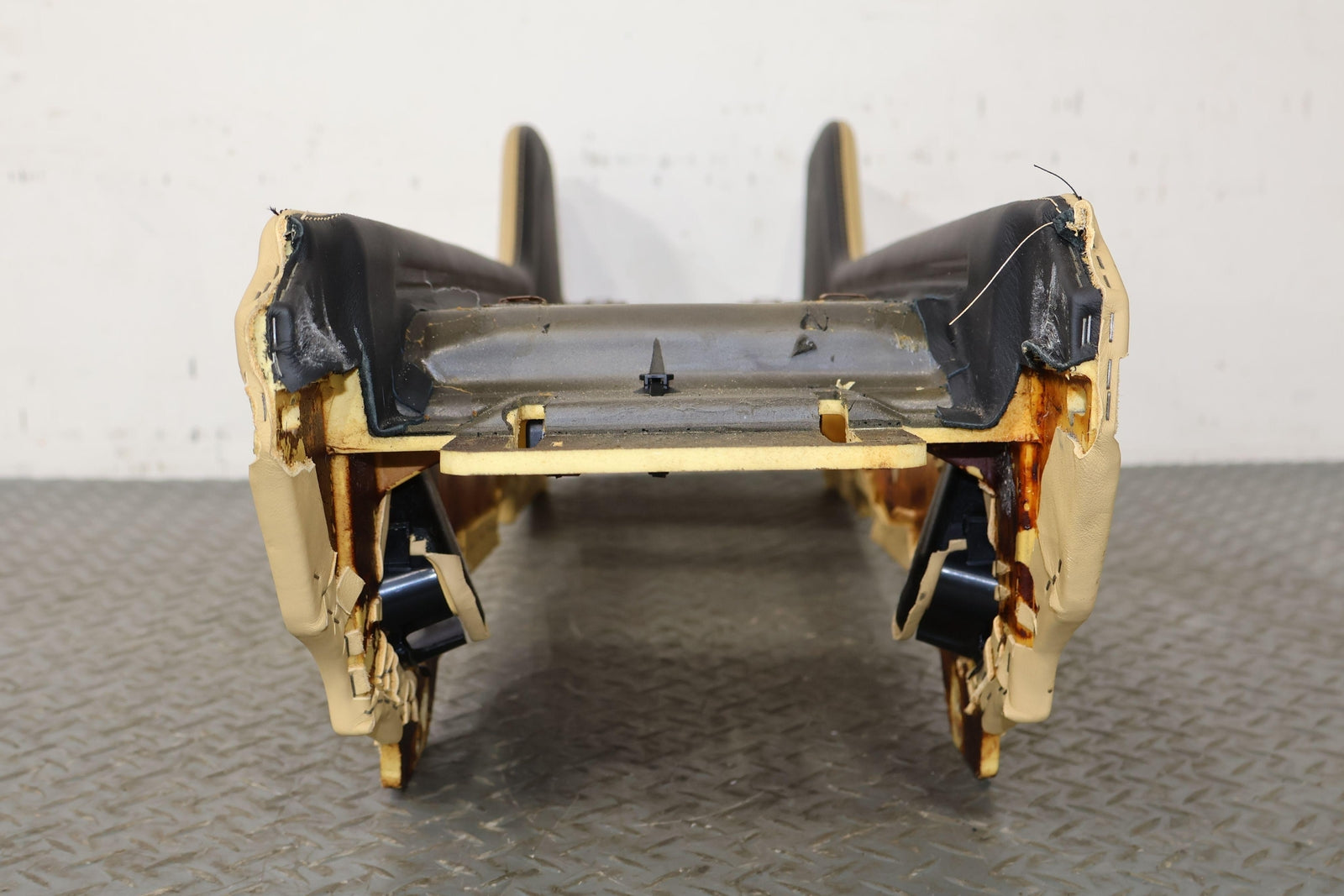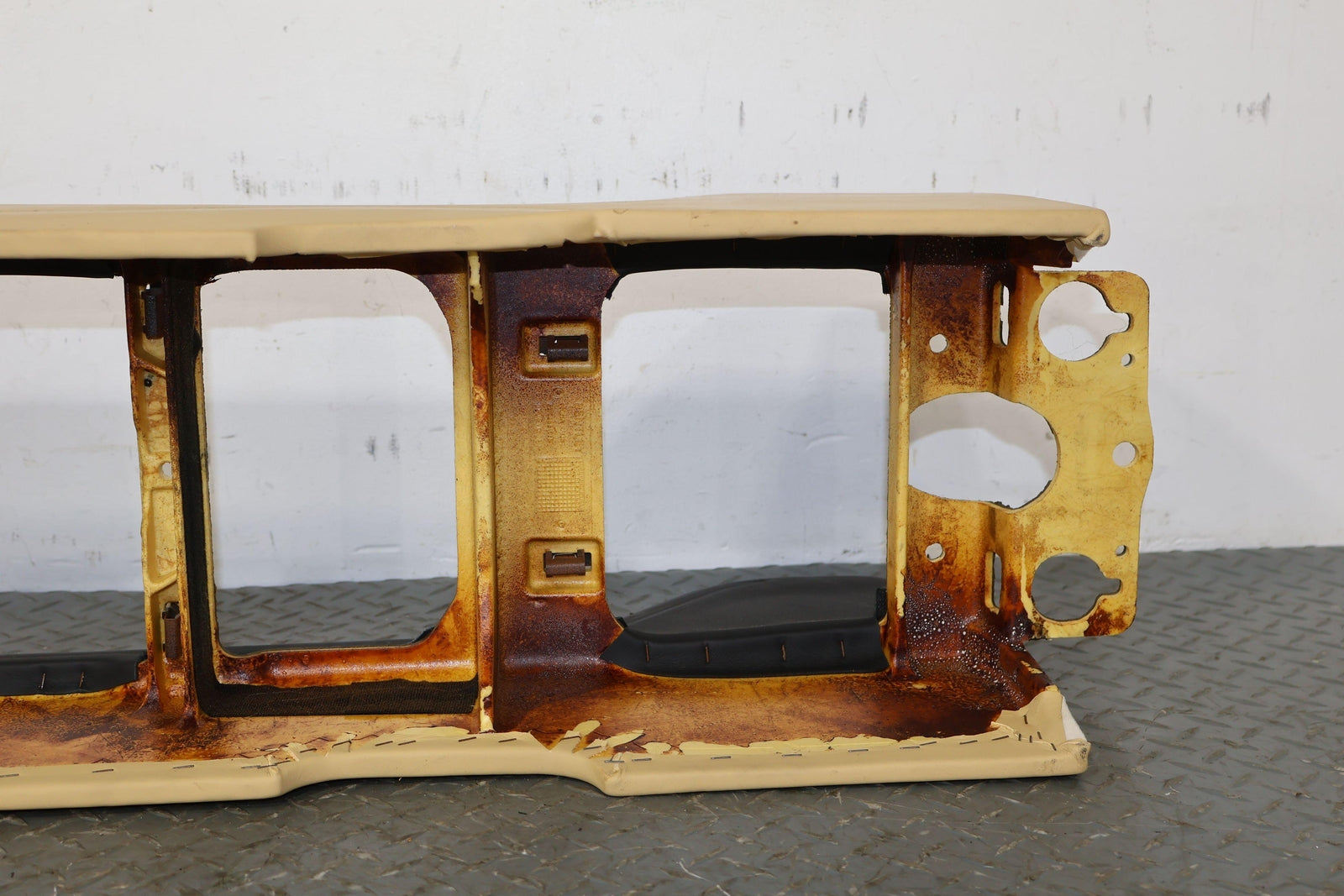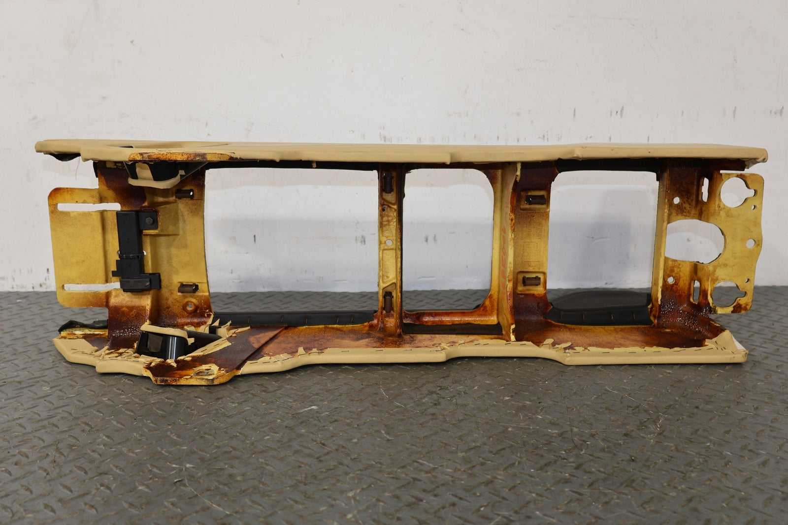 Consola trasera de piso desnudo, color azafrán (mhd), manchas leves, múltiples rayones, montaje sólido