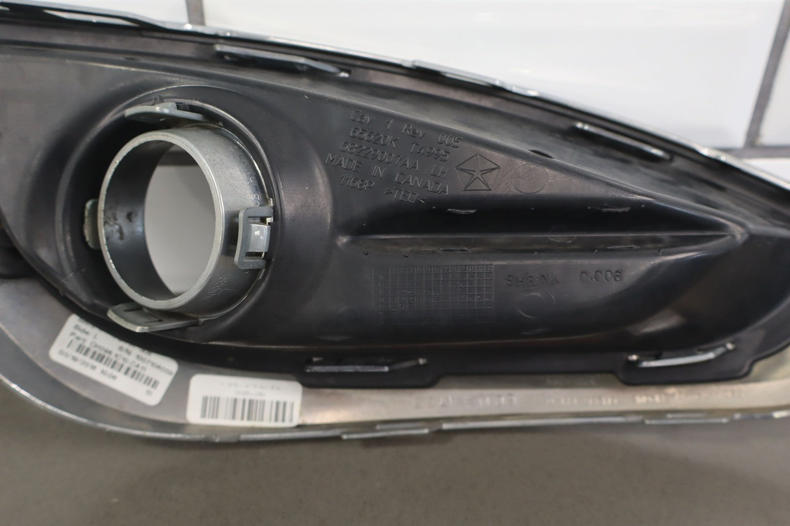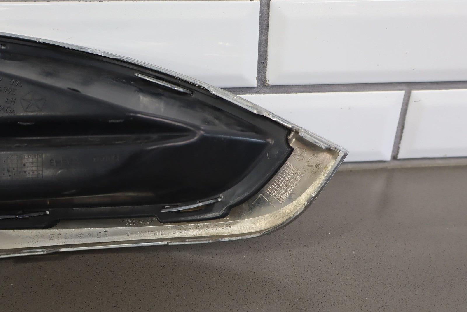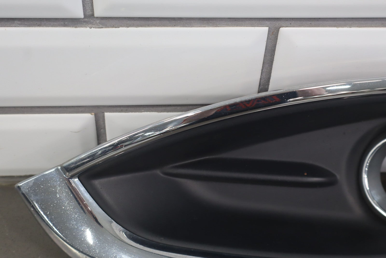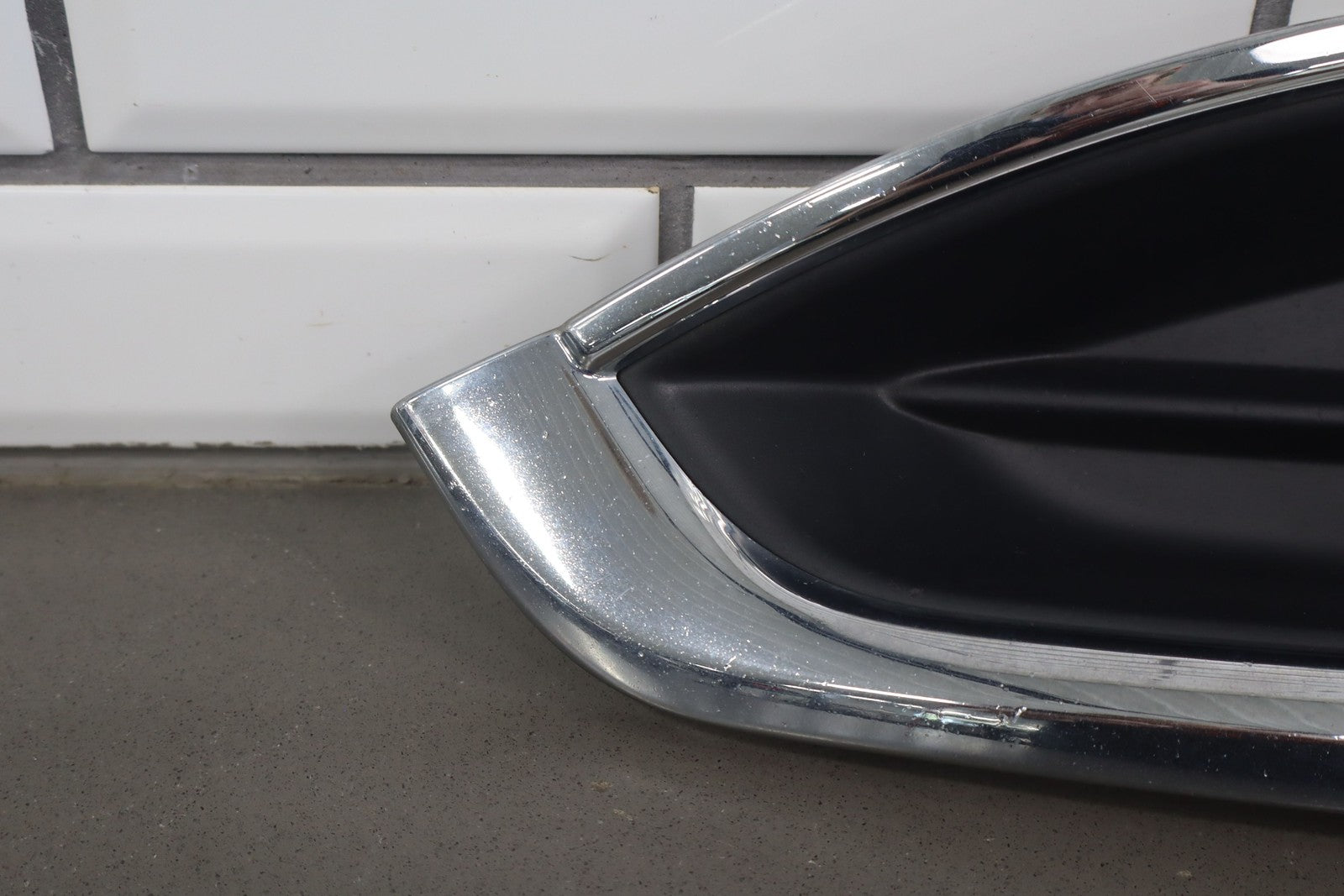 Lh Bumper Mounted Fog Light Bezel, Black Textured Plastic W/chrome Trim, Multiple Stone Chips/knicks