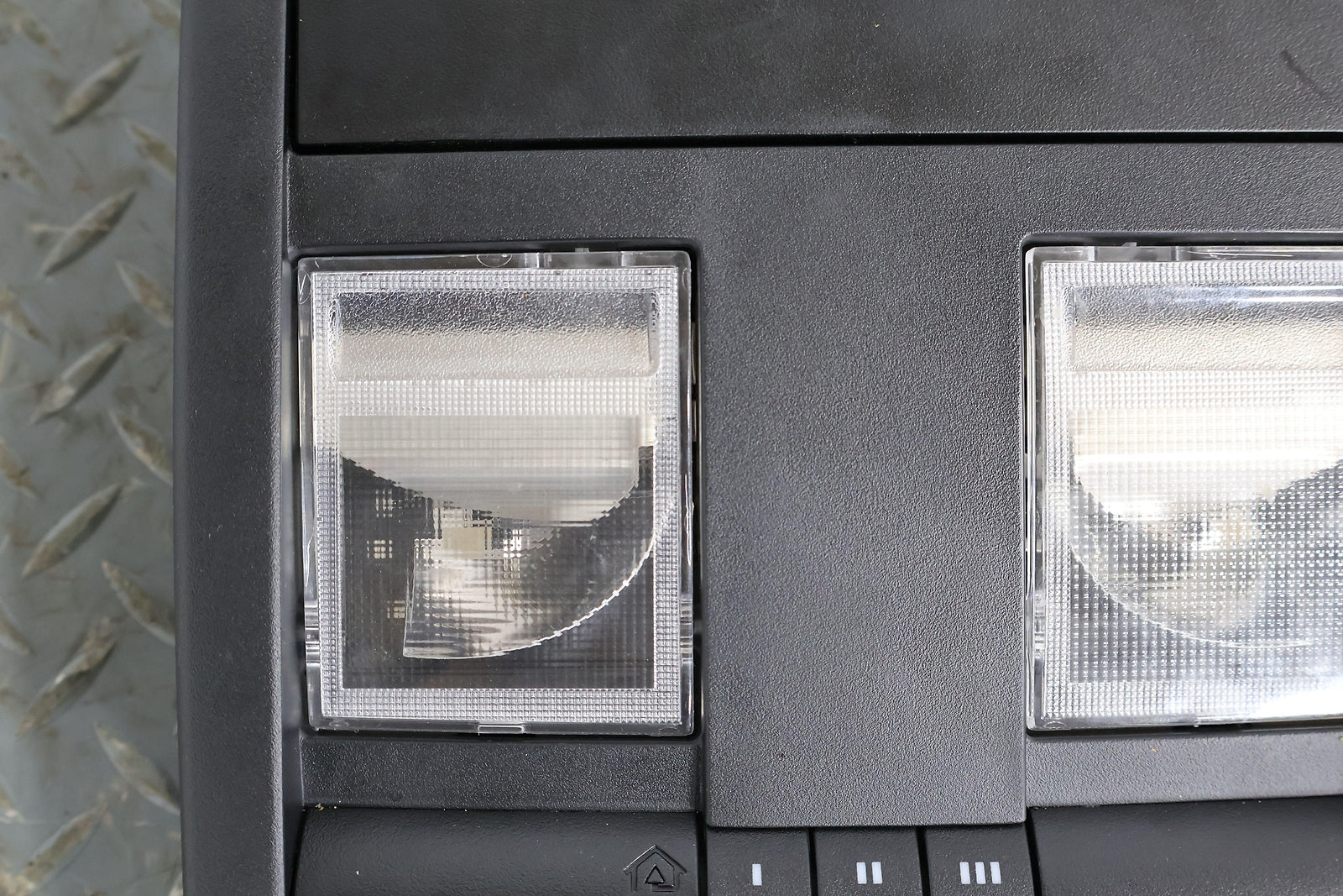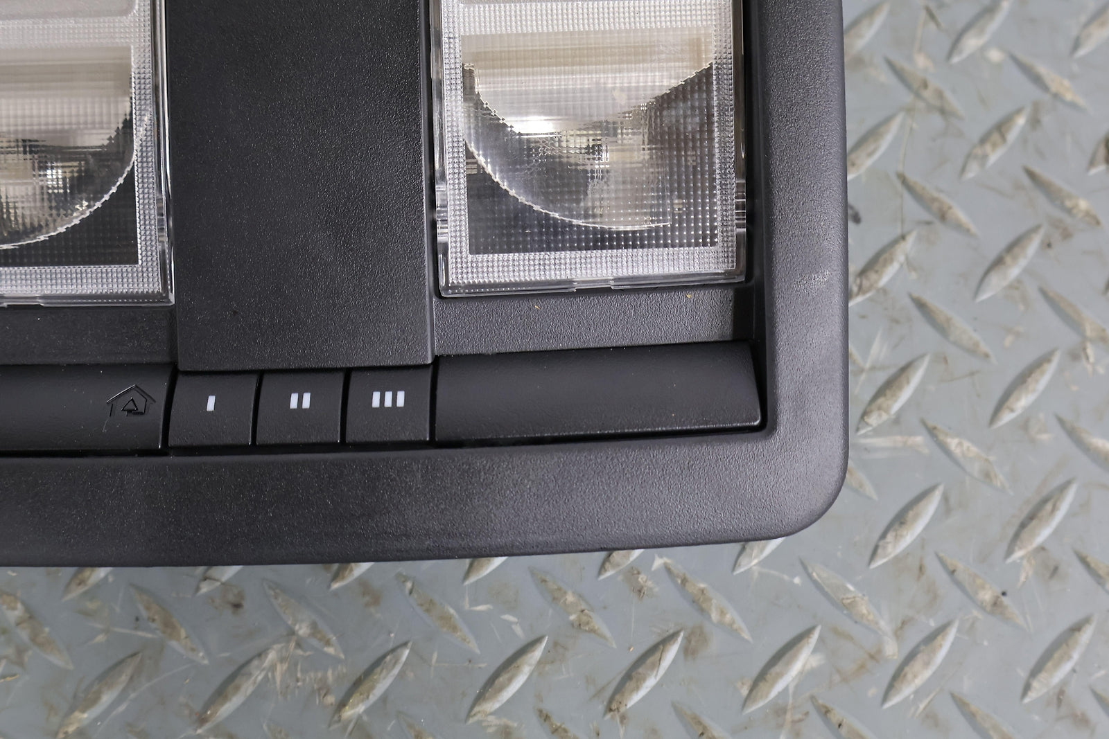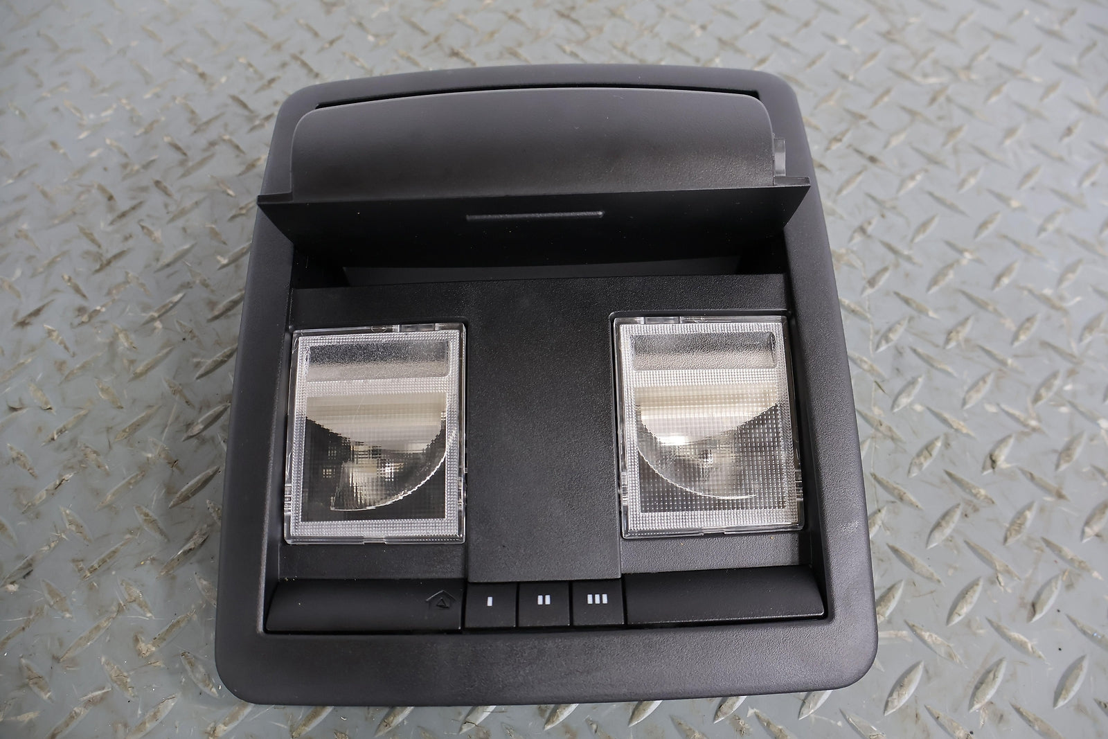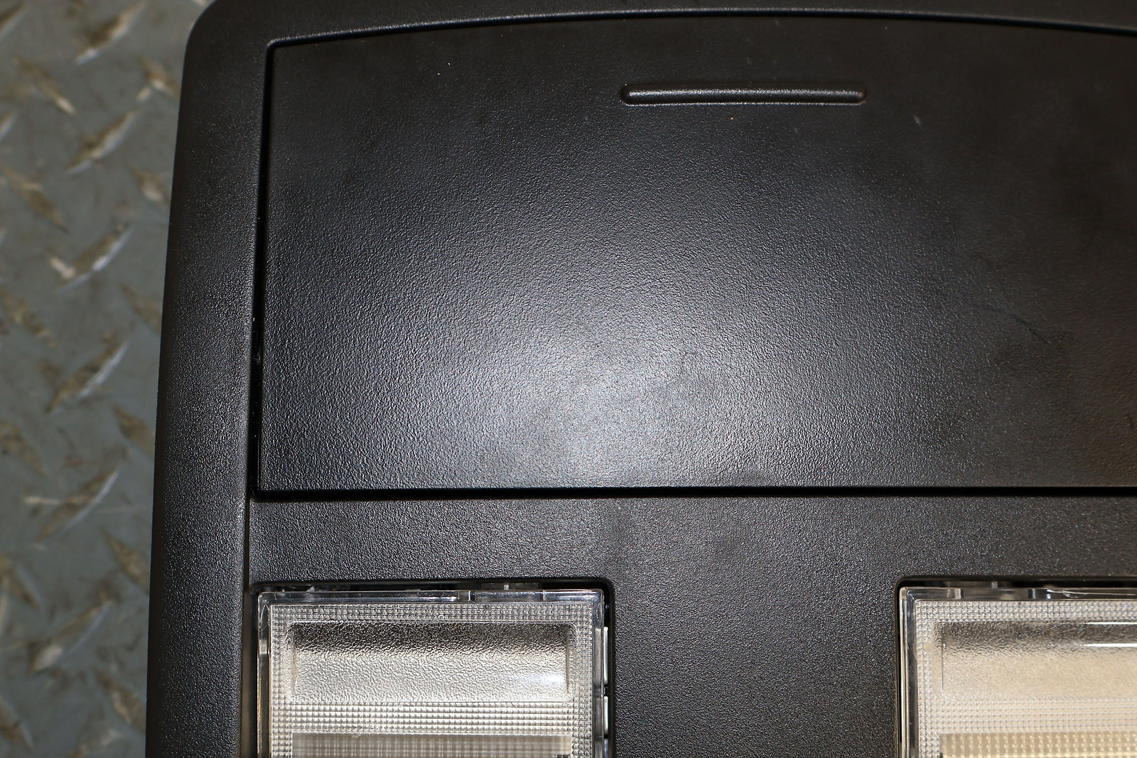 Roof Console, W/o Sunroof, Black (x9), Sunglass Door Functions Properly, Mounted Solid
