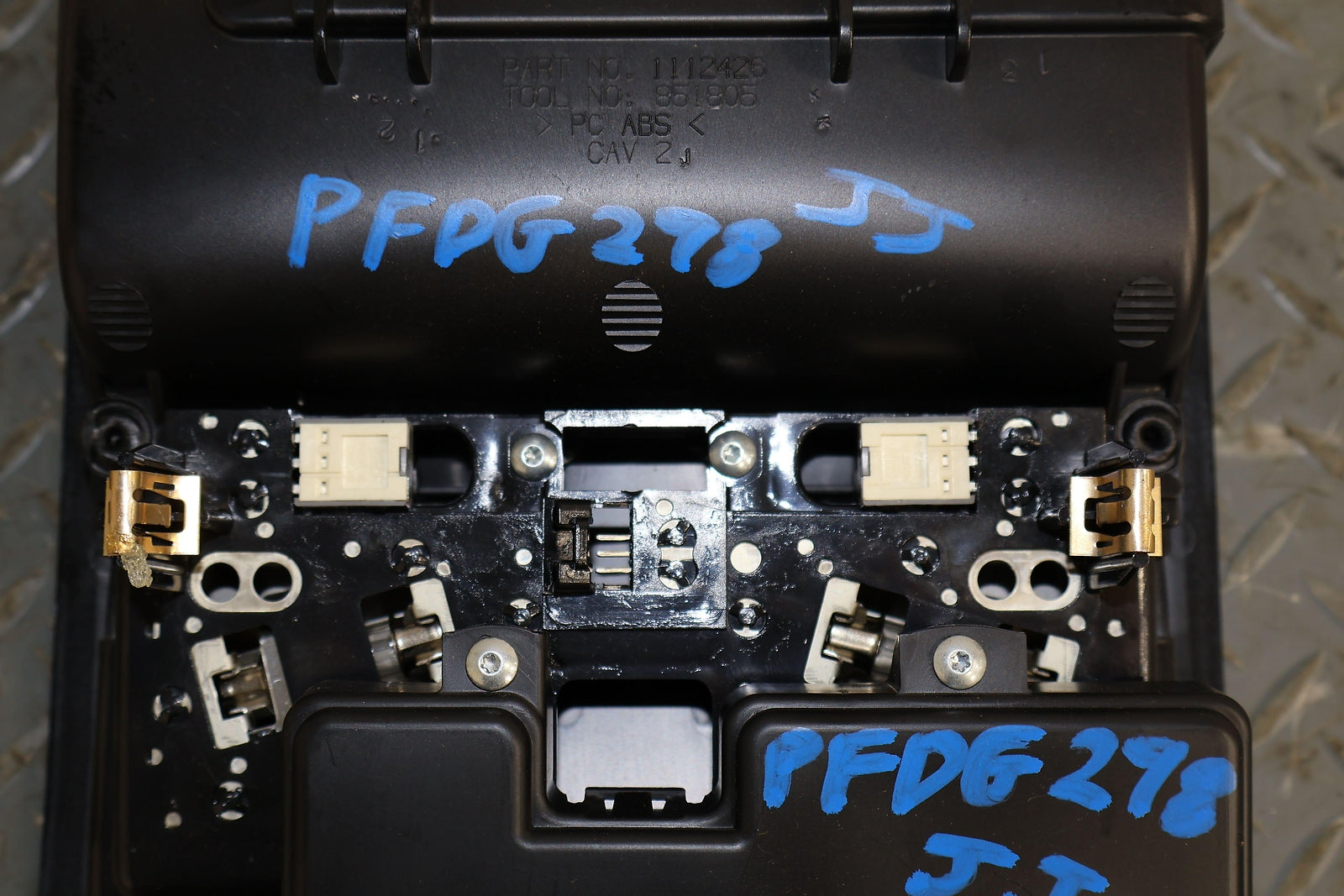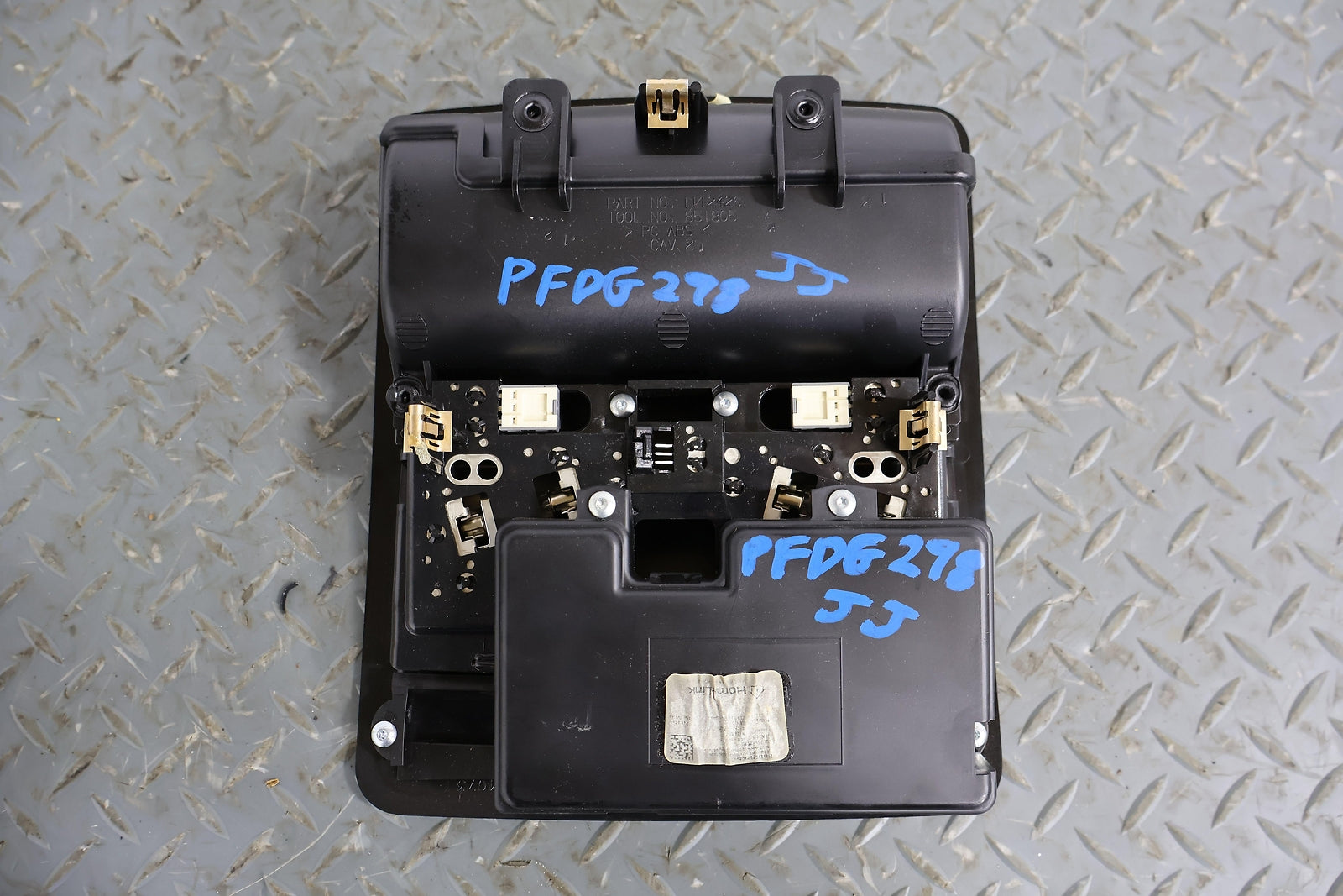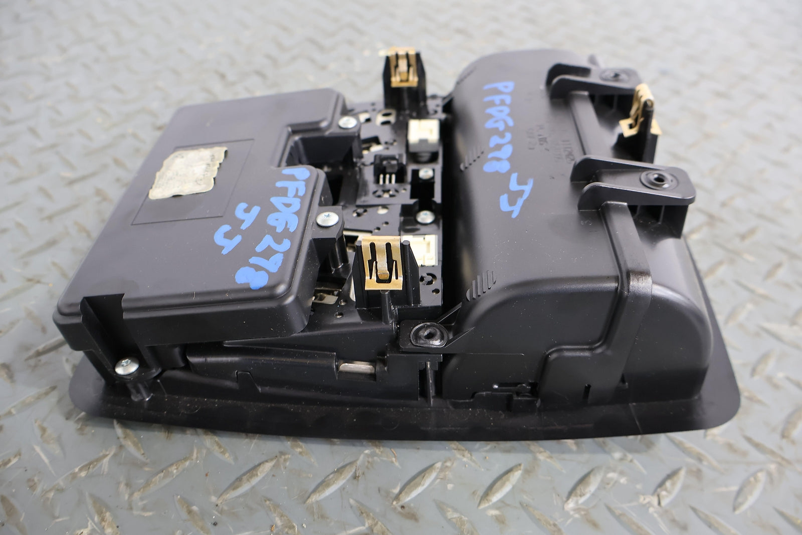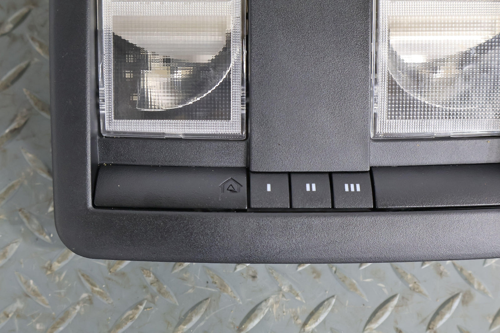 Roof Console, W/o Sunroof, Black (x9), Sunglass Door Functions Properly, Mounted Solid