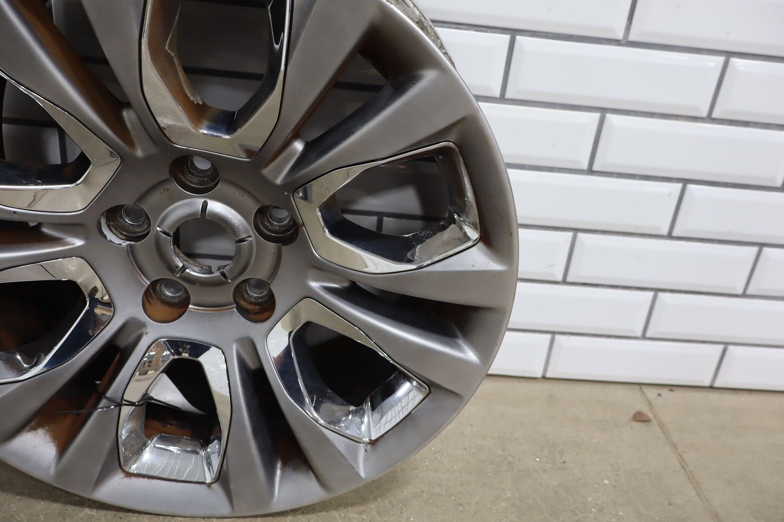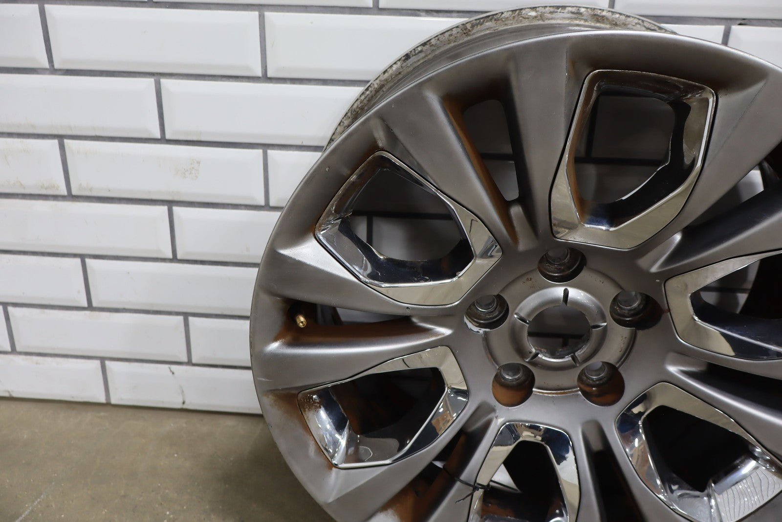 Rh Rear, 20x9 Painted Face W/chrome Insert 12 Spoke Wheel (wrm), Decent Brake Dust Staining, Mild Knicks, Spun True