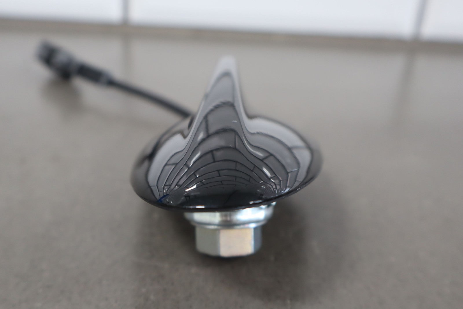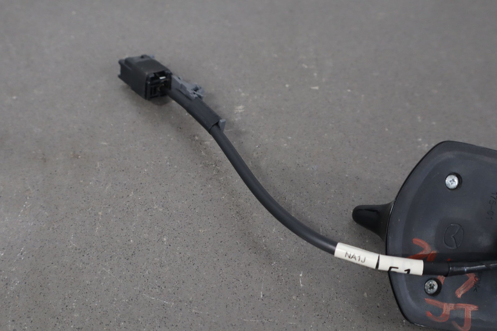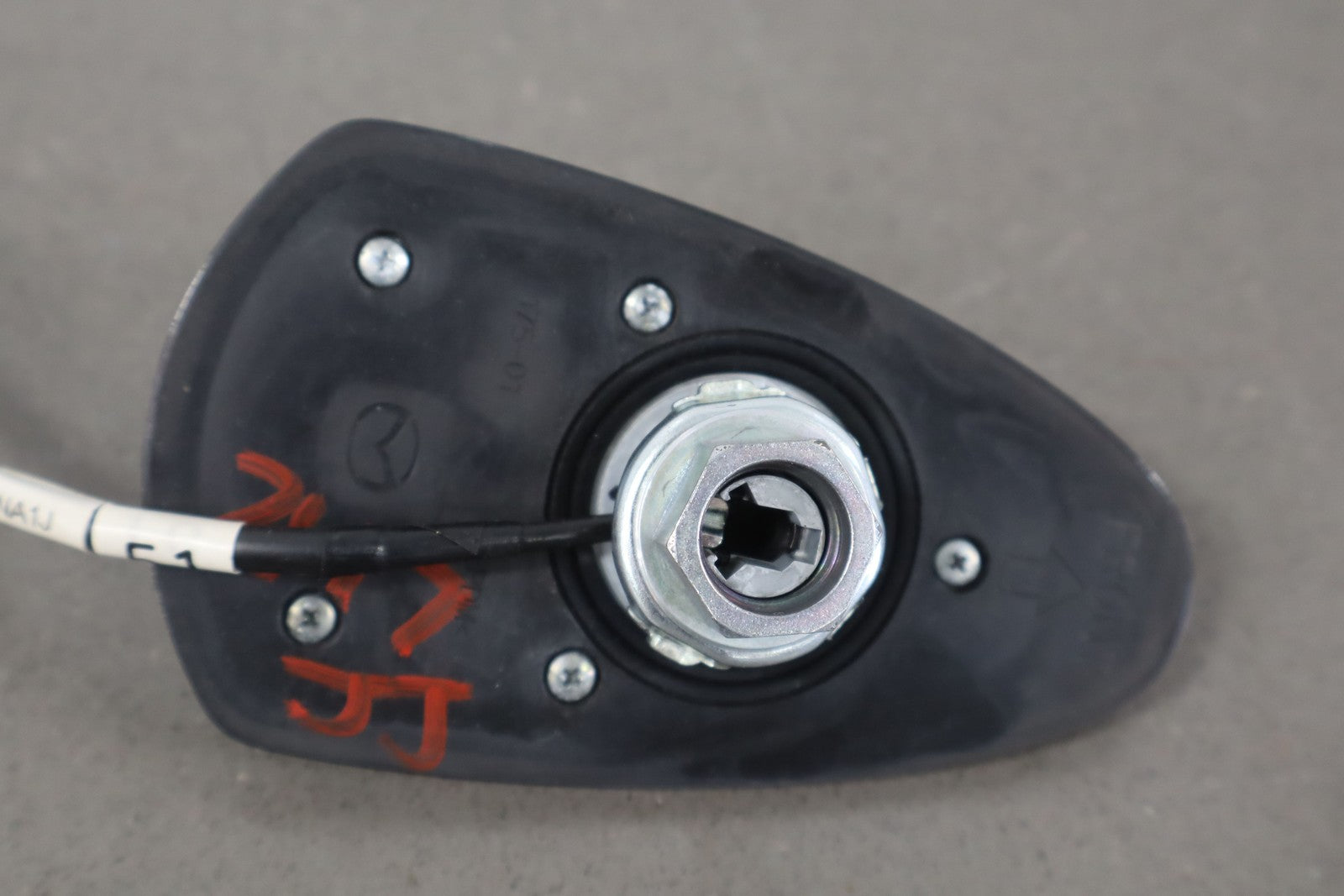 Trunk Lid Mounted Sharkfin Antenna, Forte Black Metallic (pxc), 1 Visible Knick, Light Scratches