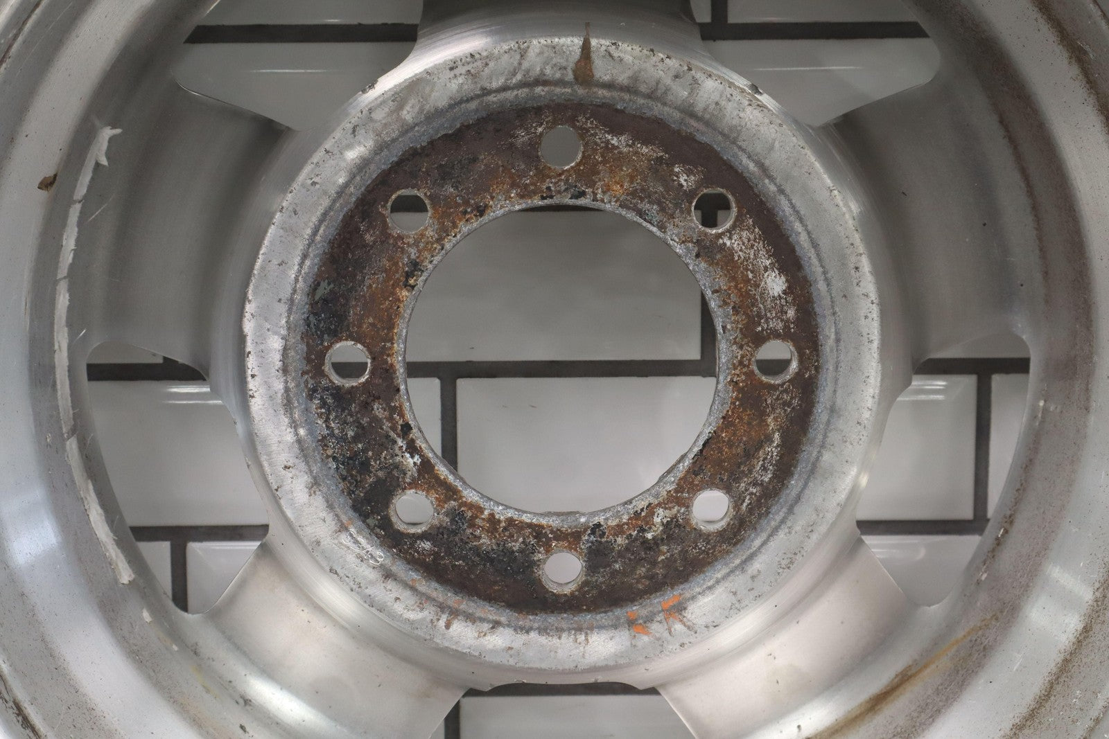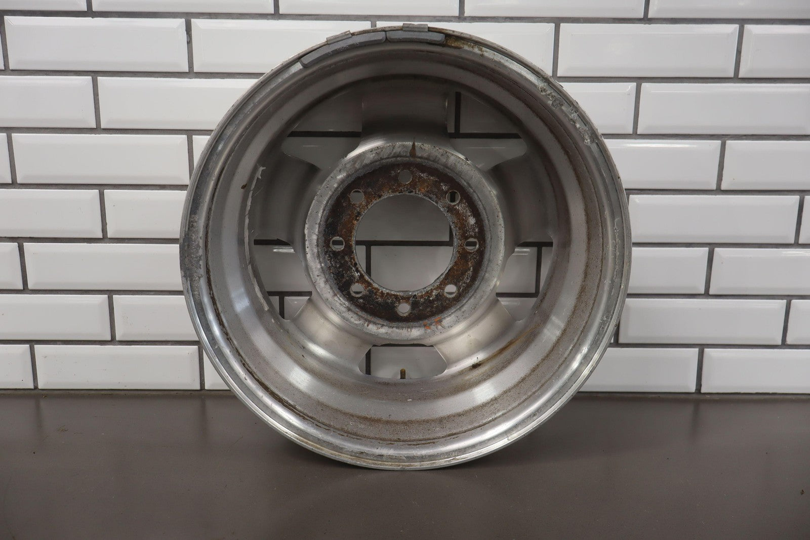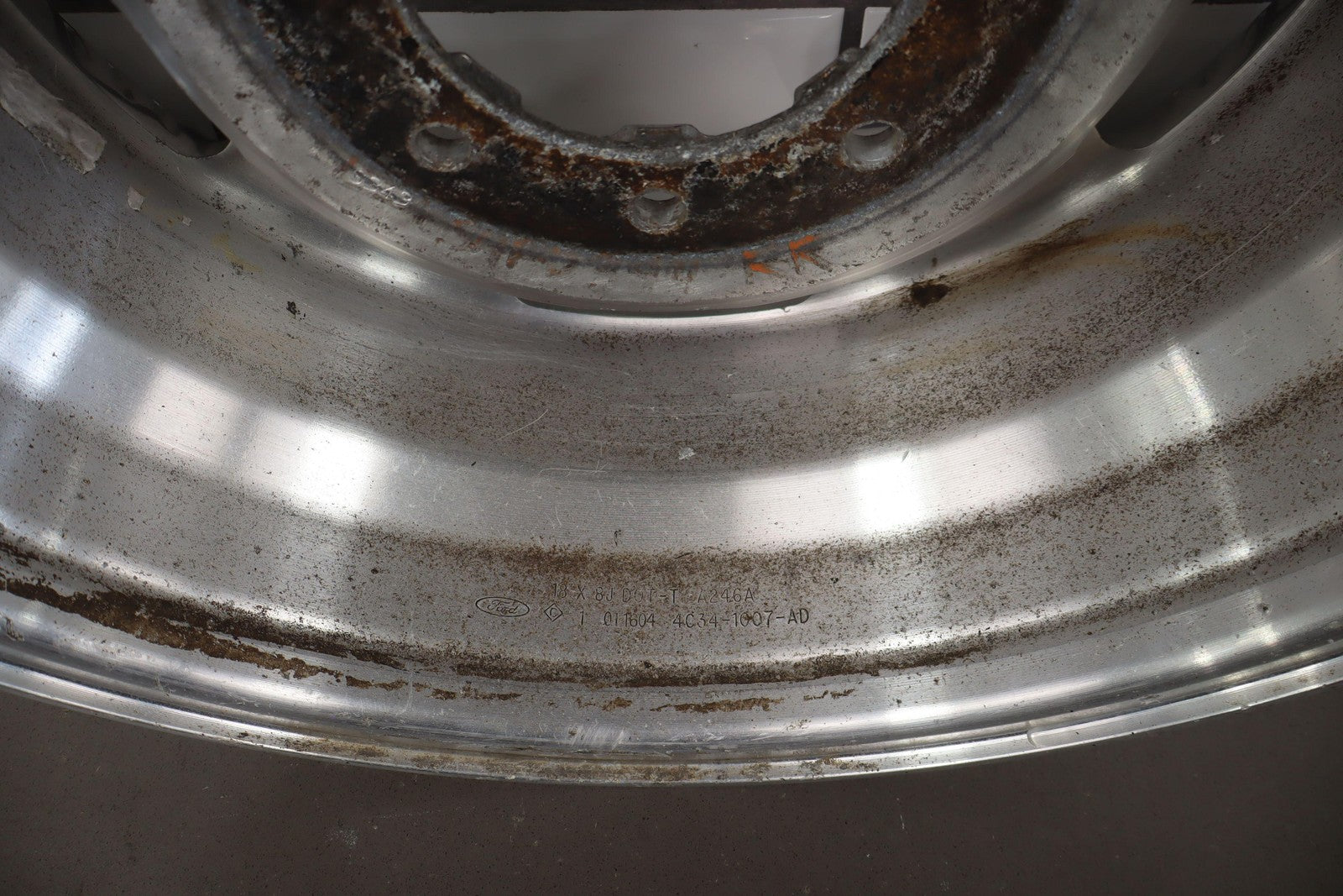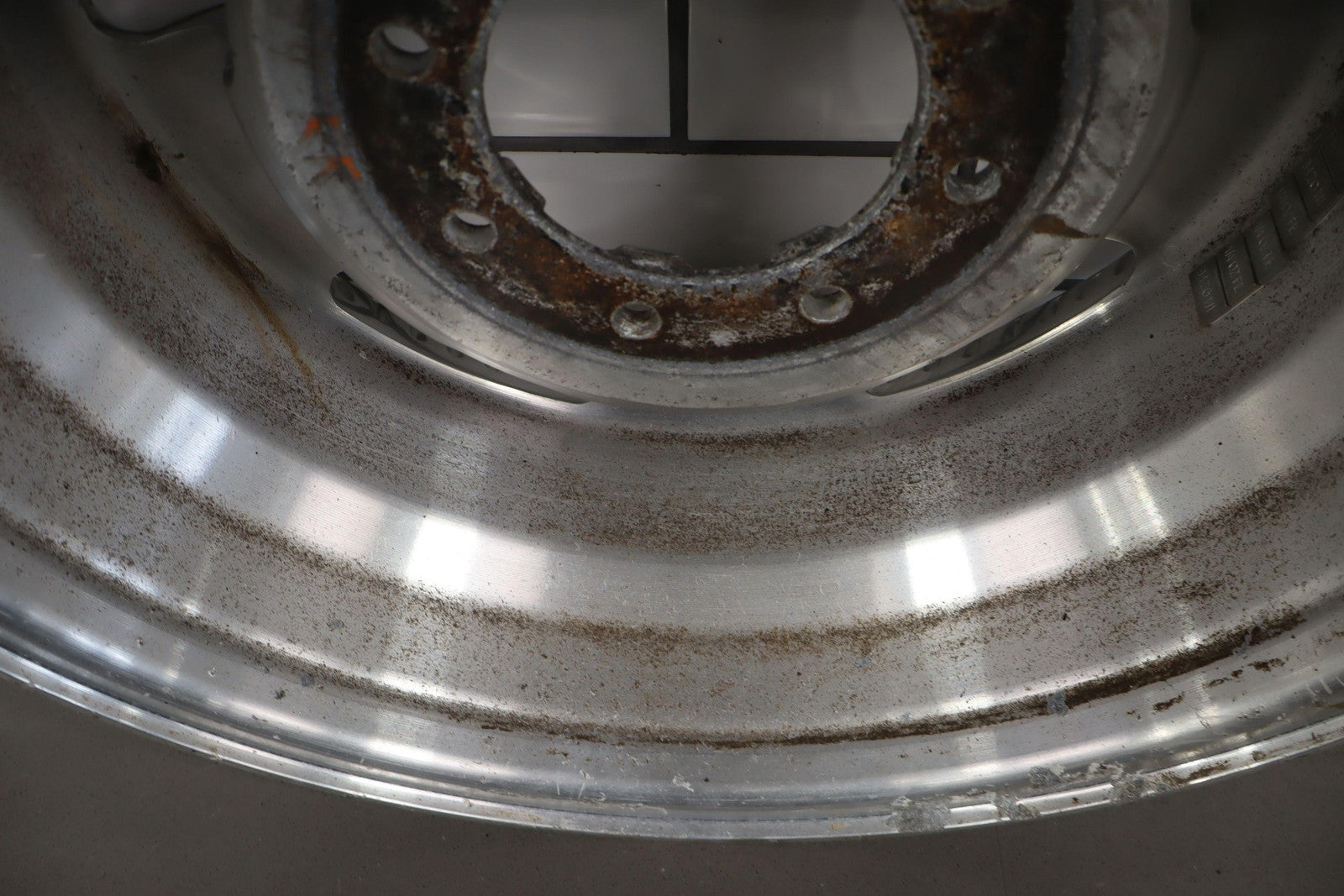 Rh Rear, 18x8 Polished 5 Spoke Wheel (harley-davidson) W/lug Nuts, Corrosion Starting On Face, Light Scratches, Mild Bend