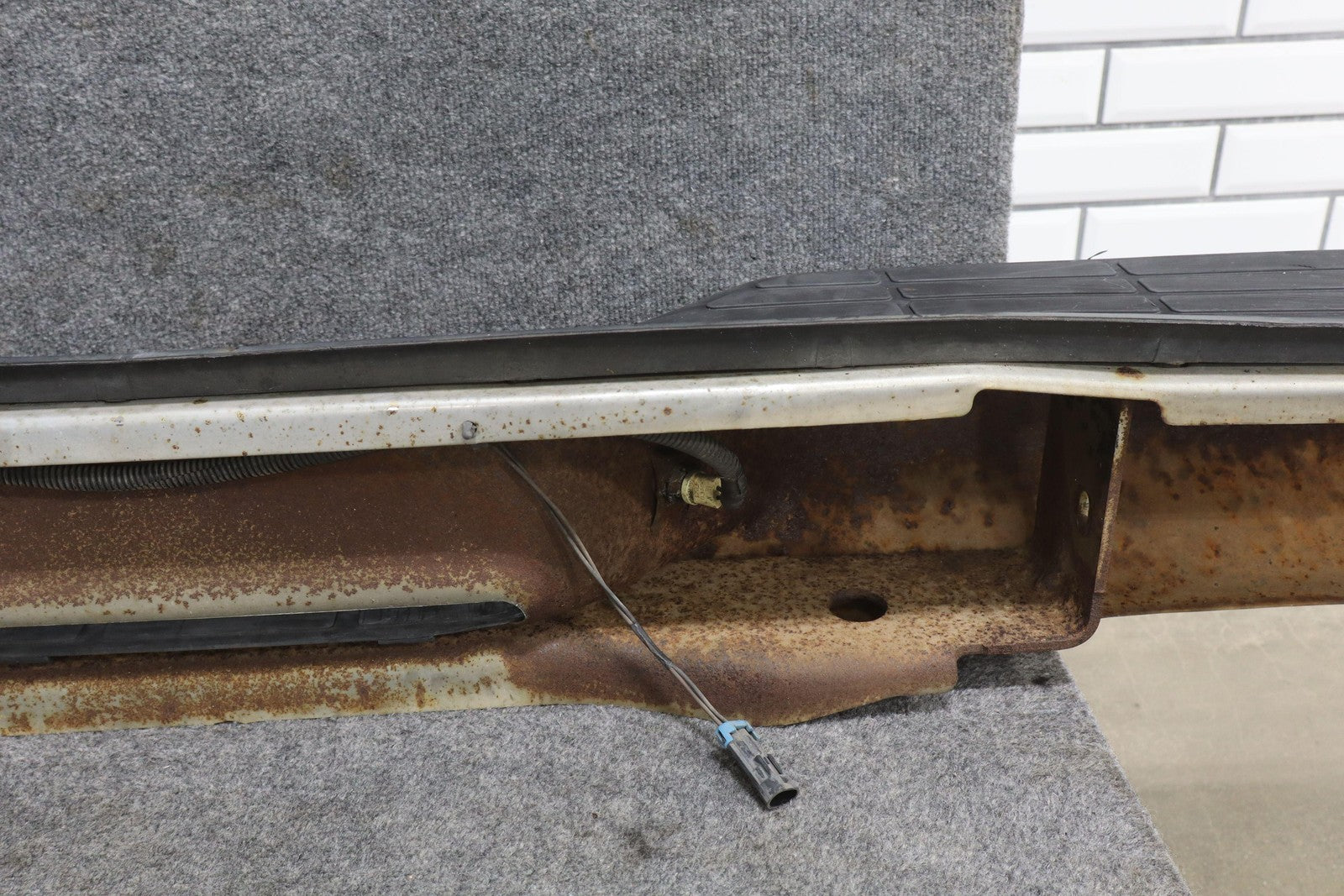 Chrome Rear Bumper, Decent Scratches/scrapes To Black Textured Plastic Trim, Mild Sun Fade, Decent Weathering