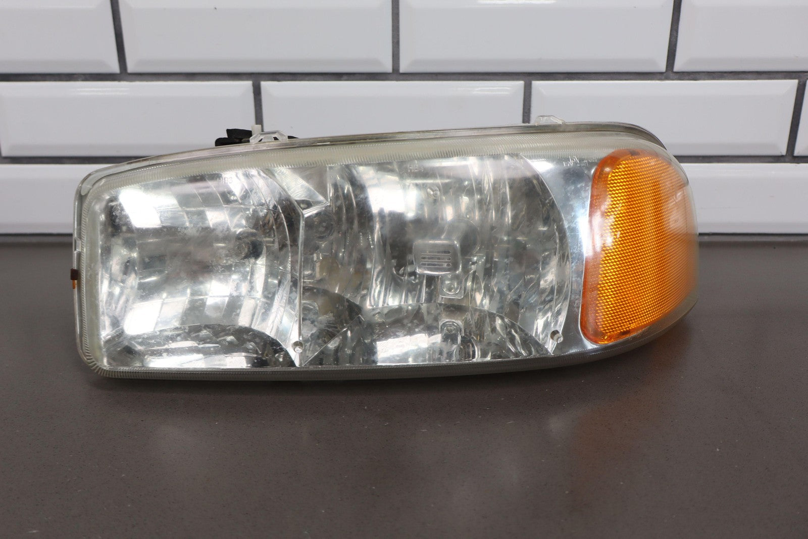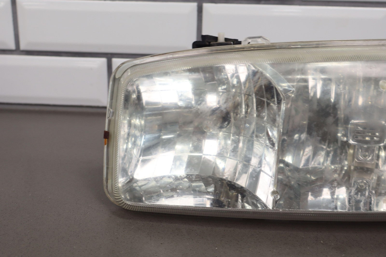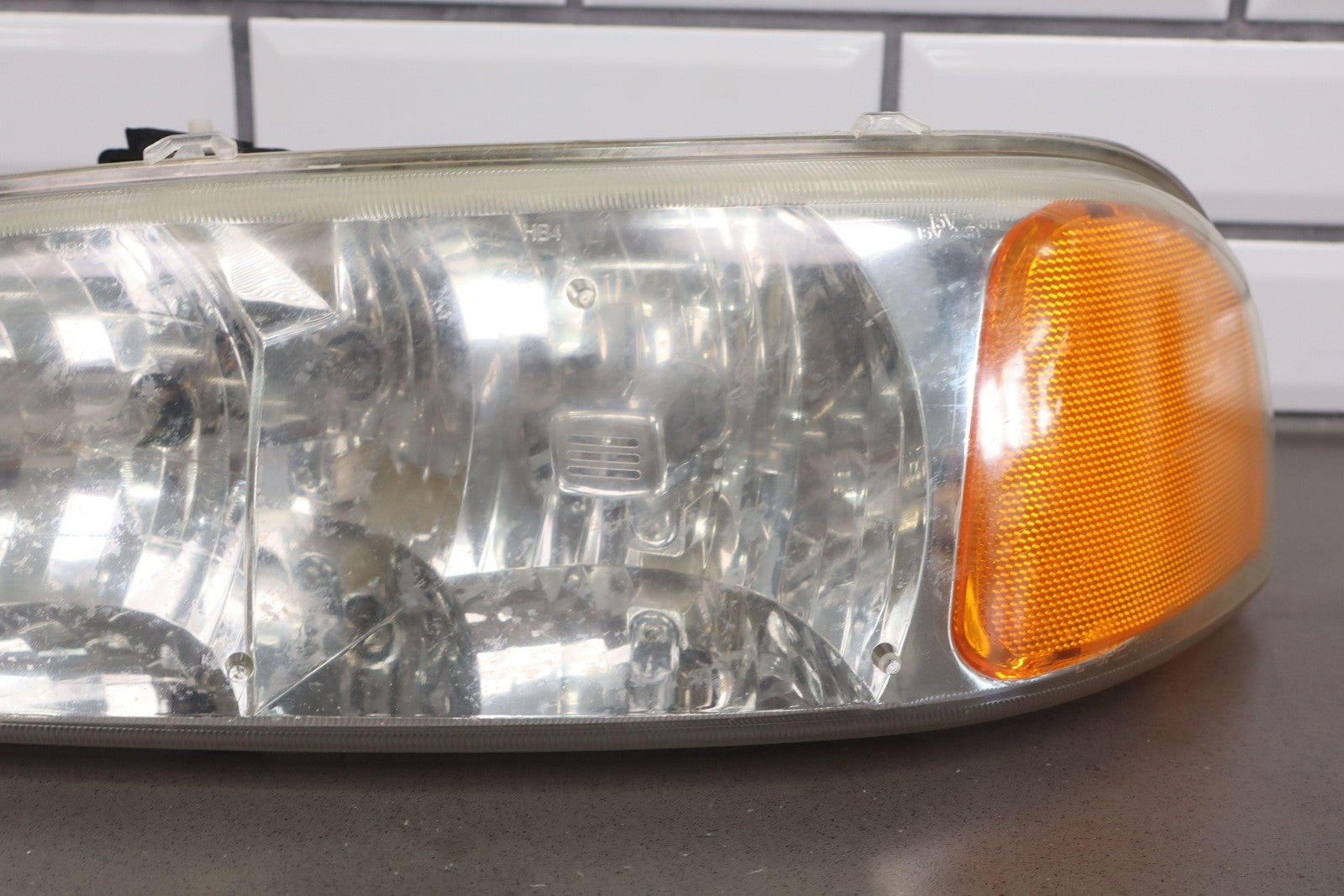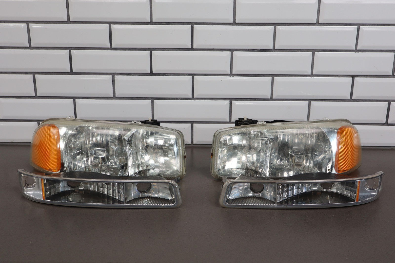Juego de luces de posición (izq.-der./faros/marcadores) (4 piezas), ligera neblina en las lentes, montaje completo, el cromado comienza a neblina/descascarillarse en las luces de posición.
