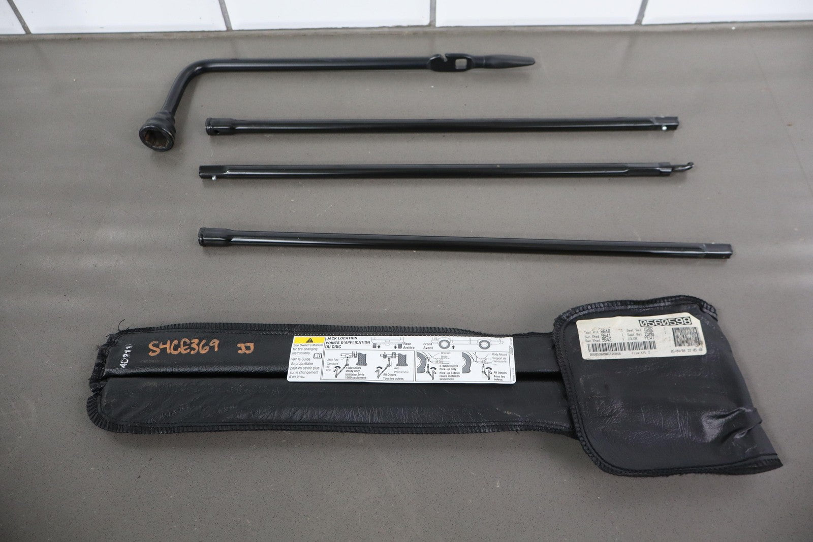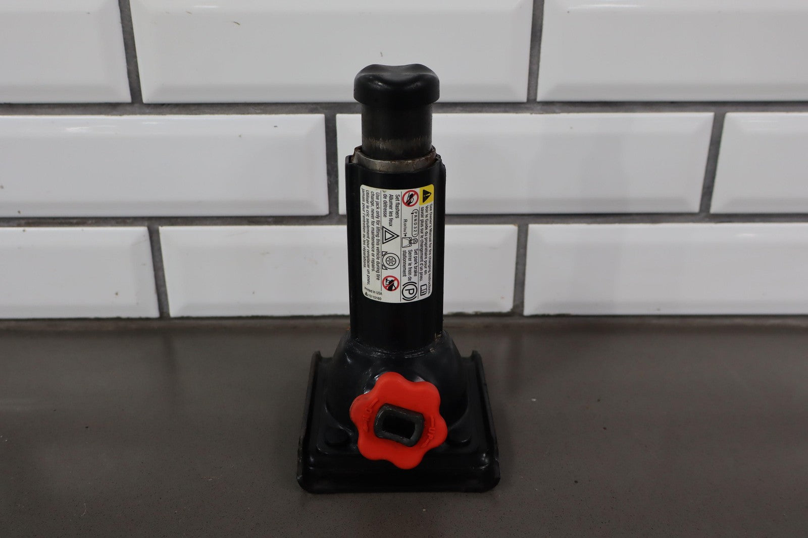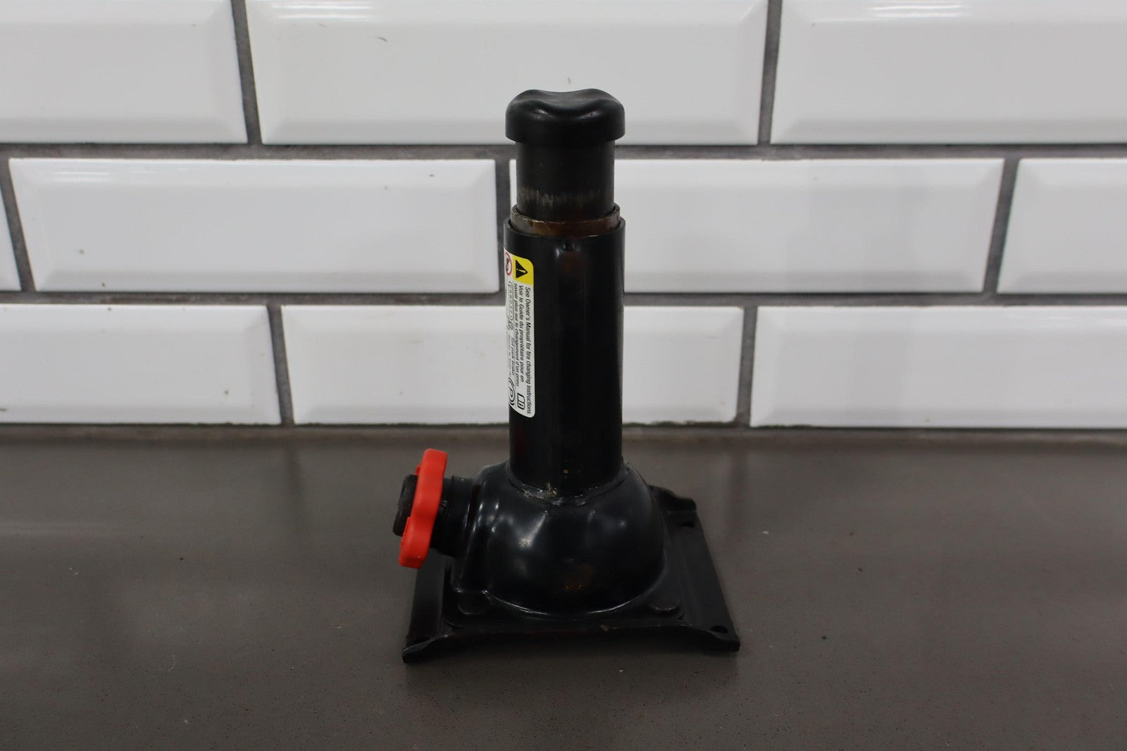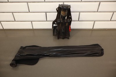 Gato de botella, incluye soporte de montaje, herramientas para llanta de repuesto, bolsa para guardar herramientas y calzos para ruedas.