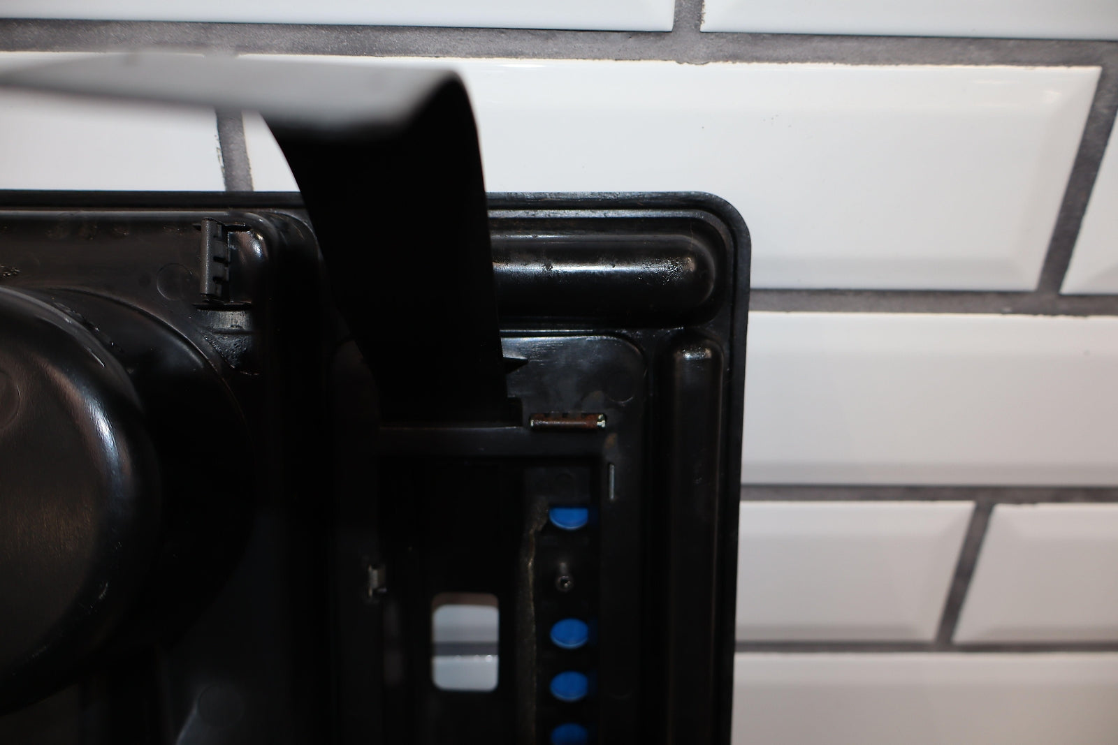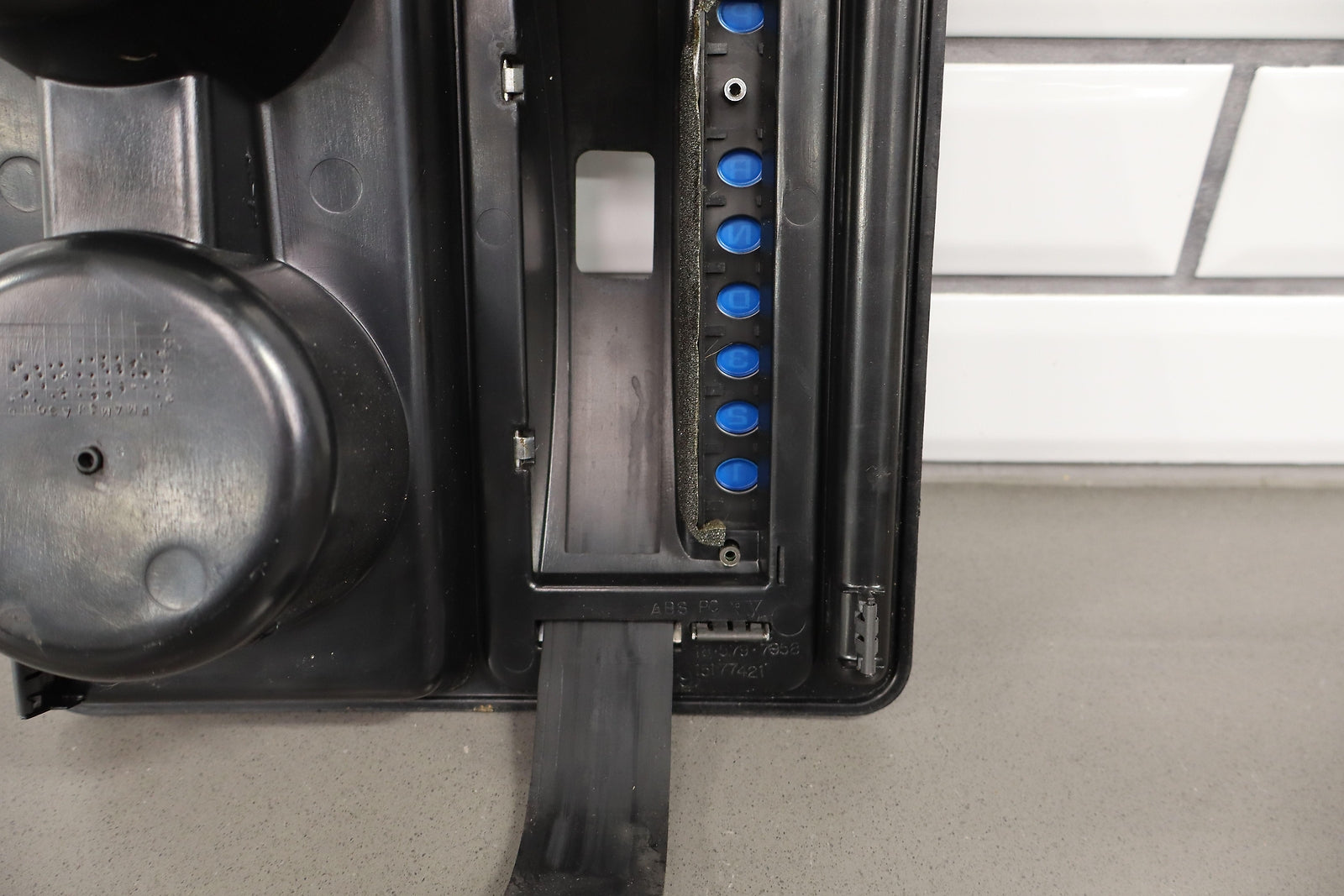 Bisel de palanca de cambios/portavasos en el piso, negro, letras limpias, rayones menores en el cromo