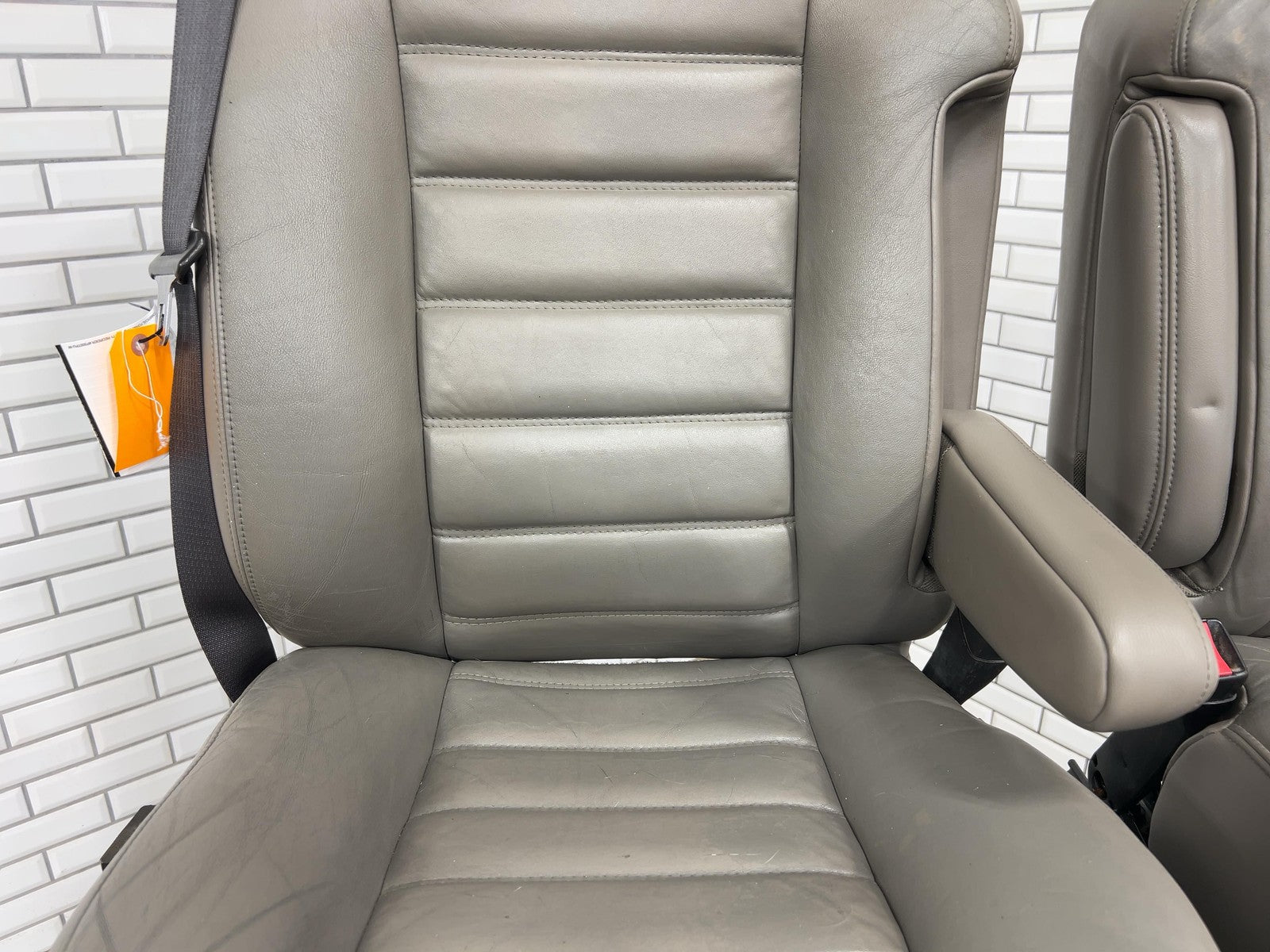 Important notes: Lh Pair, Front Leather Bucket Seats, Wheat (502), Decent Wear, Staining, Pass Is Missing Seat Switch Knob