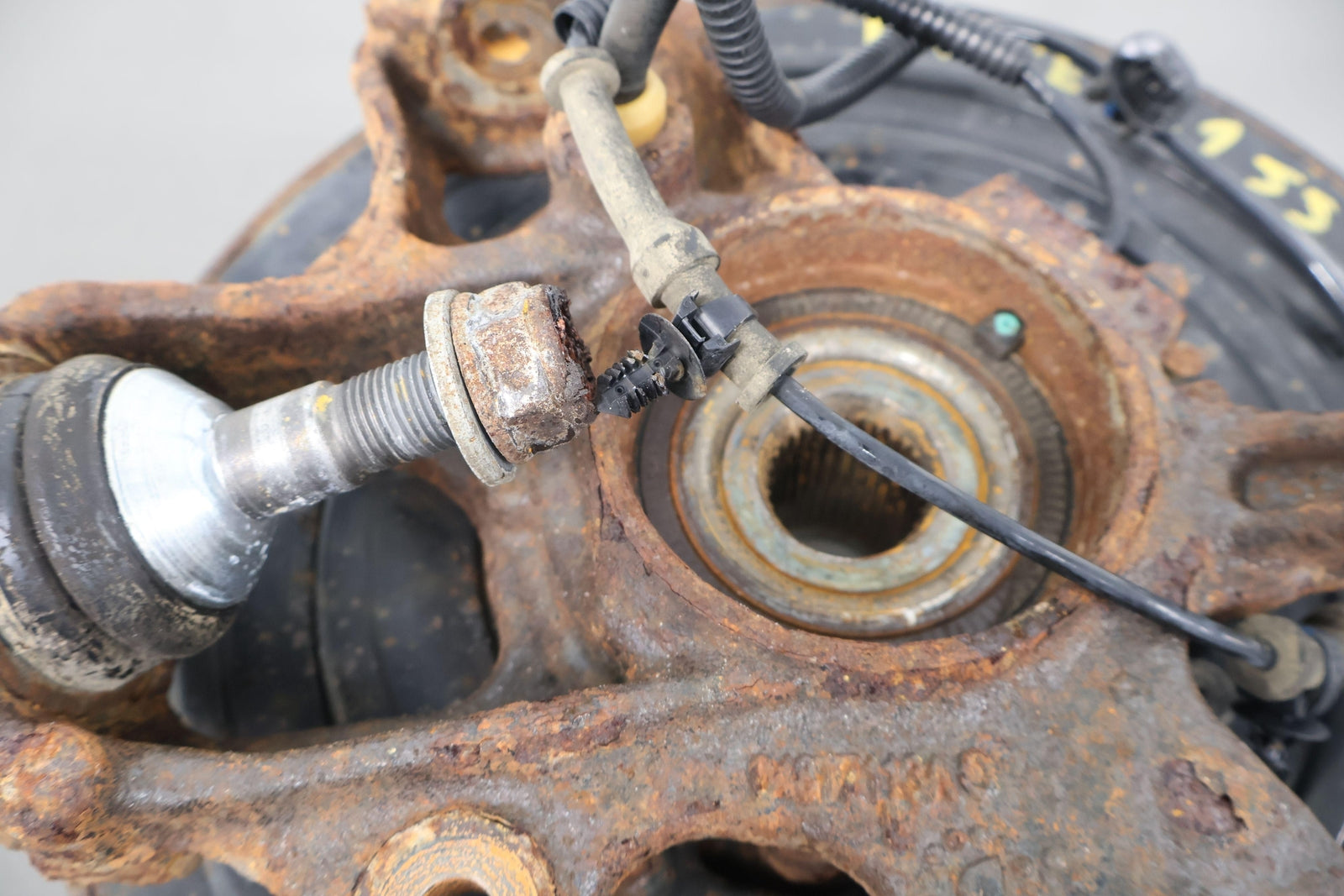 Muñón trasero izquierdo, incluye rótula, cojinete, protector contra el polvo, sensor ABS, cable de freno de estacionamiento, buen estado, montaje sólido