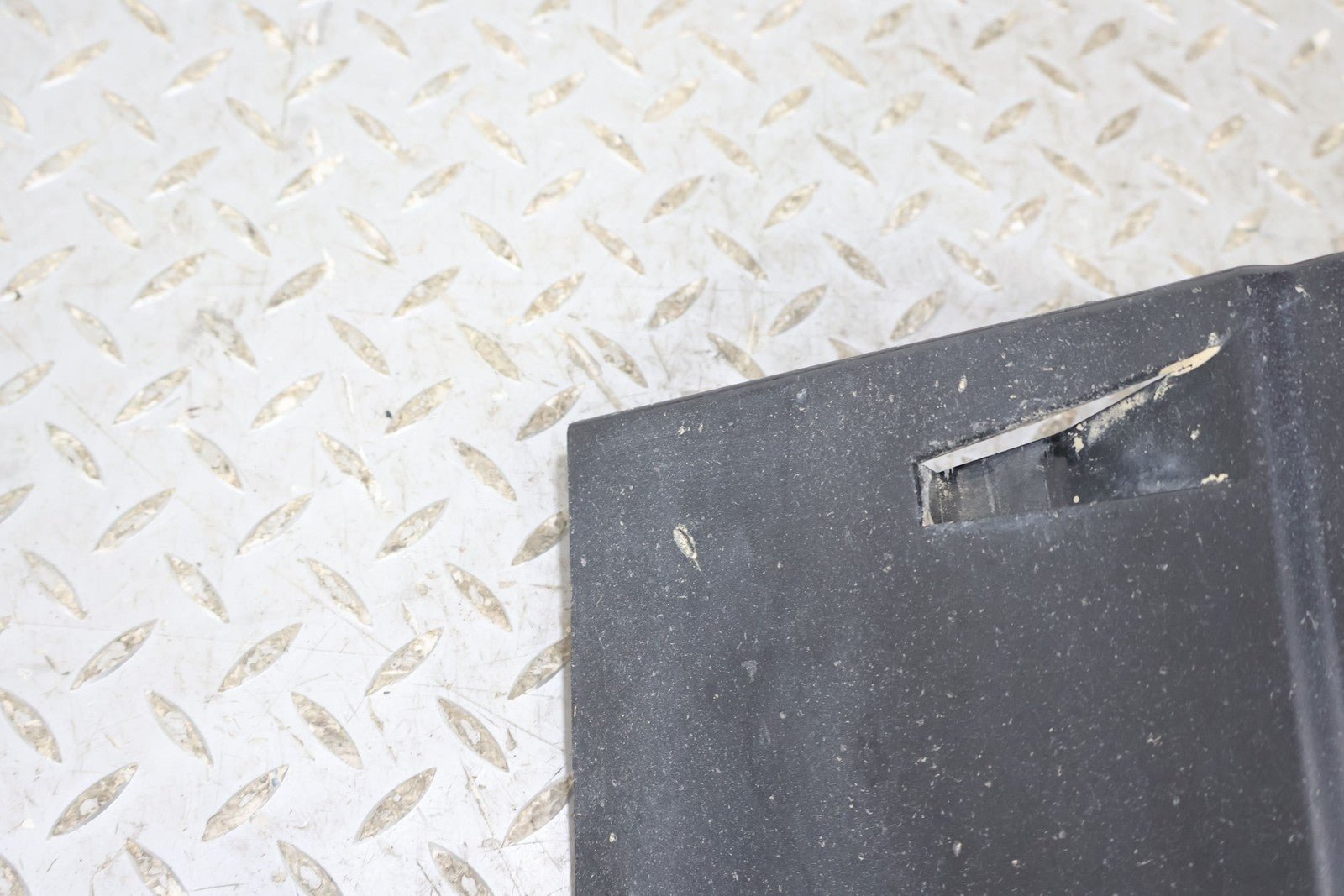 Important notes: Rh Lower Fender Moulding, Santorini Black (820), Light Scuffs/scratches, Mounted Solid