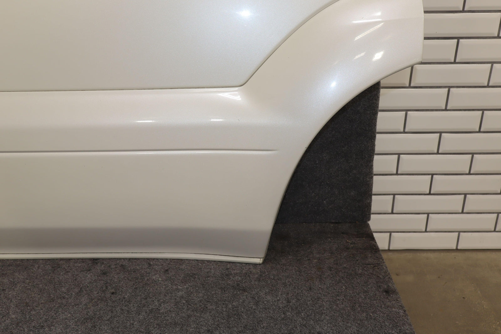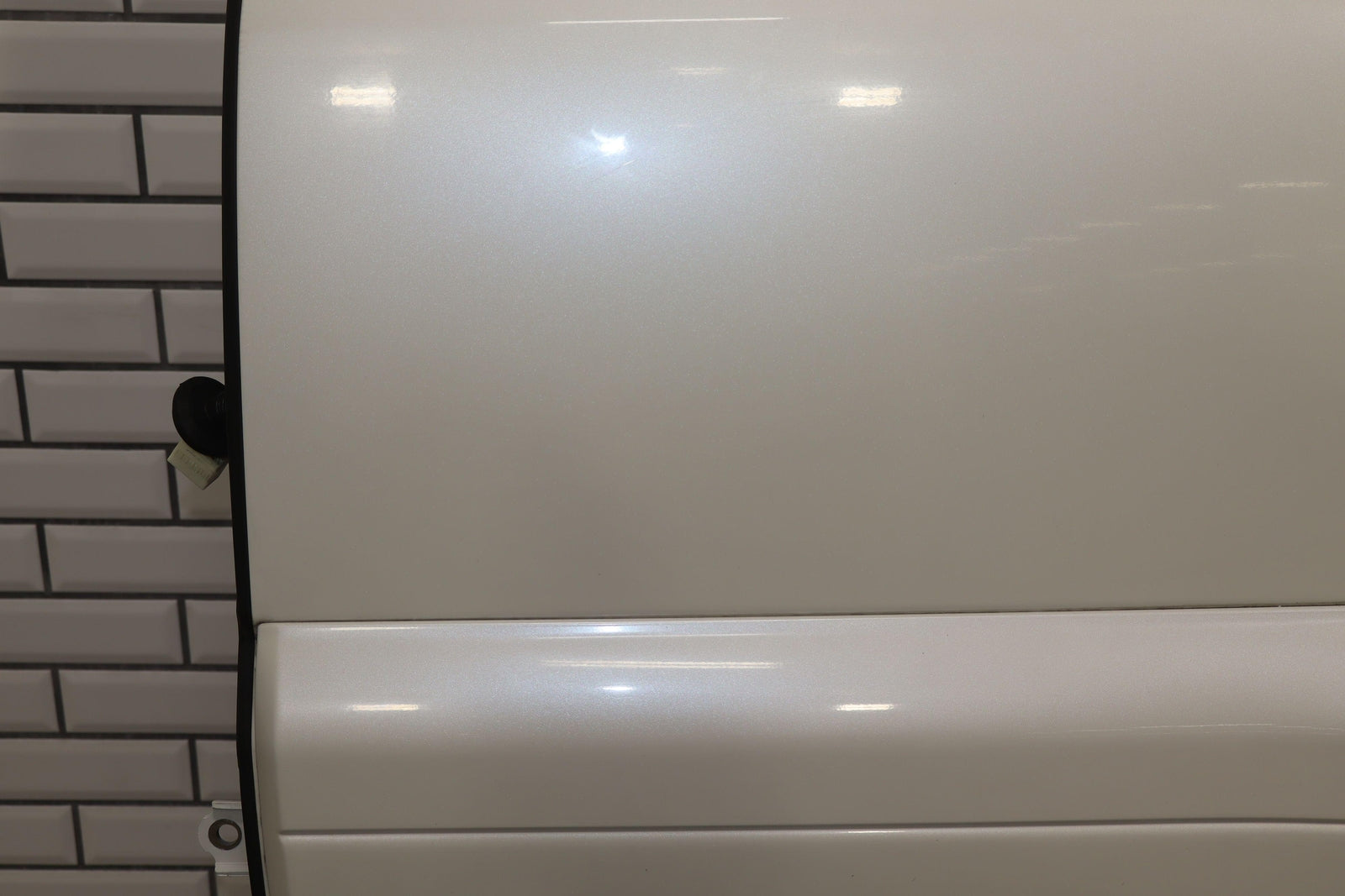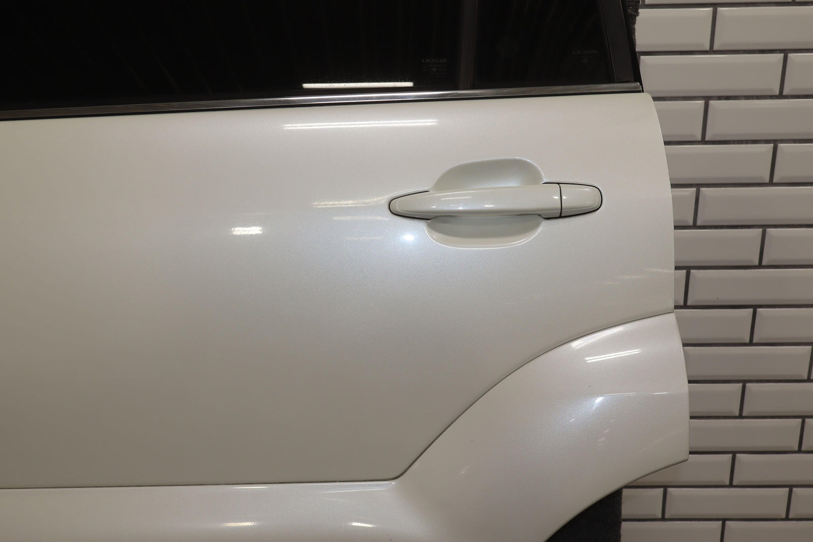 Trasera izquierda, Blizzard Pearl (070), se vende sin panel de moldura, algo de pintura descascarada en el borde superior, un par de desconchones en el borde de la puerta trasera