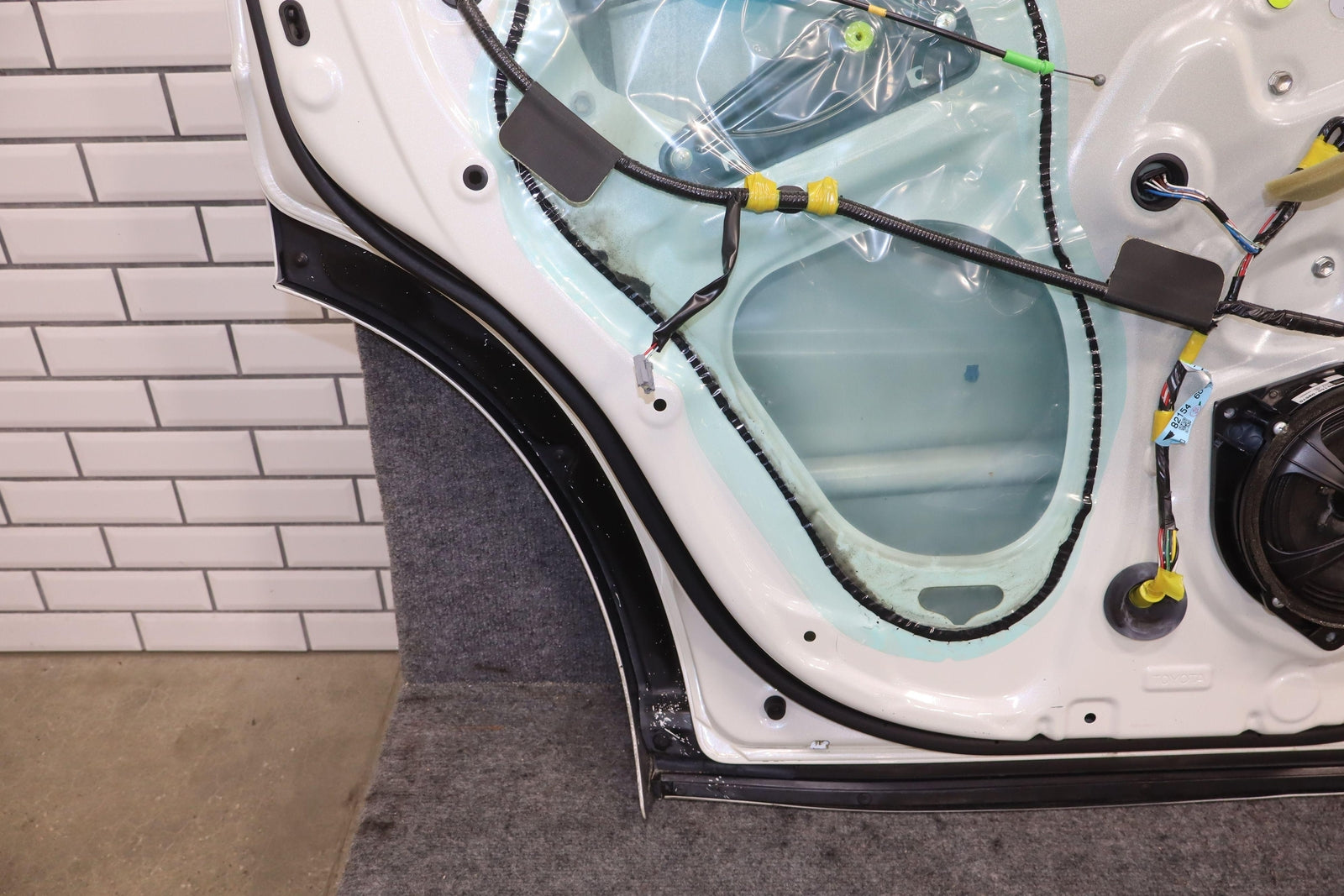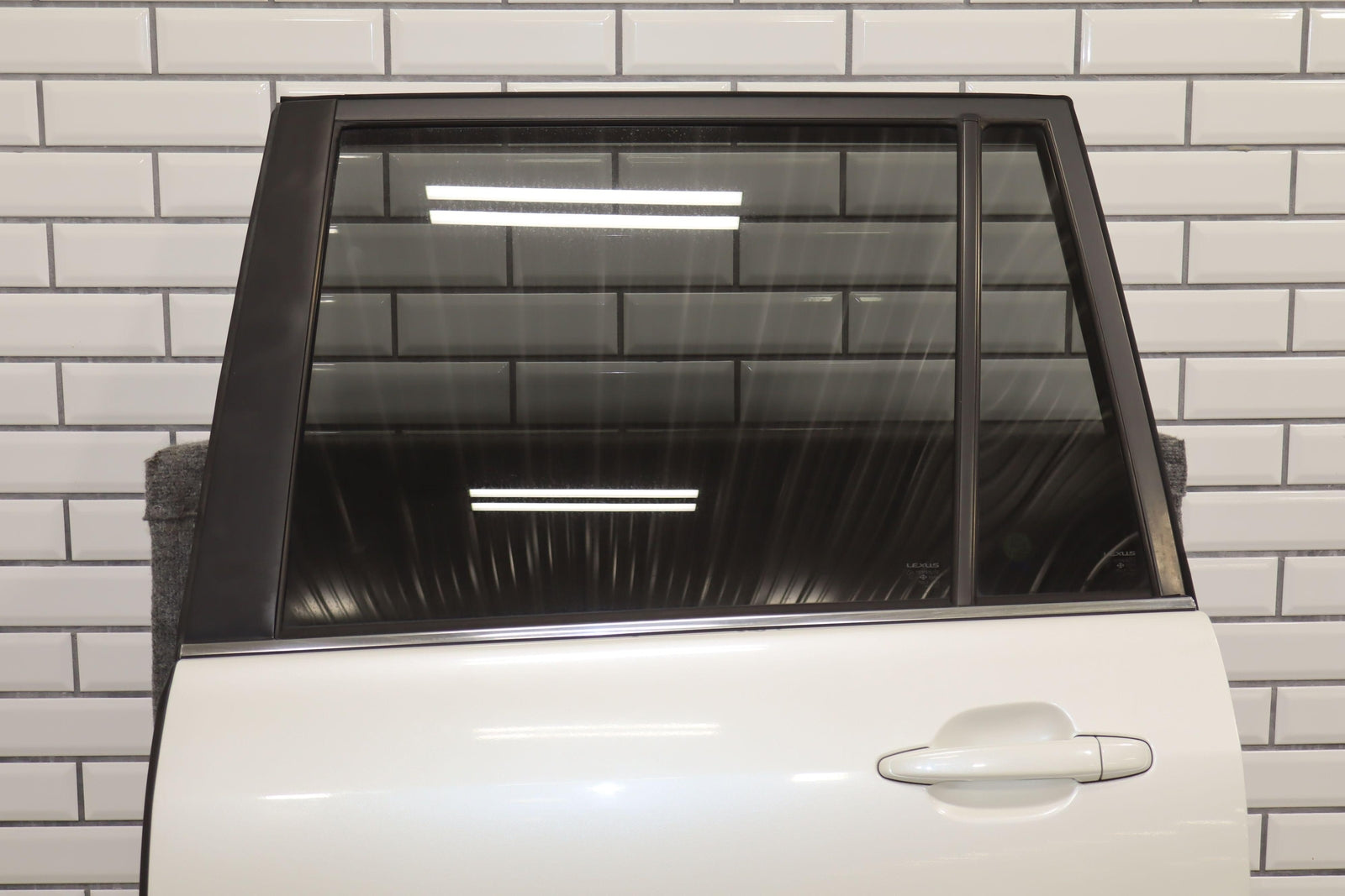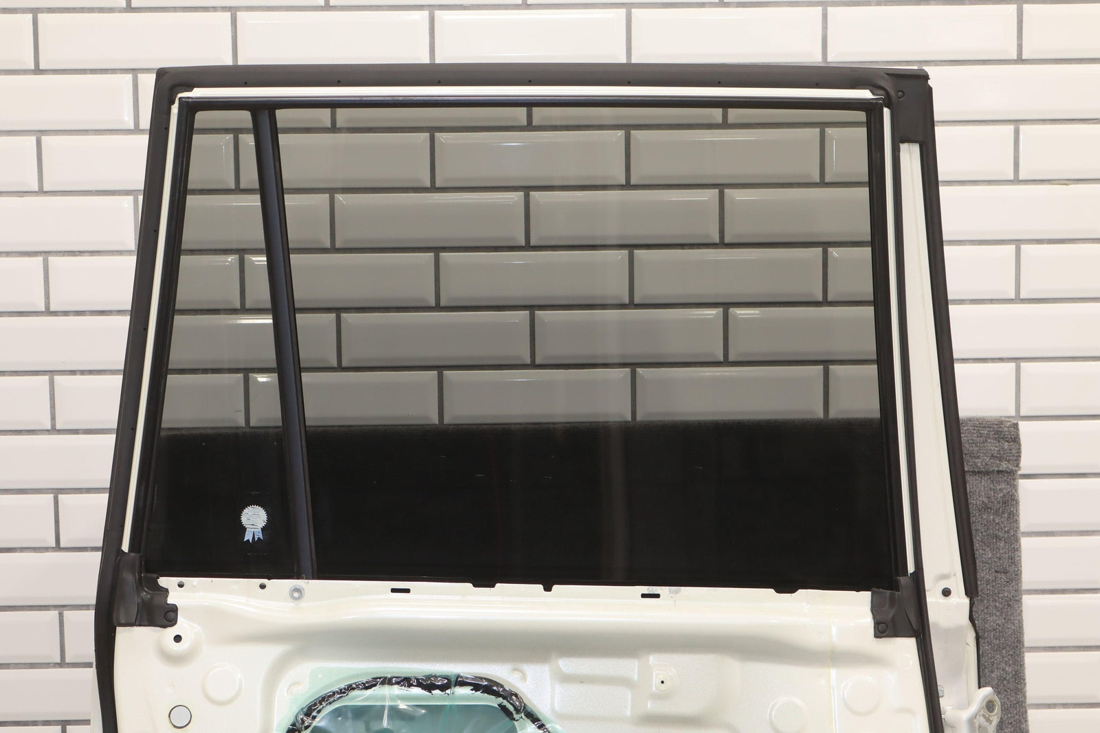 Trasera izquierda, Blizzard Pearl (070), se vende sin panel de moldura, algo de pintura descascarada en el borde superior, un par de desconchones en el borde de la puerta trasera