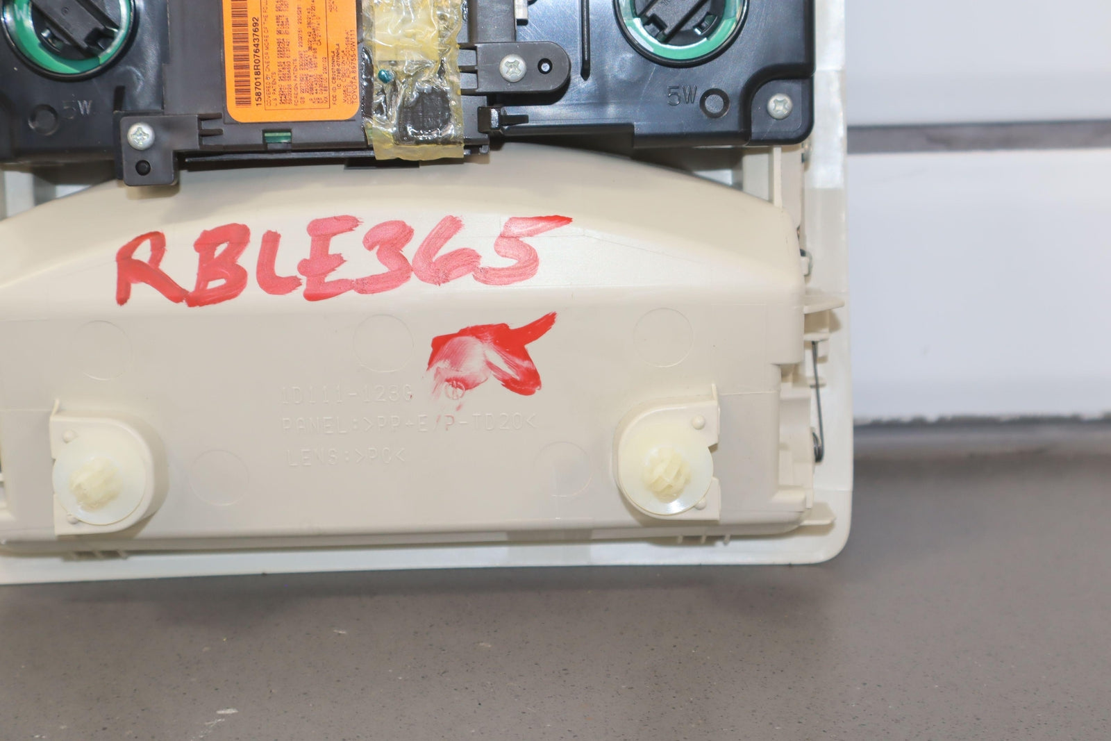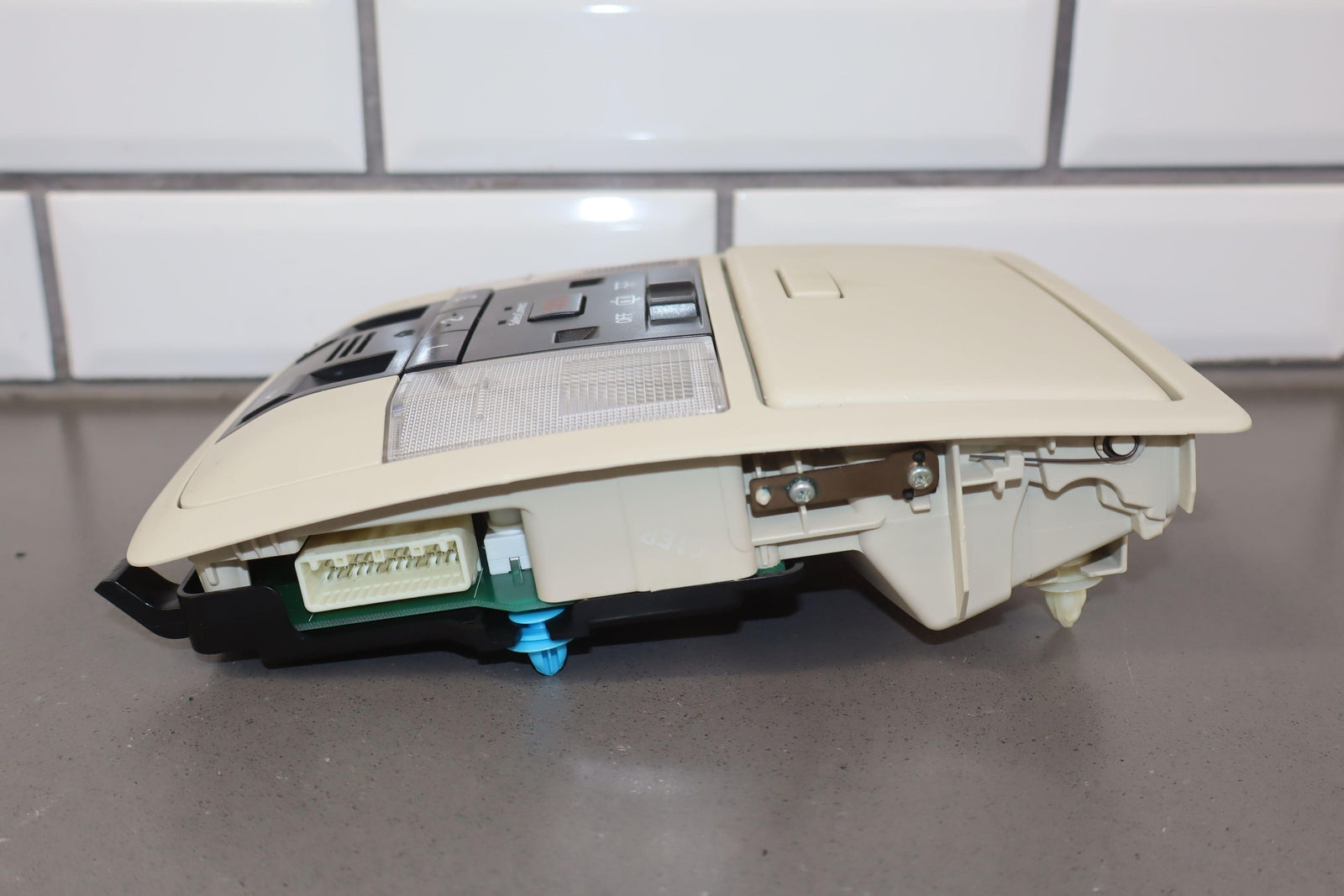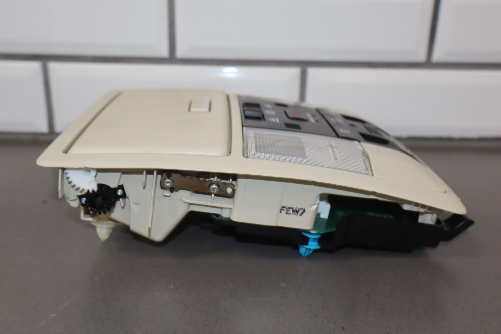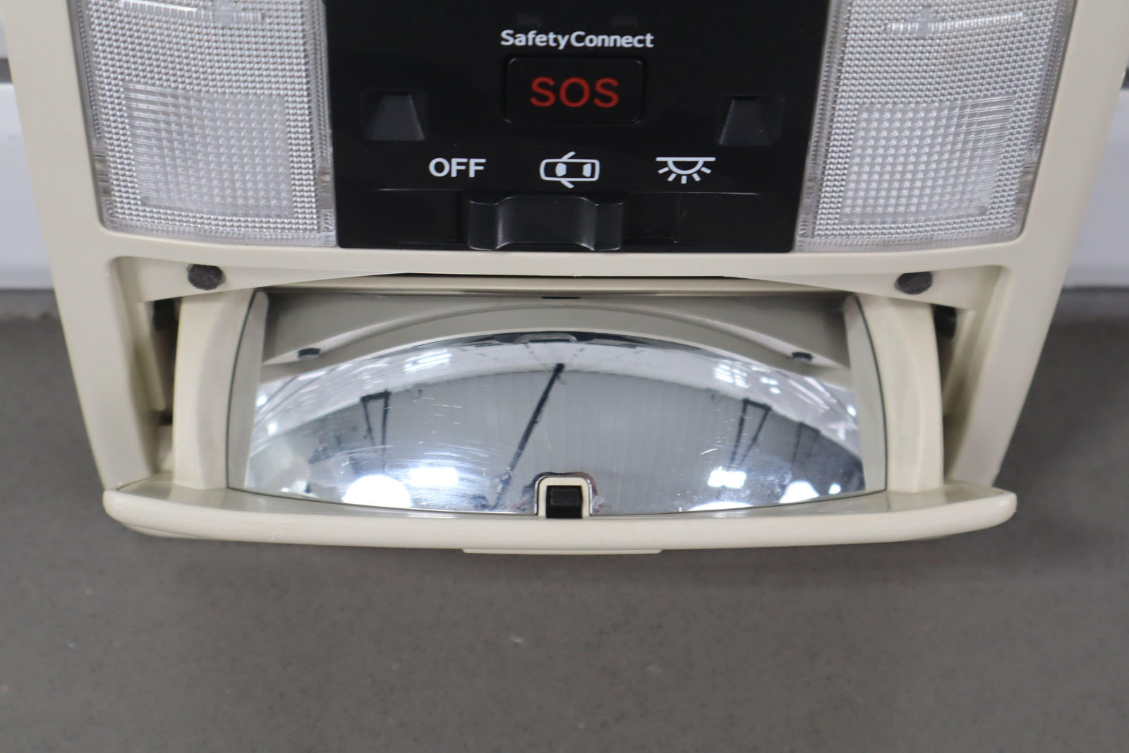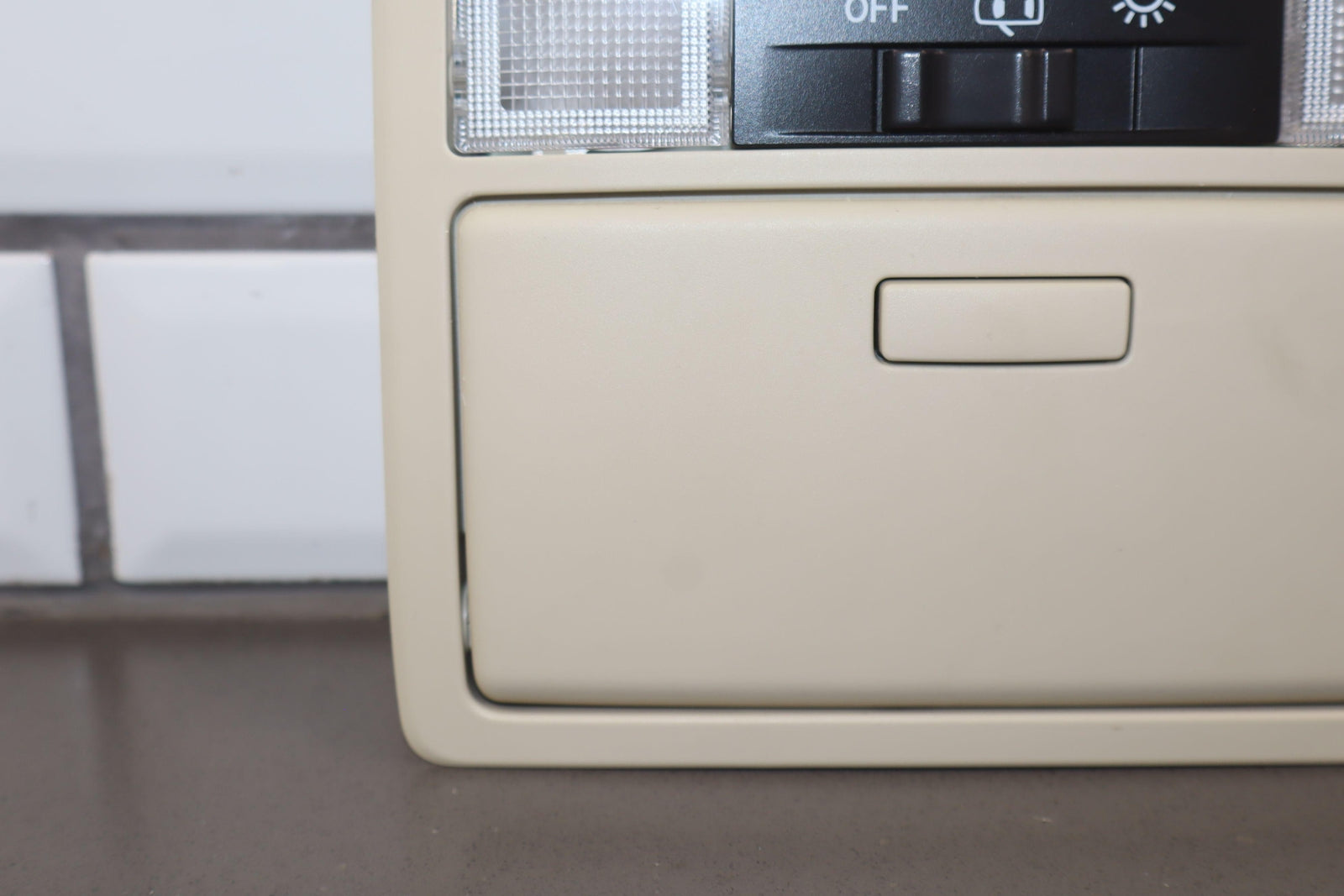 Consola de techo, color crudo (00), mercado estadounidense, la puerta del espejo se atasca pero se abre, letras de botones limpias