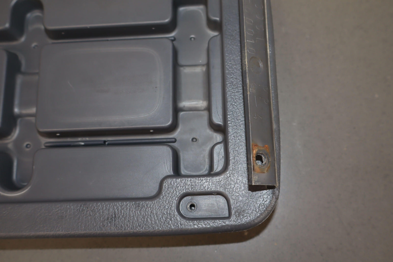 Gris (fd10), leves rayones/rayones en todas partes, bisagra aún colocada, pestillo roto