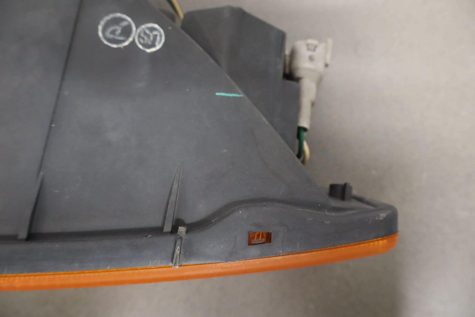 Lámpara de señal de giro izquierda (montada en faldón), neblina leve en la lente, funciona correctamente