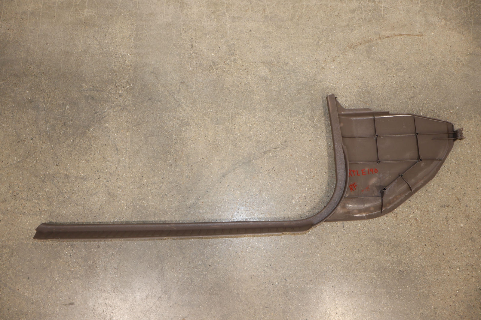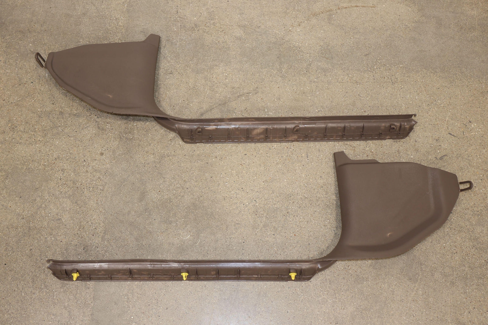 Par izquierdo y derecho, placas de umbral delanteras, beige (4m9), rayones/rayones leves en toda la carrocería, 1 pestaña de montaje rota (marcada en rojo)