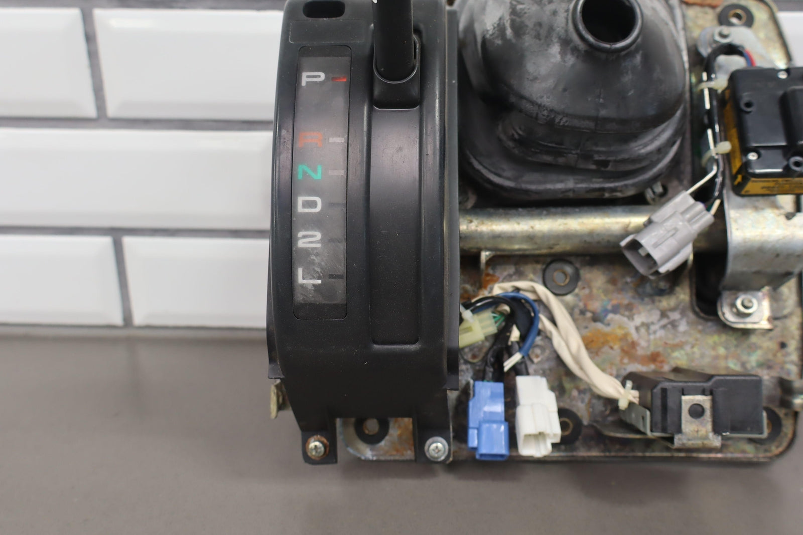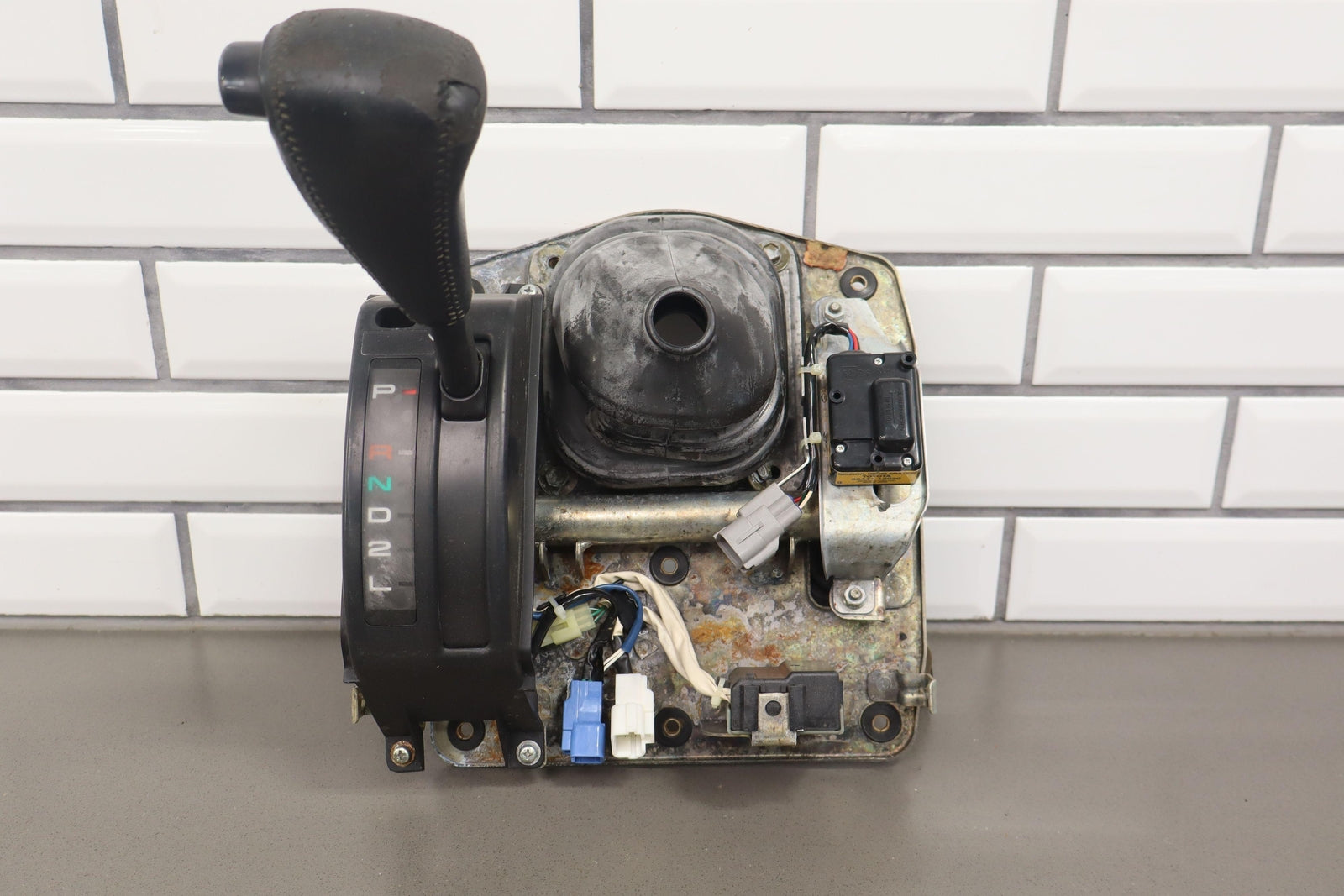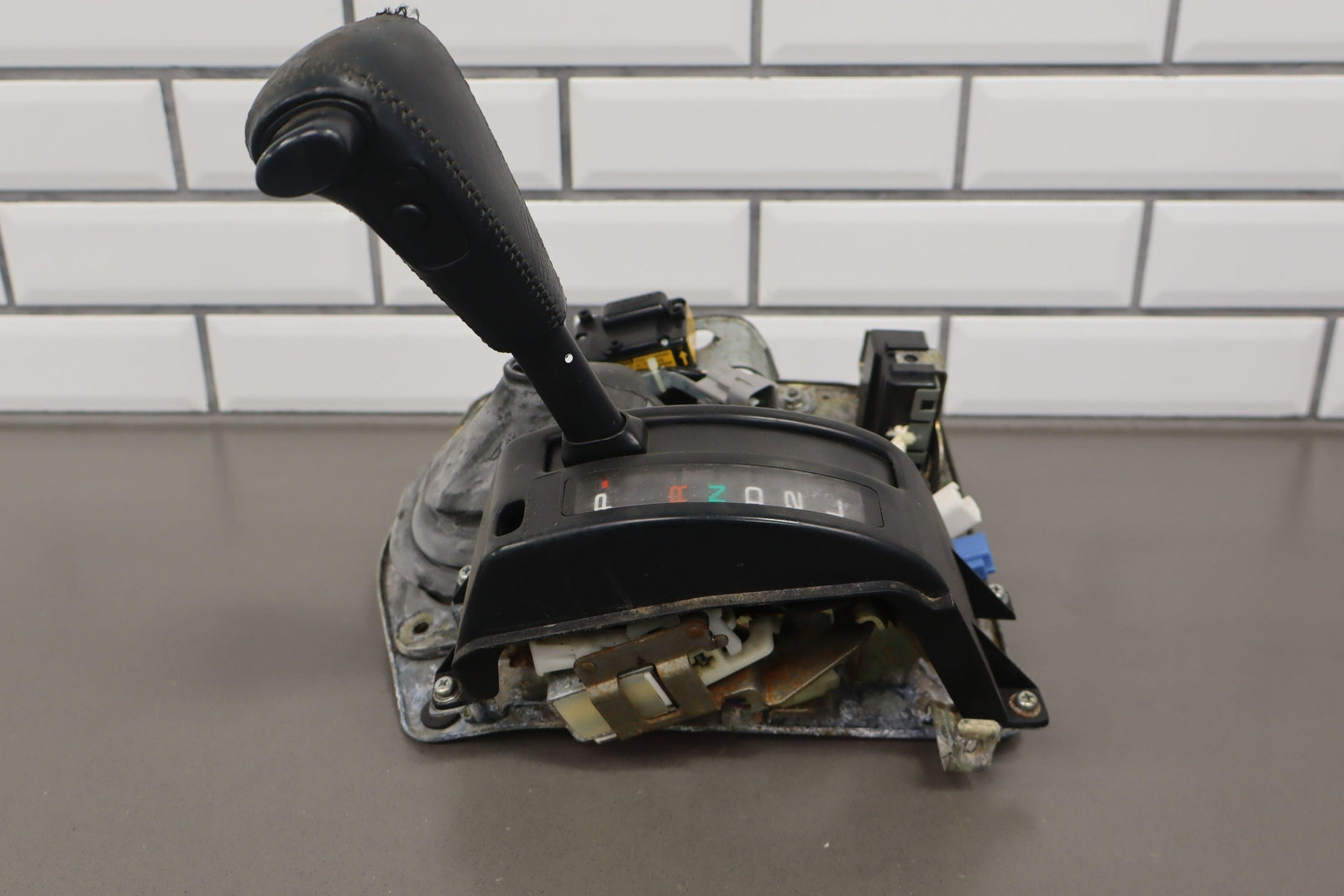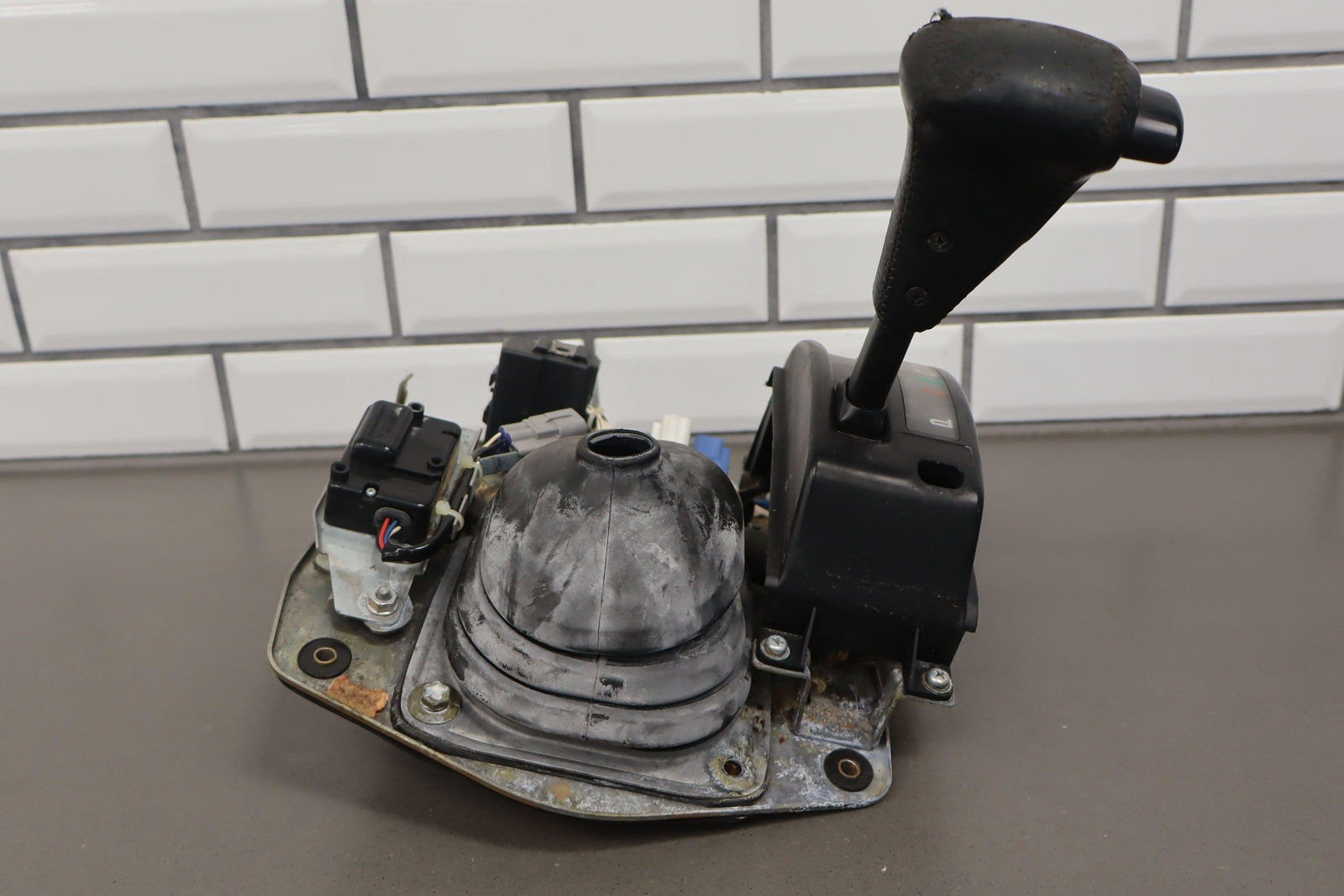 Palanca de cambios de piso, incluye perilla desgastada, varillaje, funda de goma, varios módulos