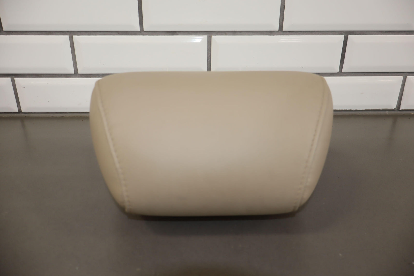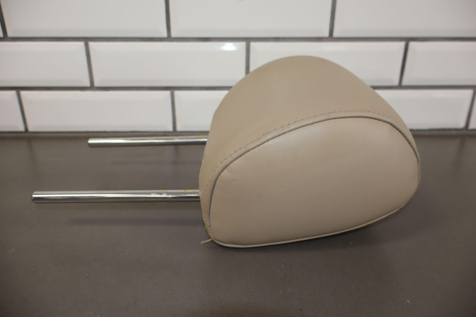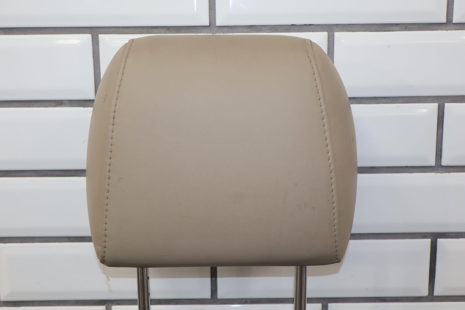 Reposacabezas delantero derecho de cuero, color marfil (lf40), manchas leves, desgaste mínimo.