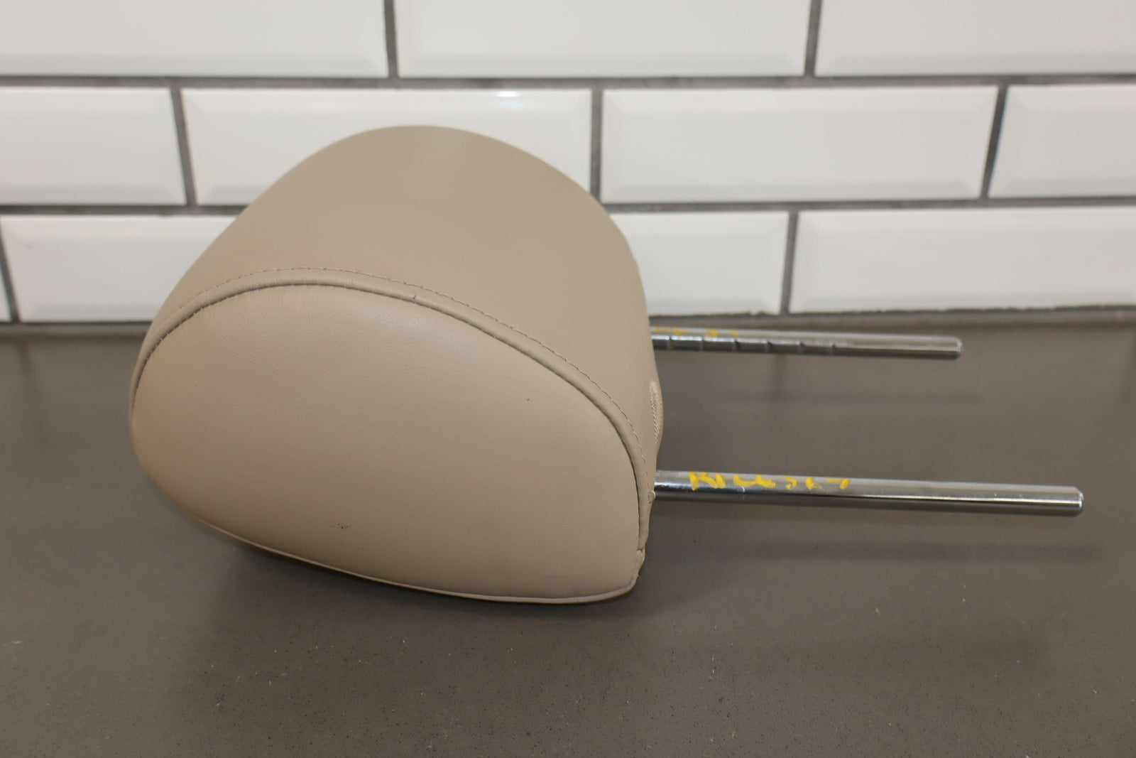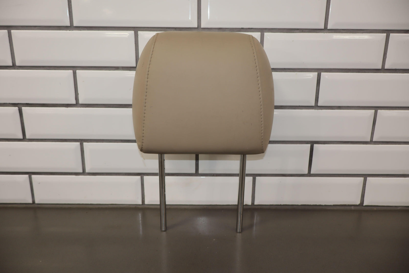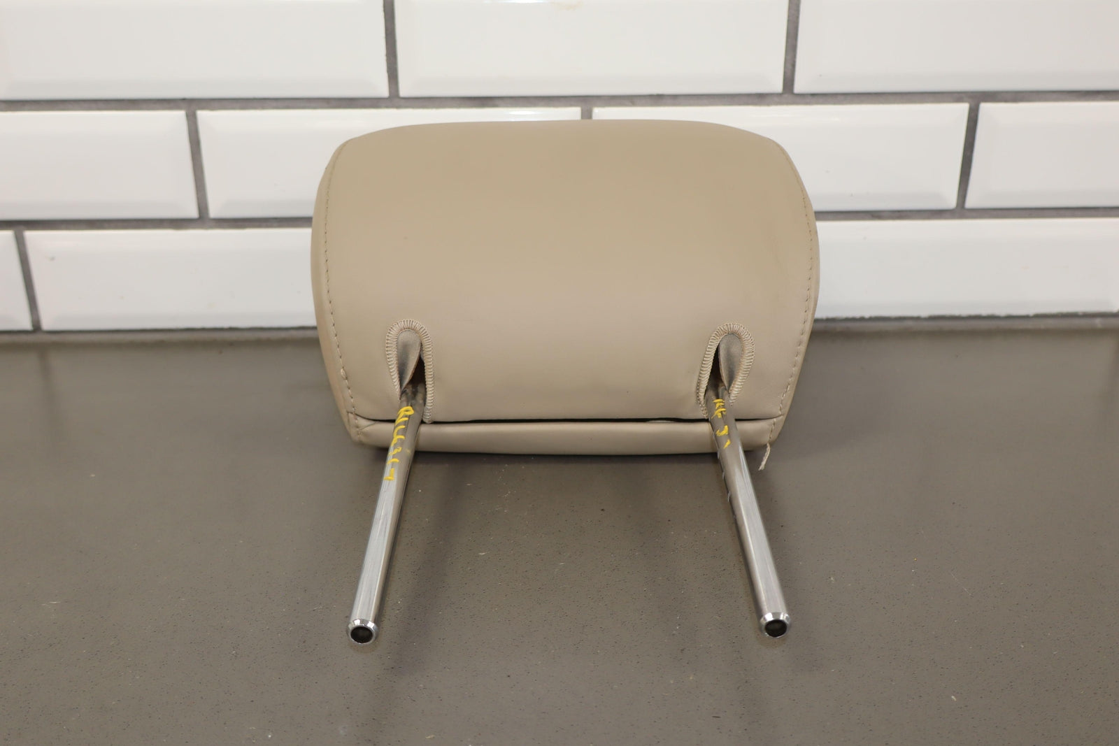 Reposacabezas delantero derecho de cuero, color marfil (lf40), manchas leves, desgaste mínimo.