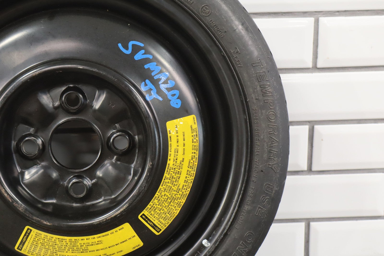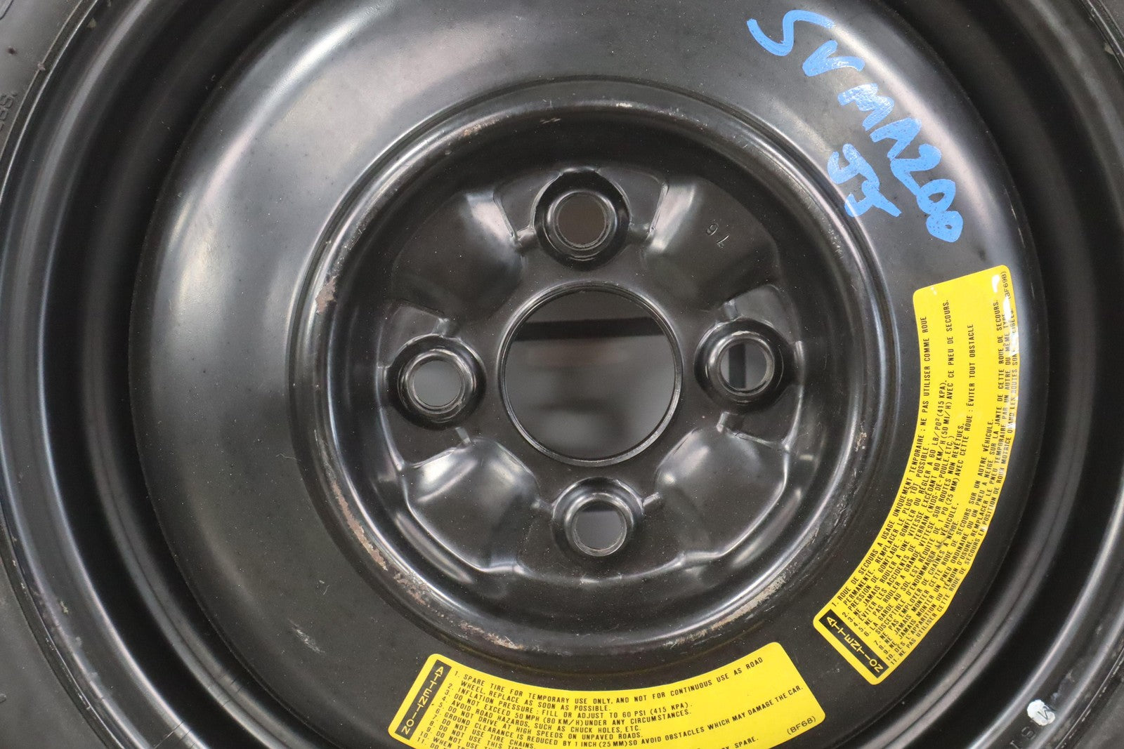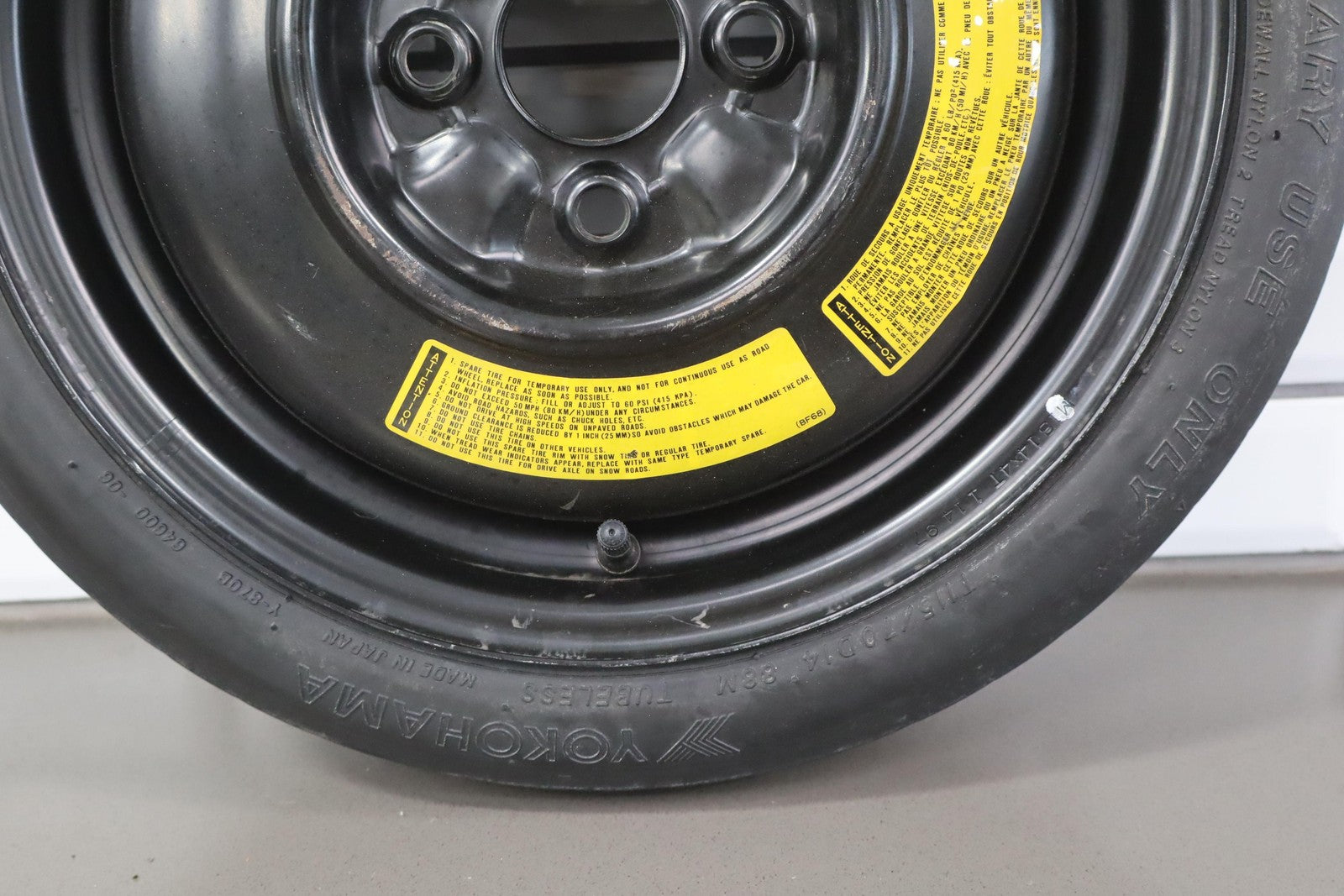 14x4 Steel Spare Wheel, T115/70d14 Yokohama Temporary Tire, 4/32, 486 Dot (1996), Includes Spare Cover-tire Iron-tool Pouch