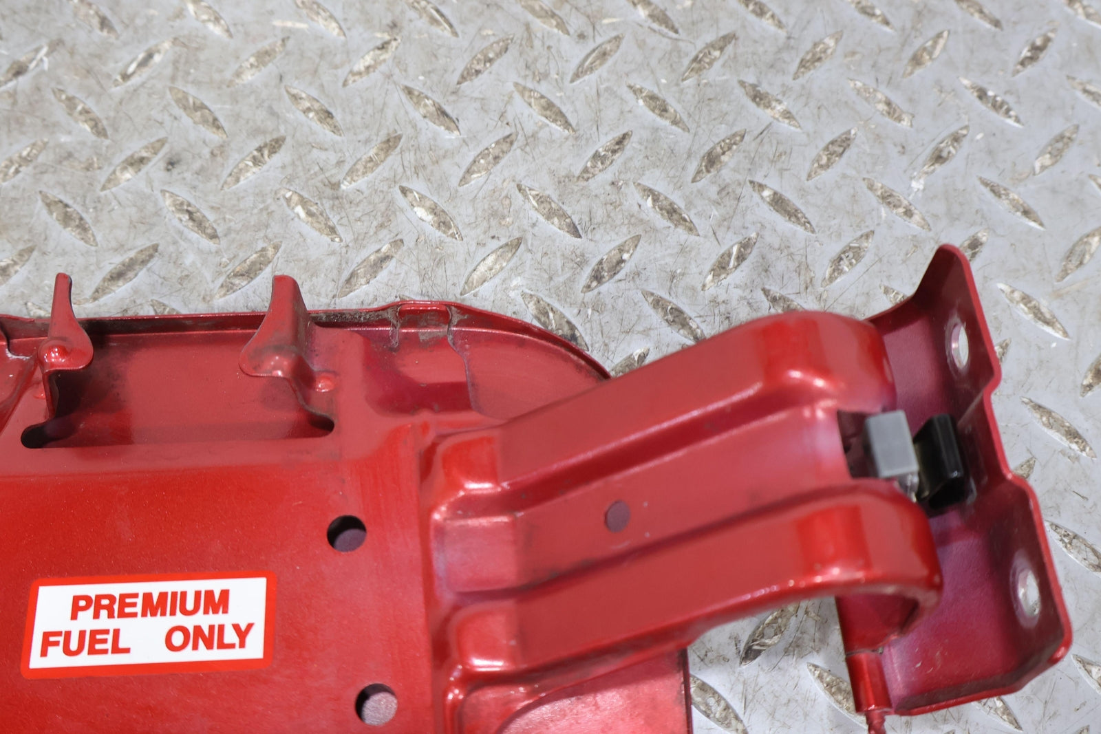 Rally Red (p26), Some Clear Coat Peel, Mild Sun Fade, Mounted Solid, Functions Properly