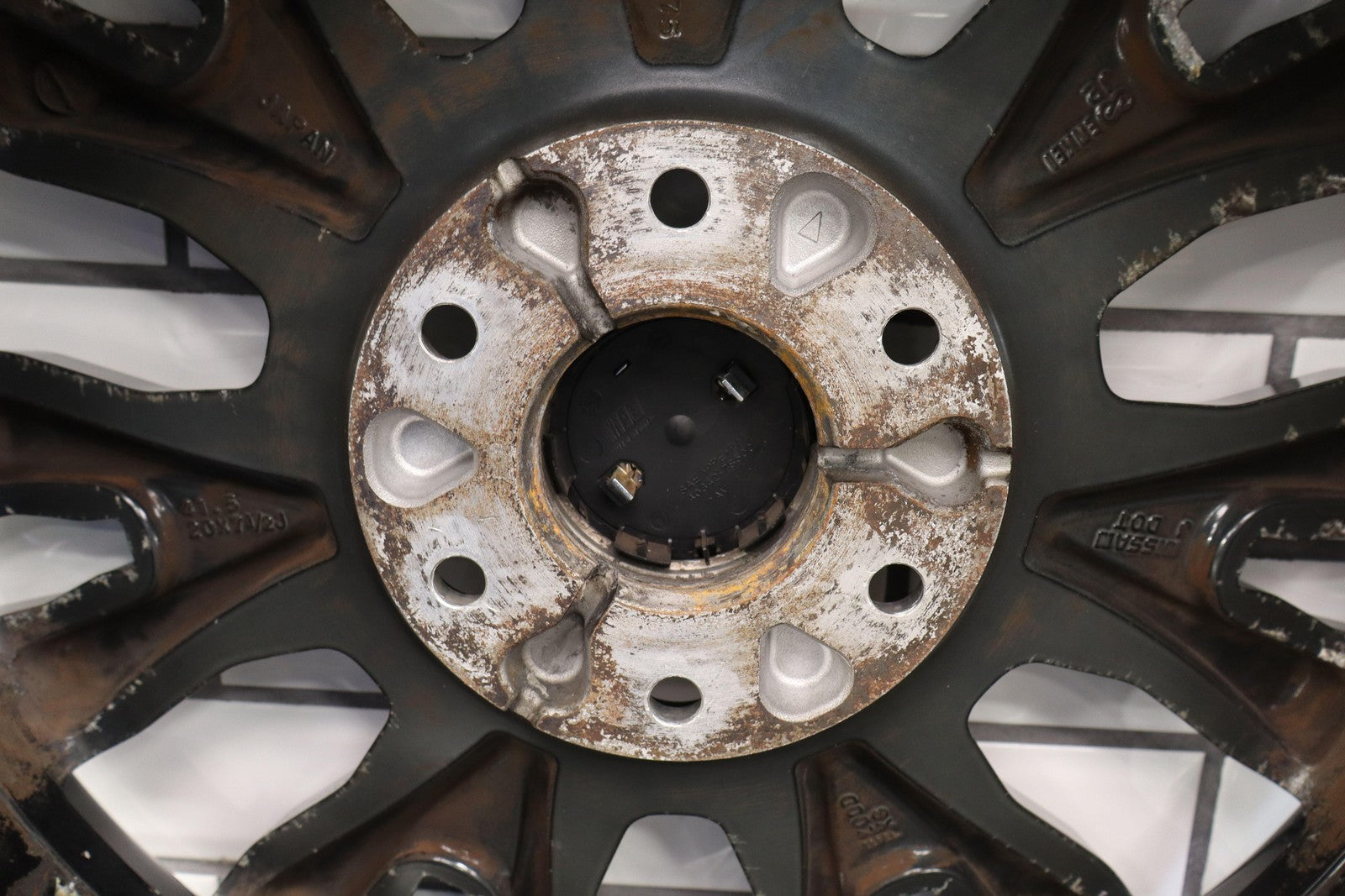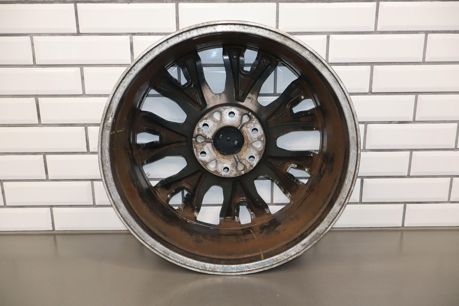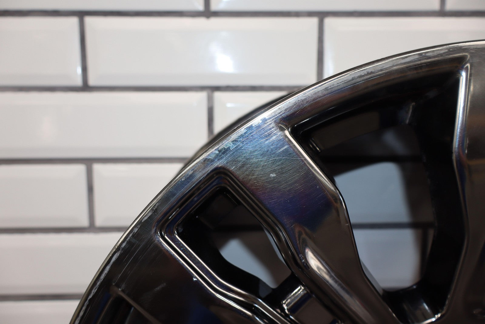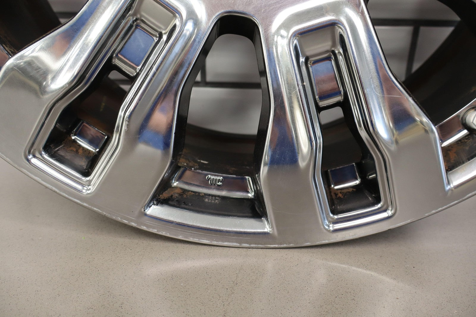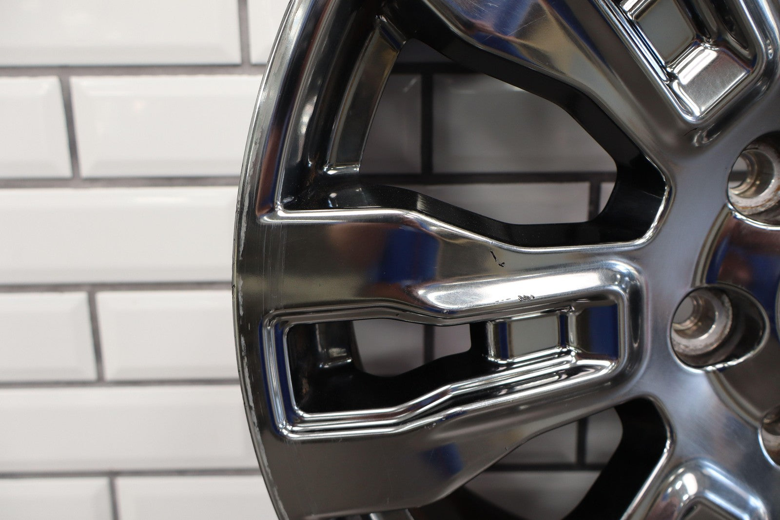 Lh Rear, 20x7.5 7 Spoke Chrome Wheel, Curb Rash, Decent Scratches To Spokes, Some Weathering, Spun True