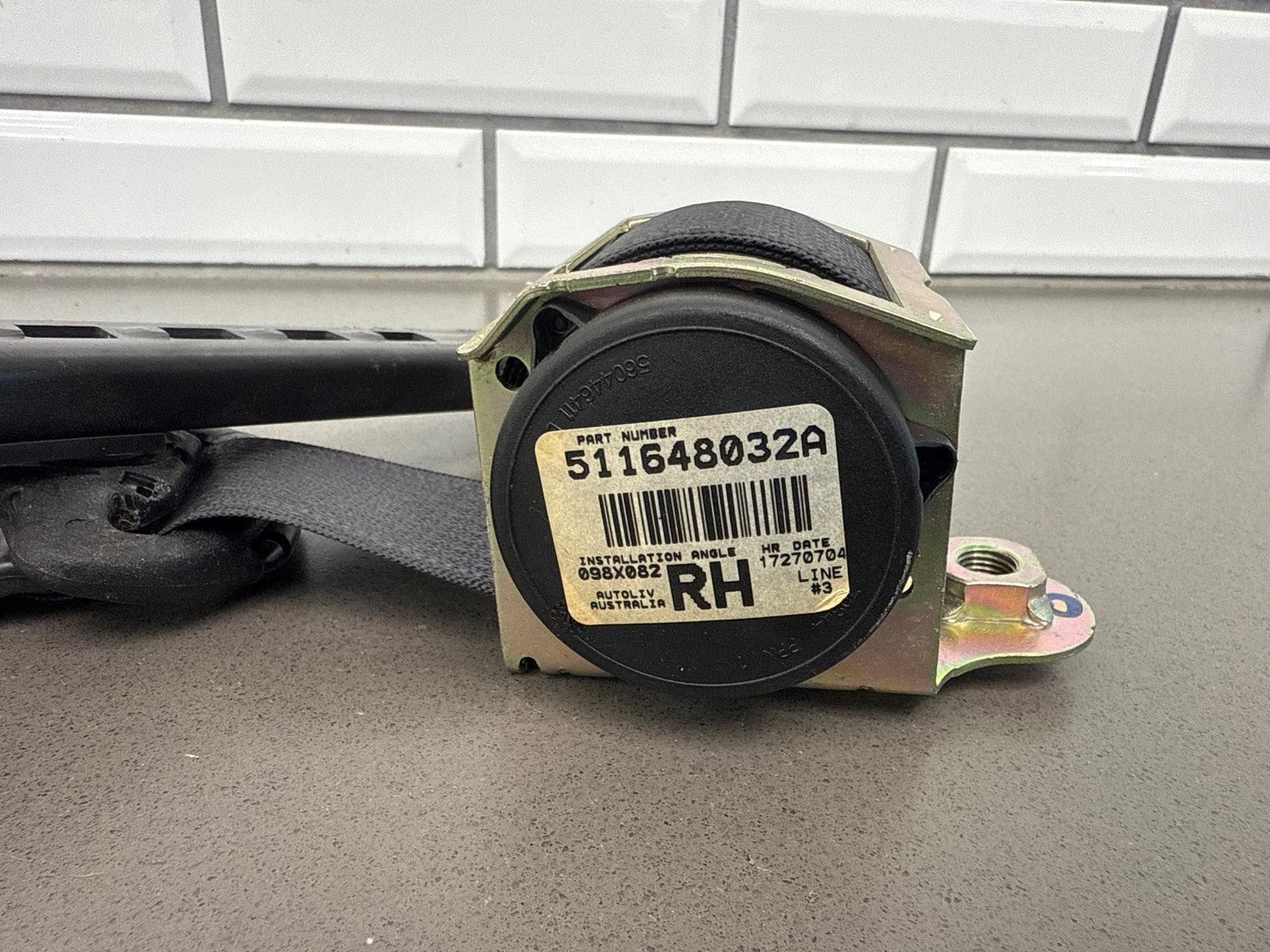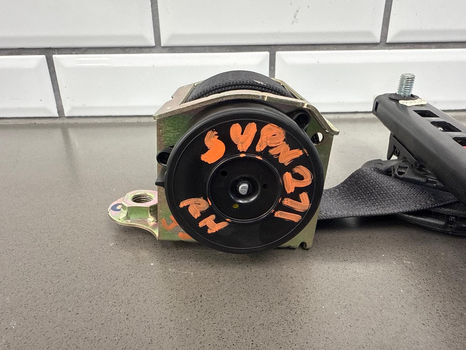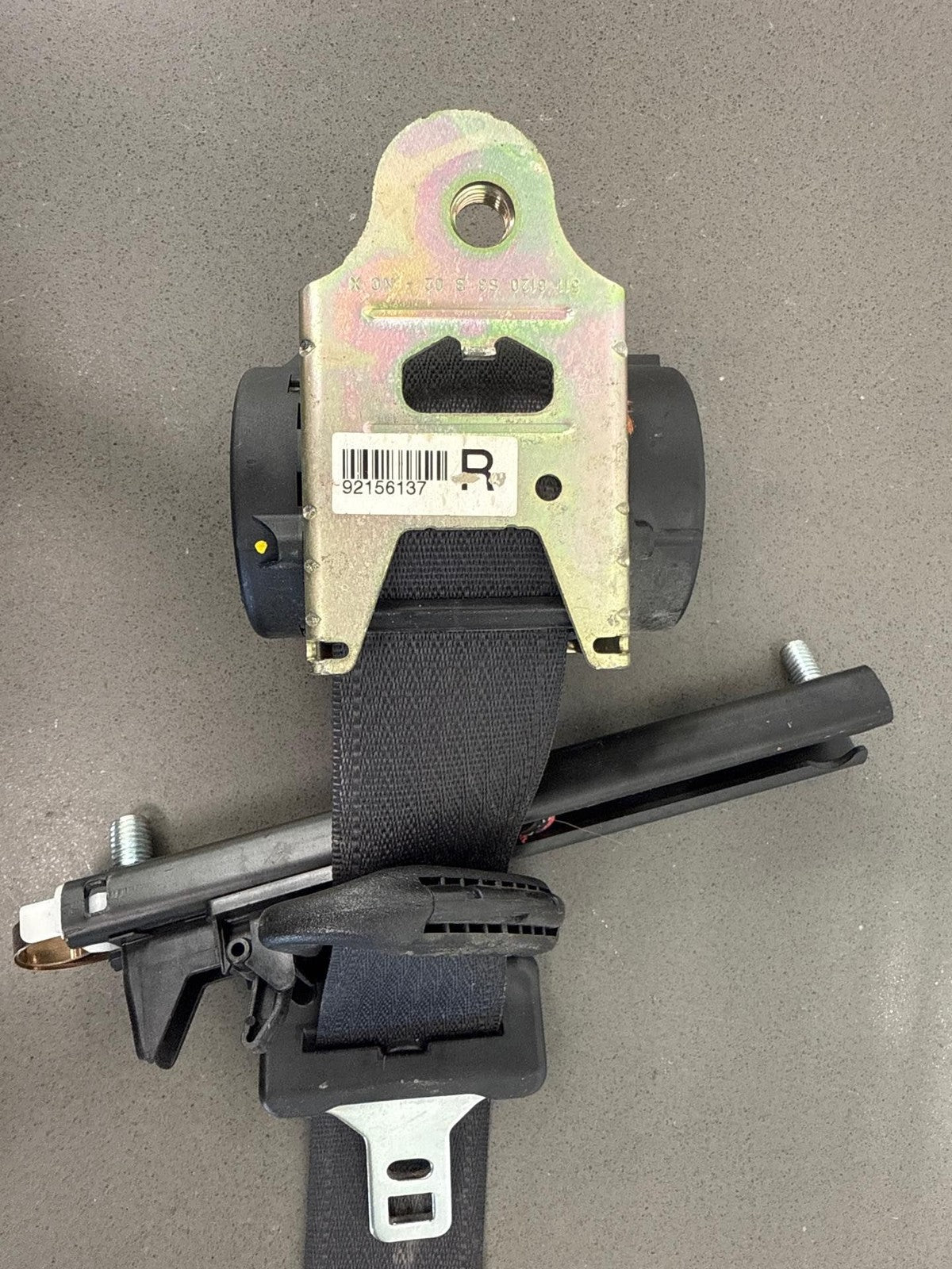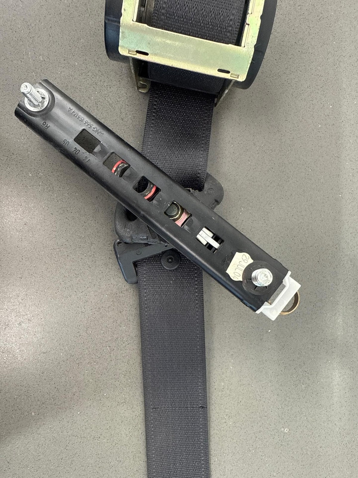 Rh Front Retractor, Black (812), Mild Wear, Light Staining, Retracts Properly