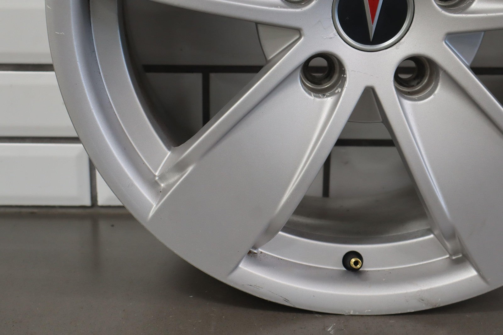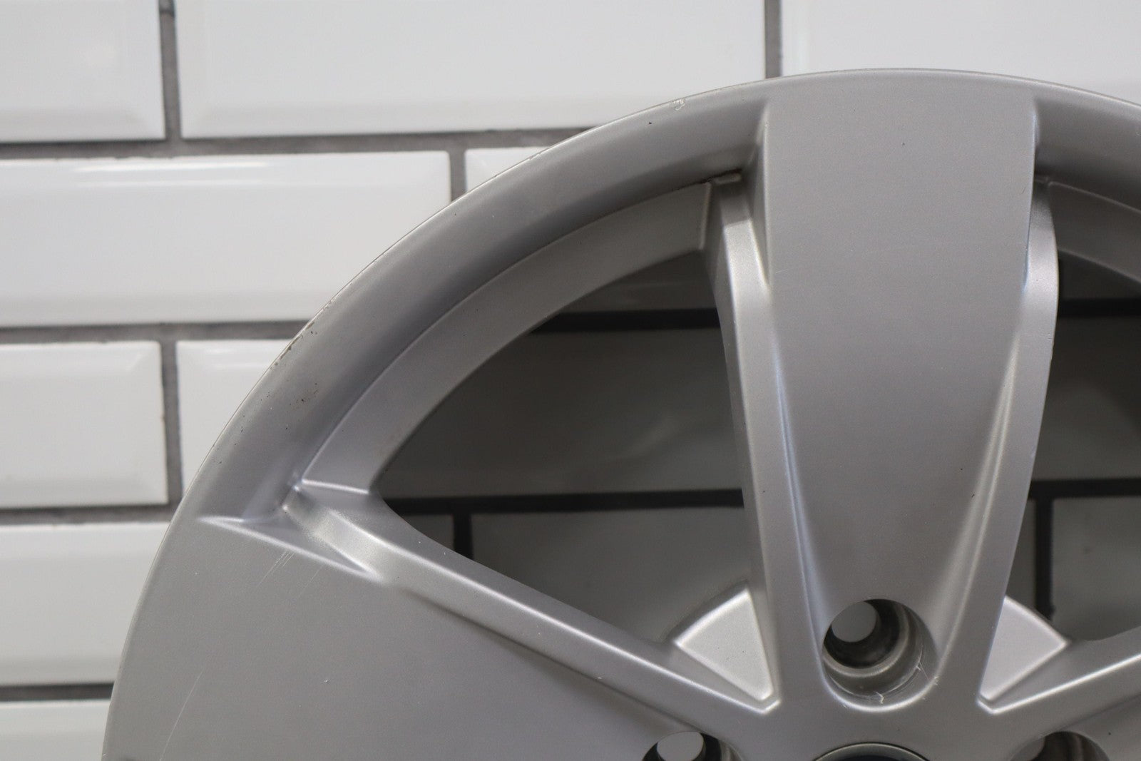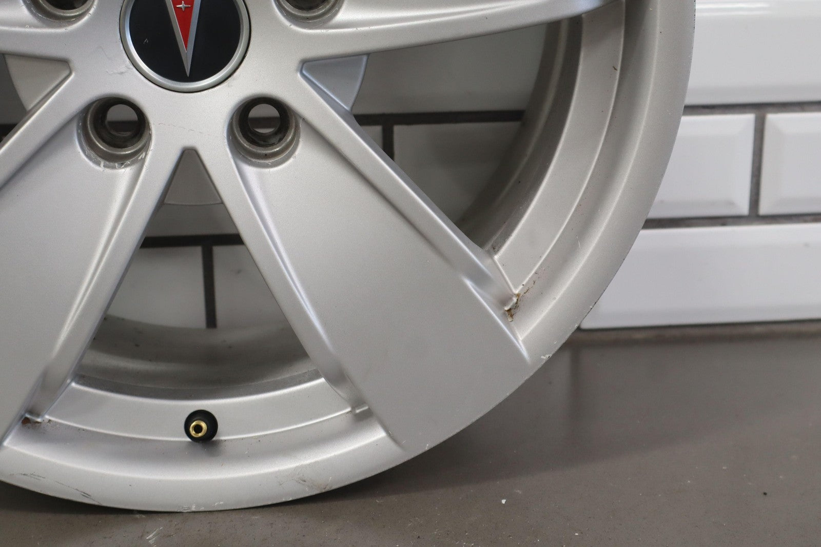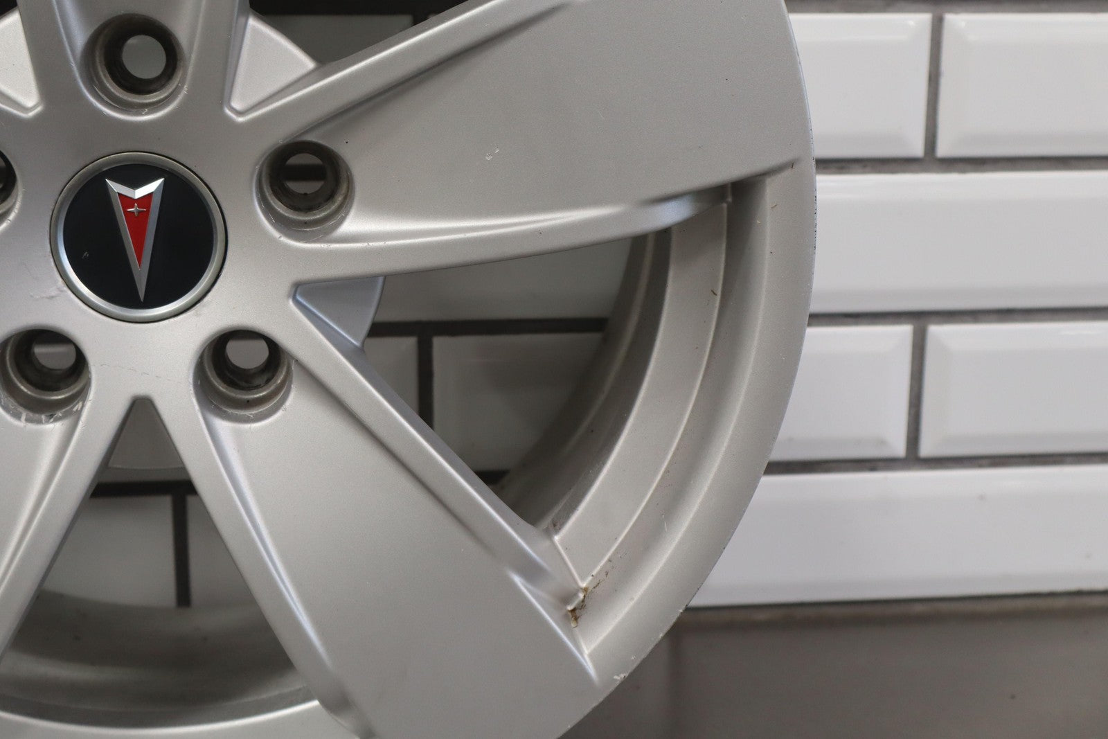 Lh Rear, 17x8 Silver 5 Spoke Wheel W/o Clear Coat Finish (pz9), Brake Dust Staining, Minor Curb Rash, Couple Knicks, Spun True