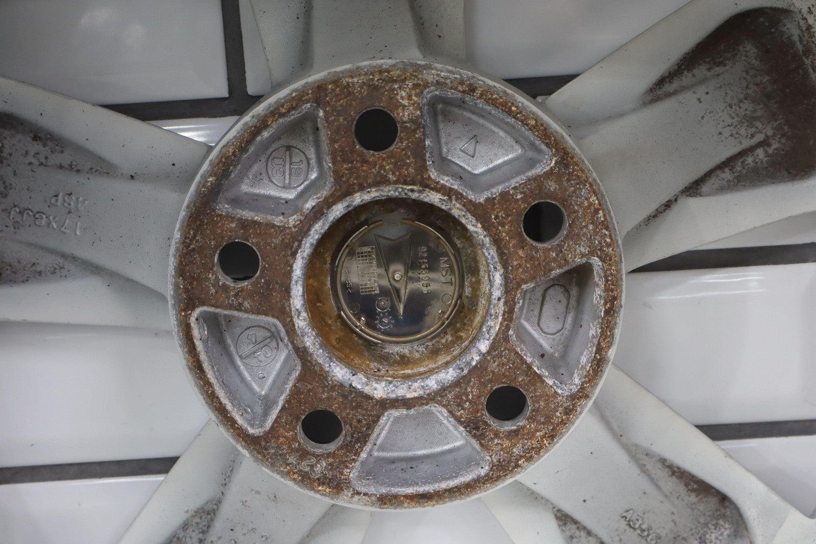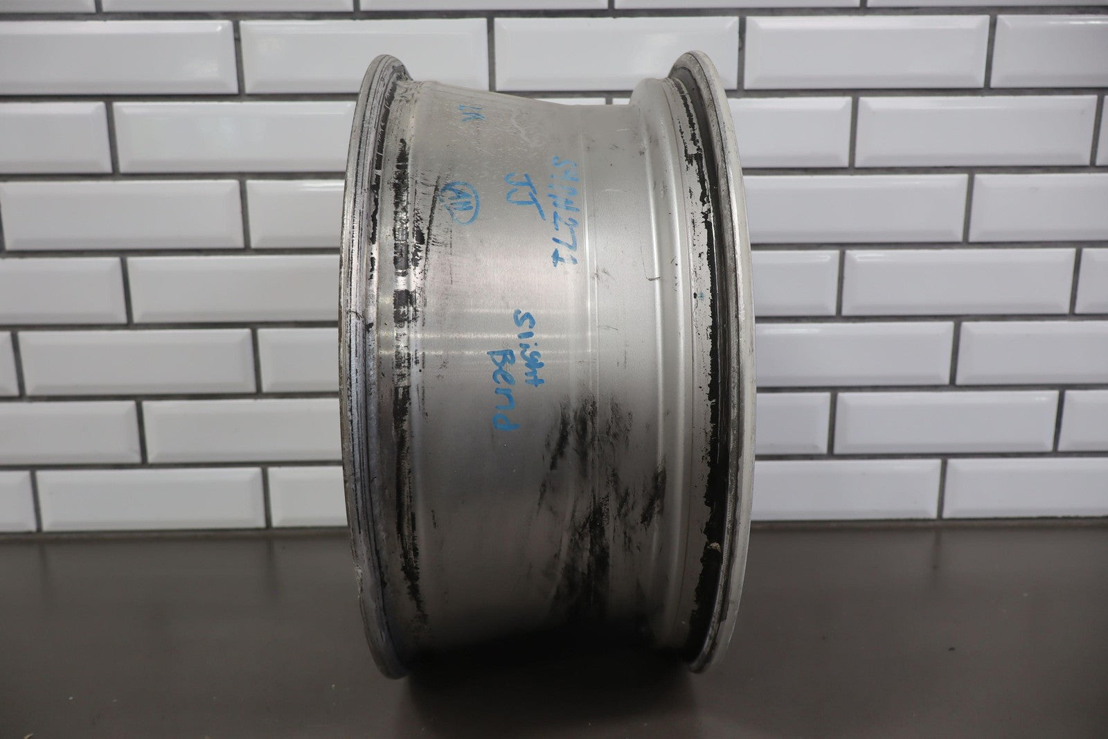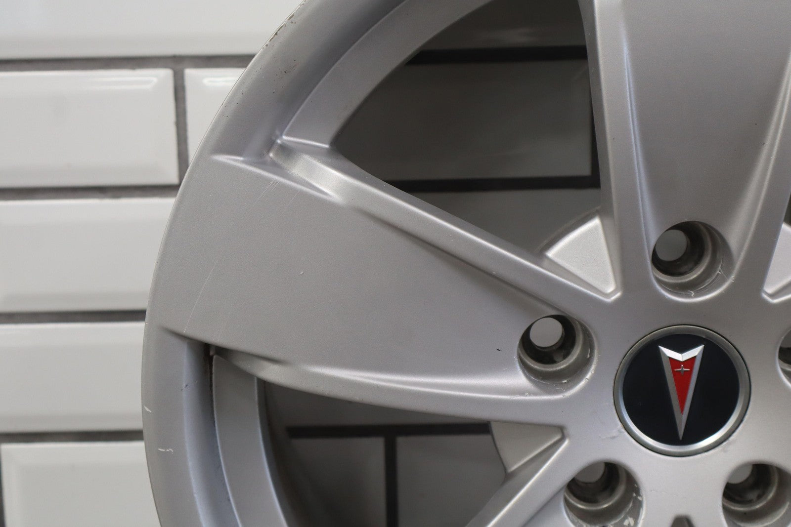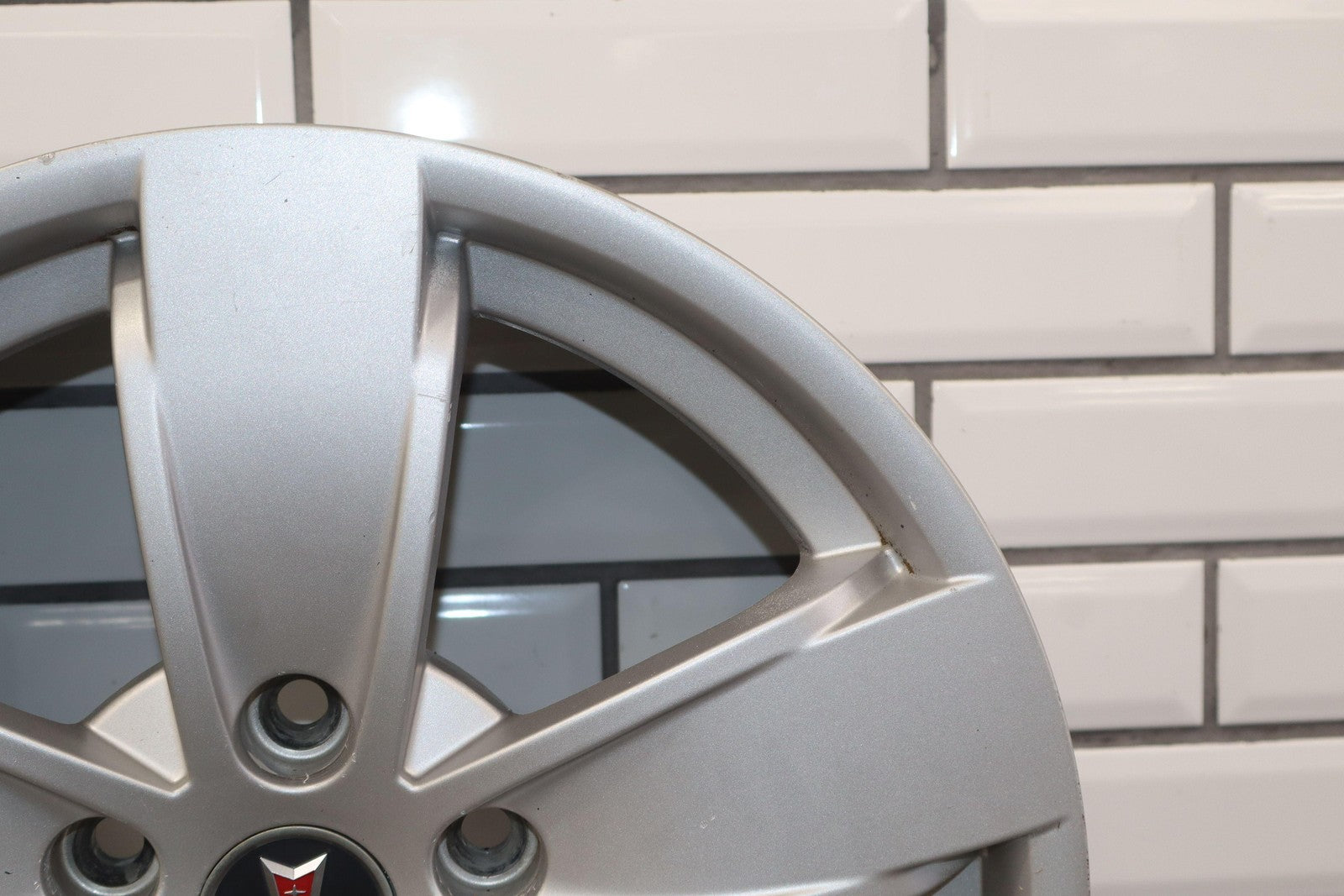 Lh Rear, 17x8 Silver 5 Spoke Wheel W/o Clear Coat Finish (pz9), Brake Dust Staining, Minor Curb Rash, Couple Knicks, Spun True