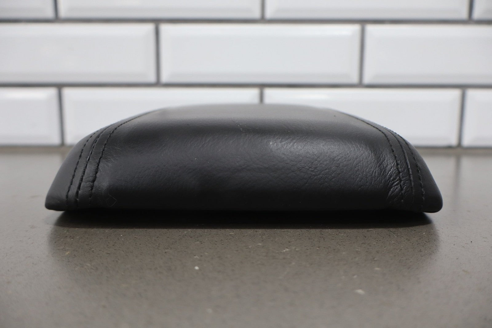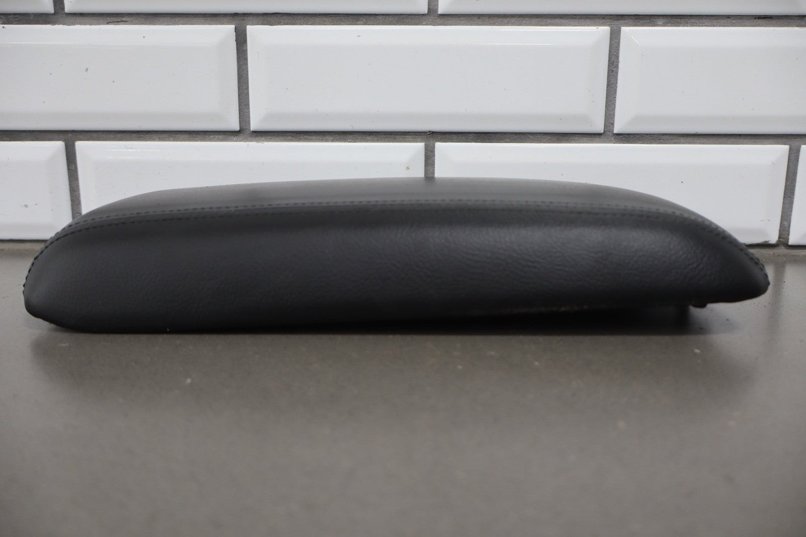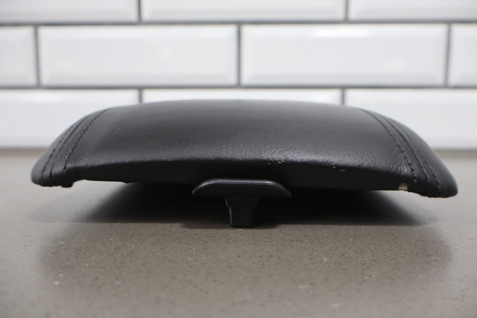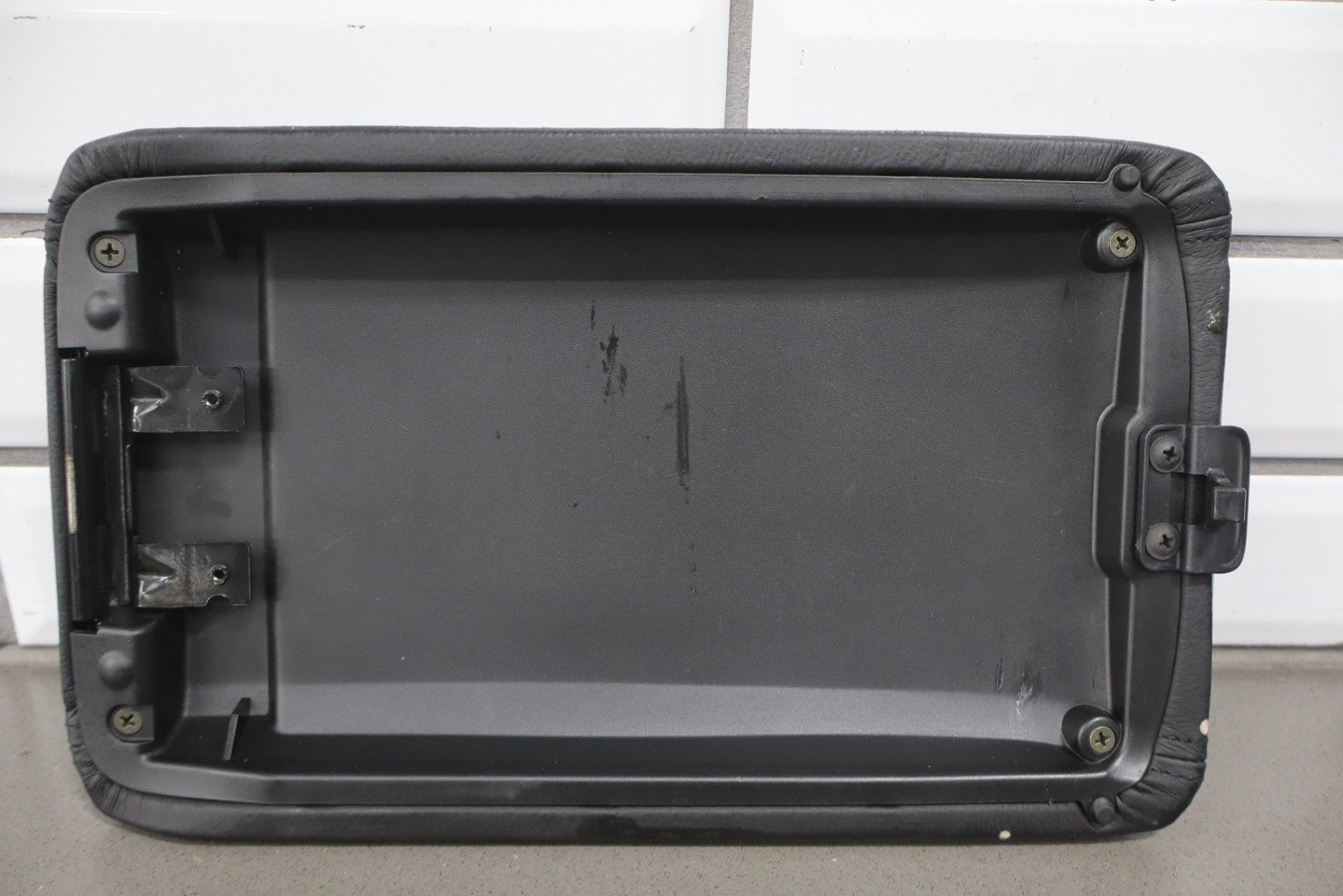 leather console lid, latch functions properly, mild wear, light staining