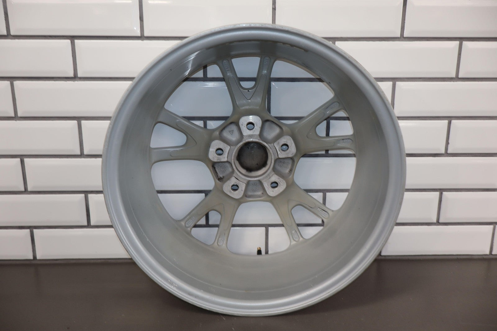 Cayman 17x6.5 Double 5 Spoke Wheel, Silver Finish, Some Curb Rash, Light Scuffs To Face, Spun True, 98736212205