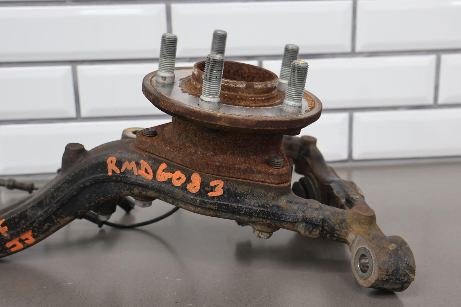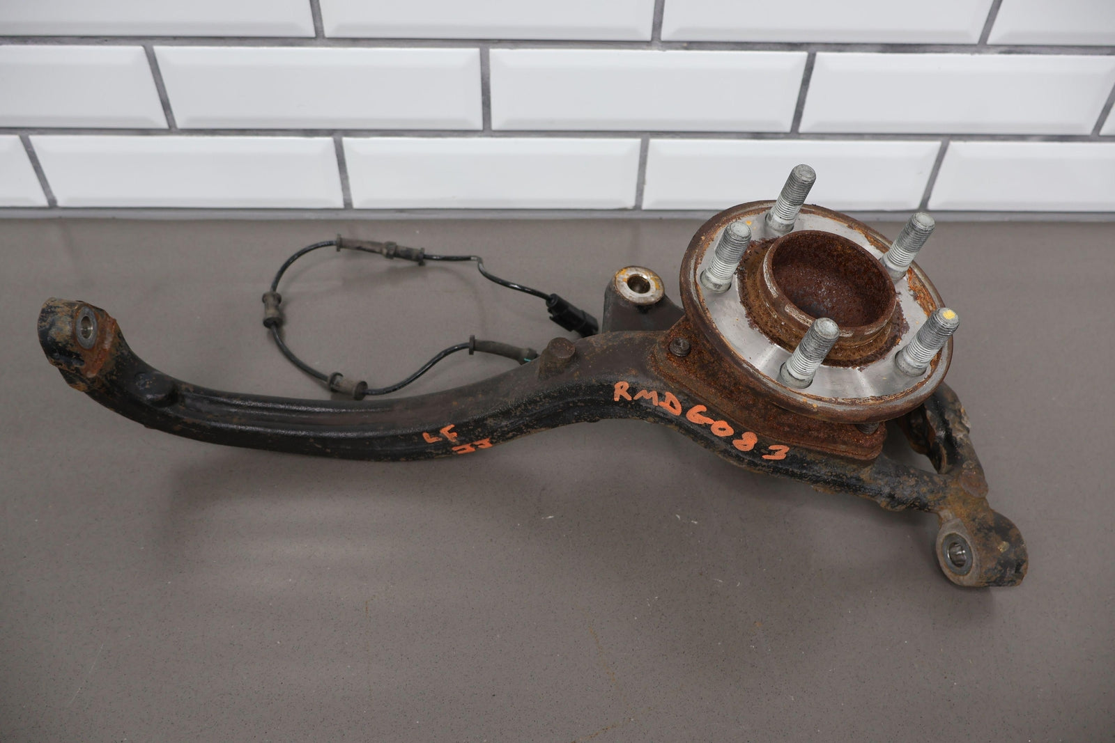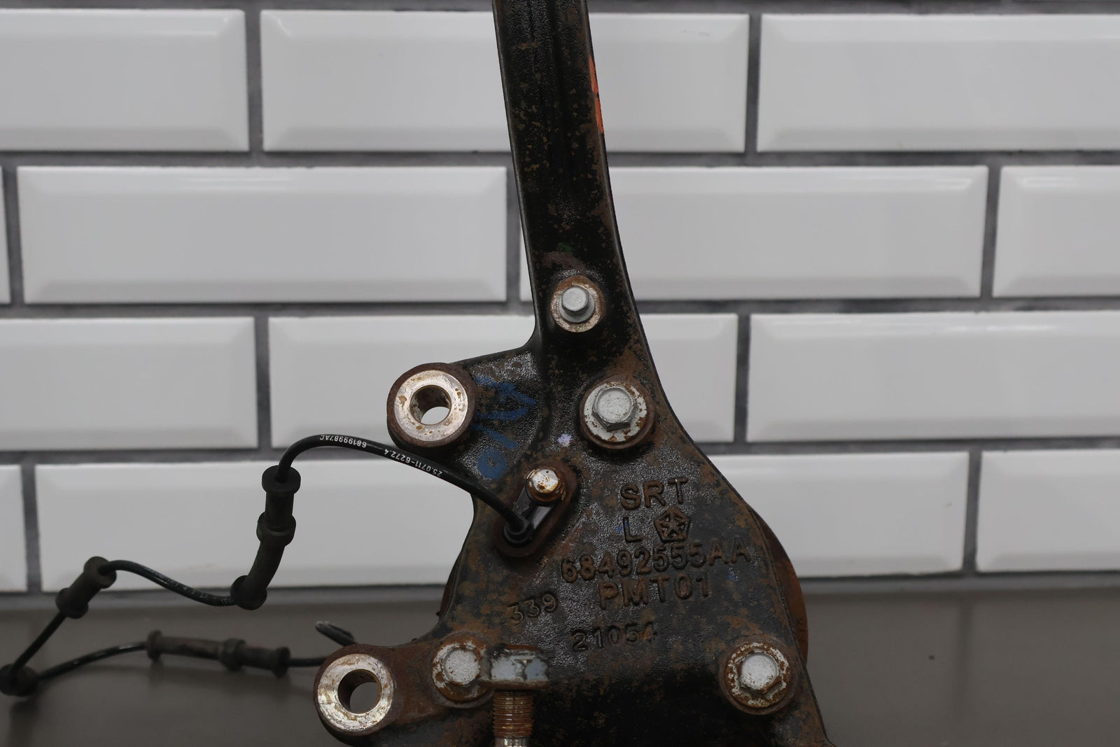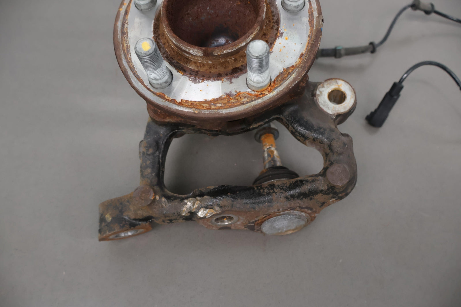 Eje delantero izquierdo, pinza de 6 pistones (opción Br7), incluye rótula inferior, cubo, sensor ABS, herrajes varios, acabado desgastado
