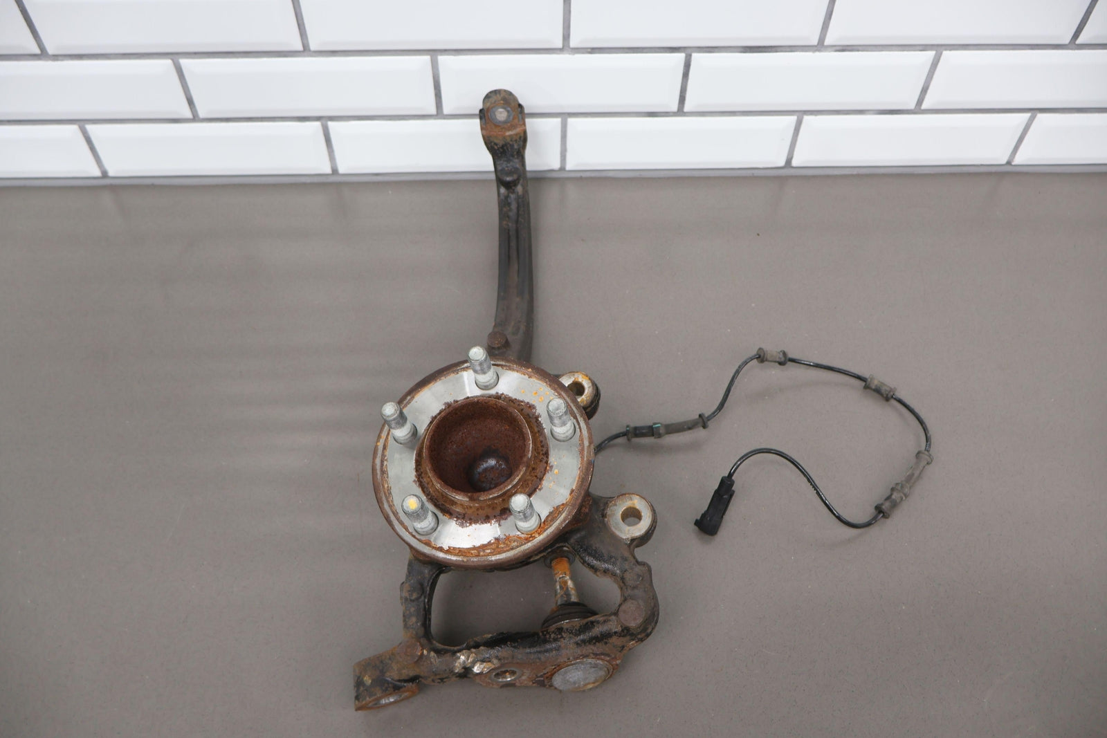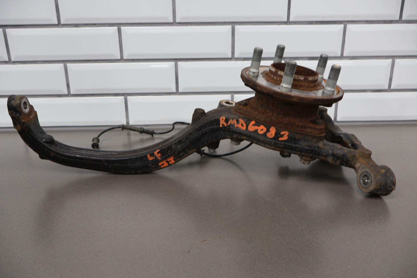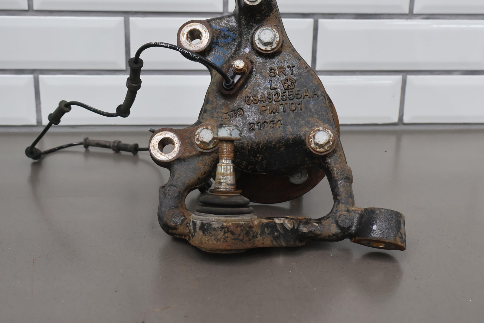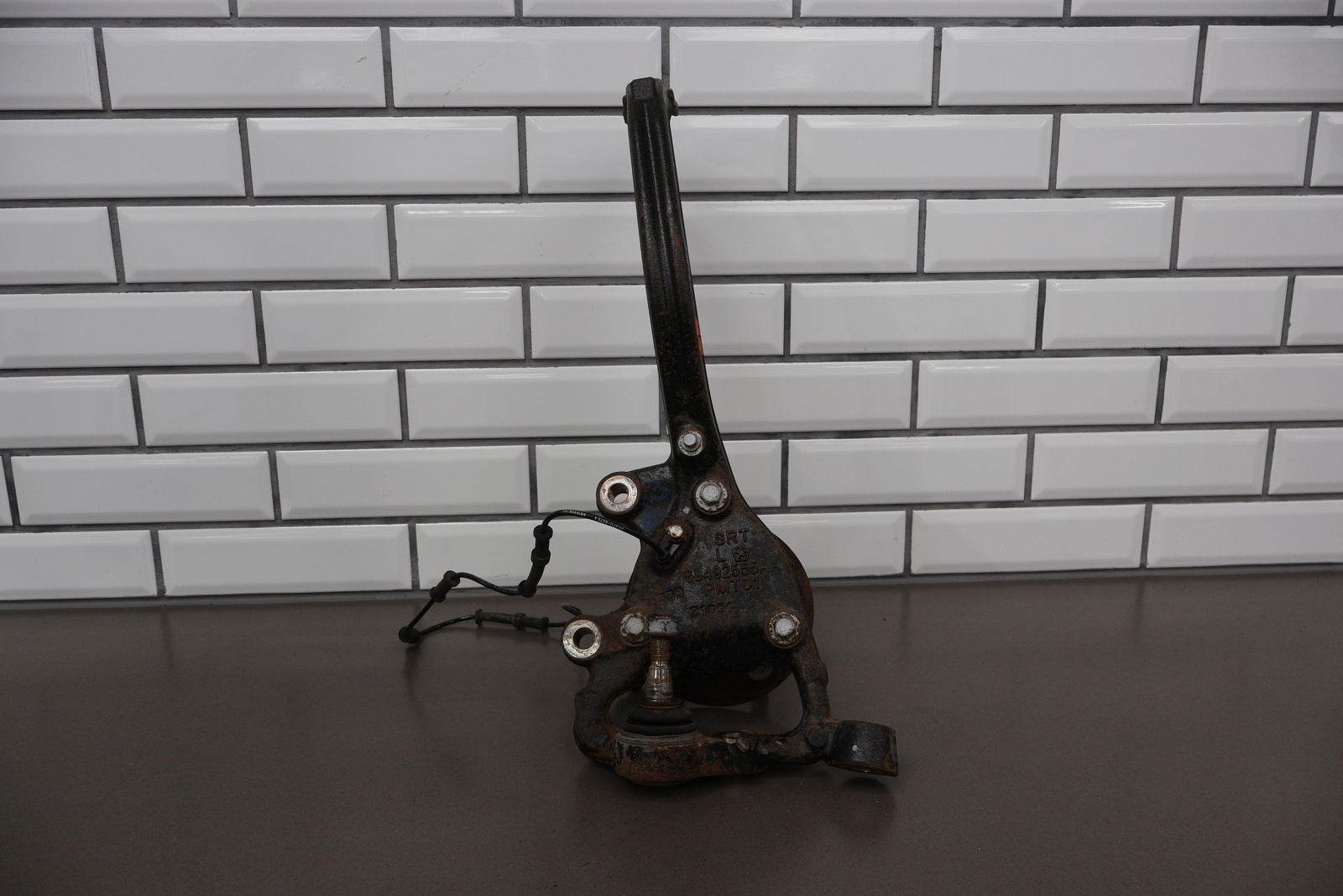 Eje delantero izquierdo, pinza de 6 pistones (opción Br7), incluye rótula inferior, cubo, sensor ABS, herrajes varios, acabado desgastado