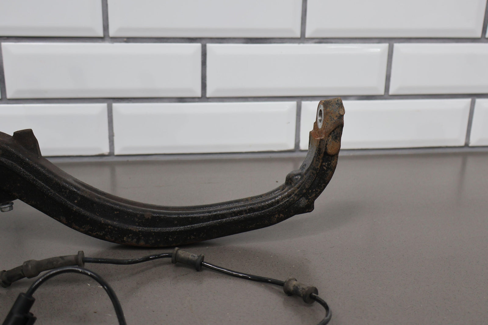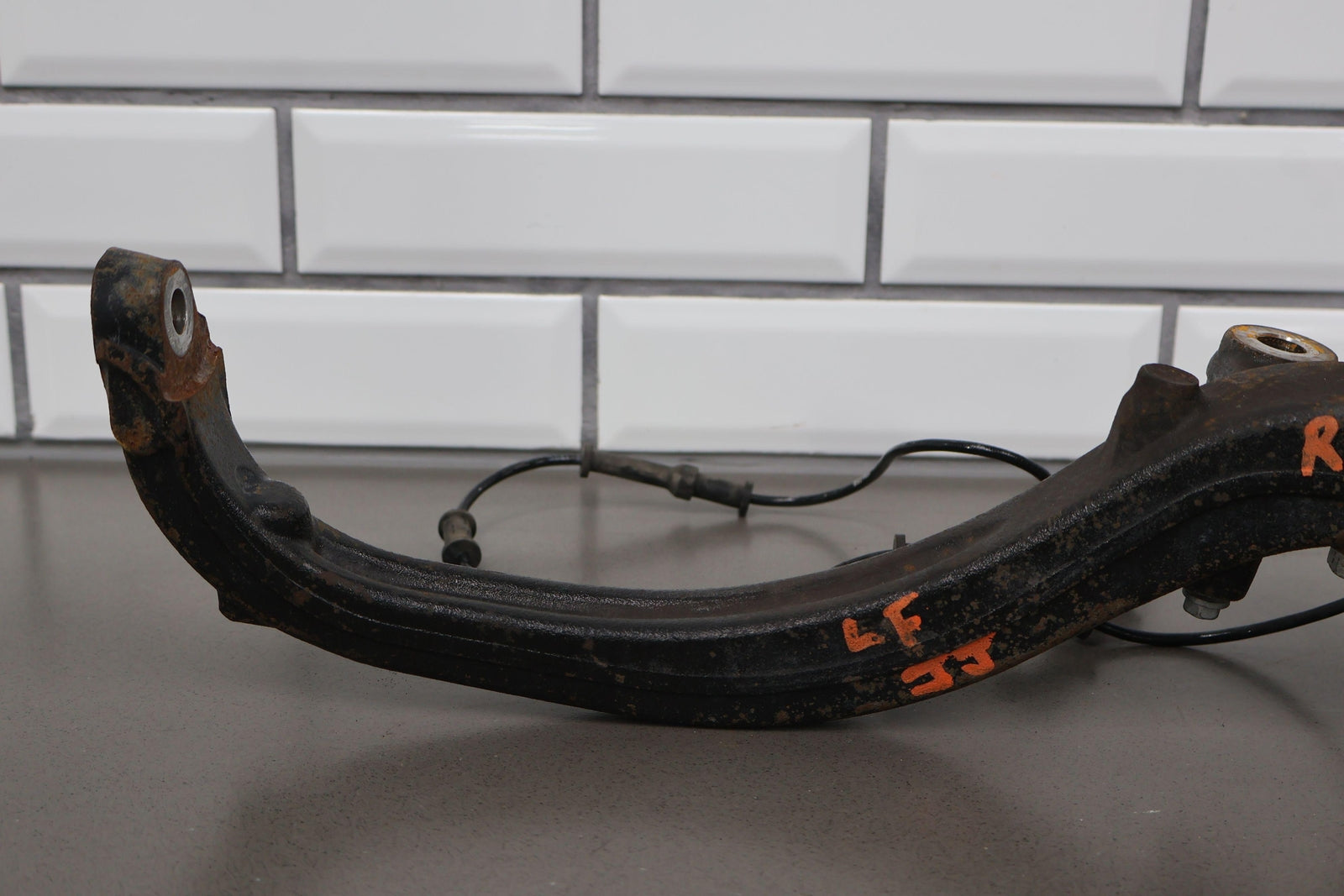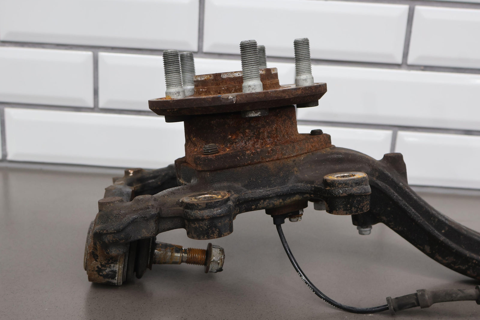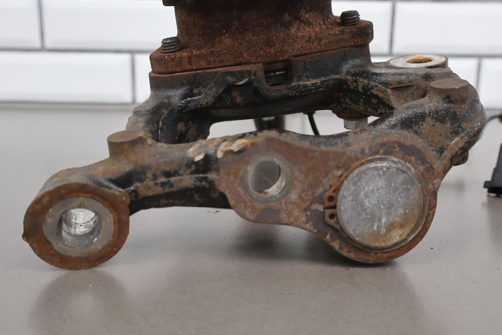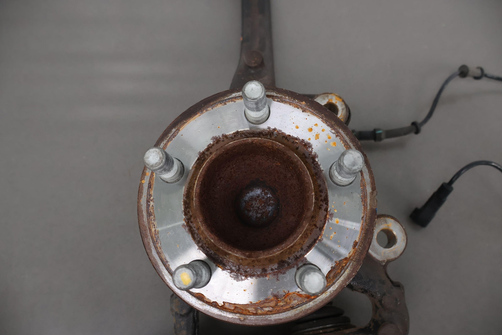 Eje delantero izquierdo, pinza de 6 pistones (opción Br7), incluye rótula inferior, cubo, sensor ABS, herrajes varios, acabado desgastado