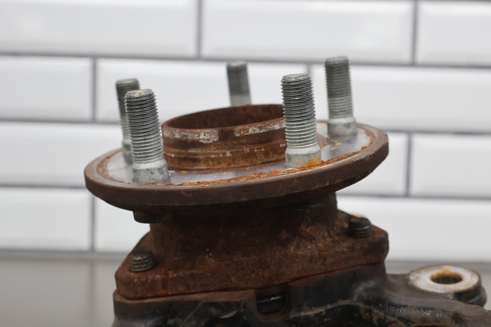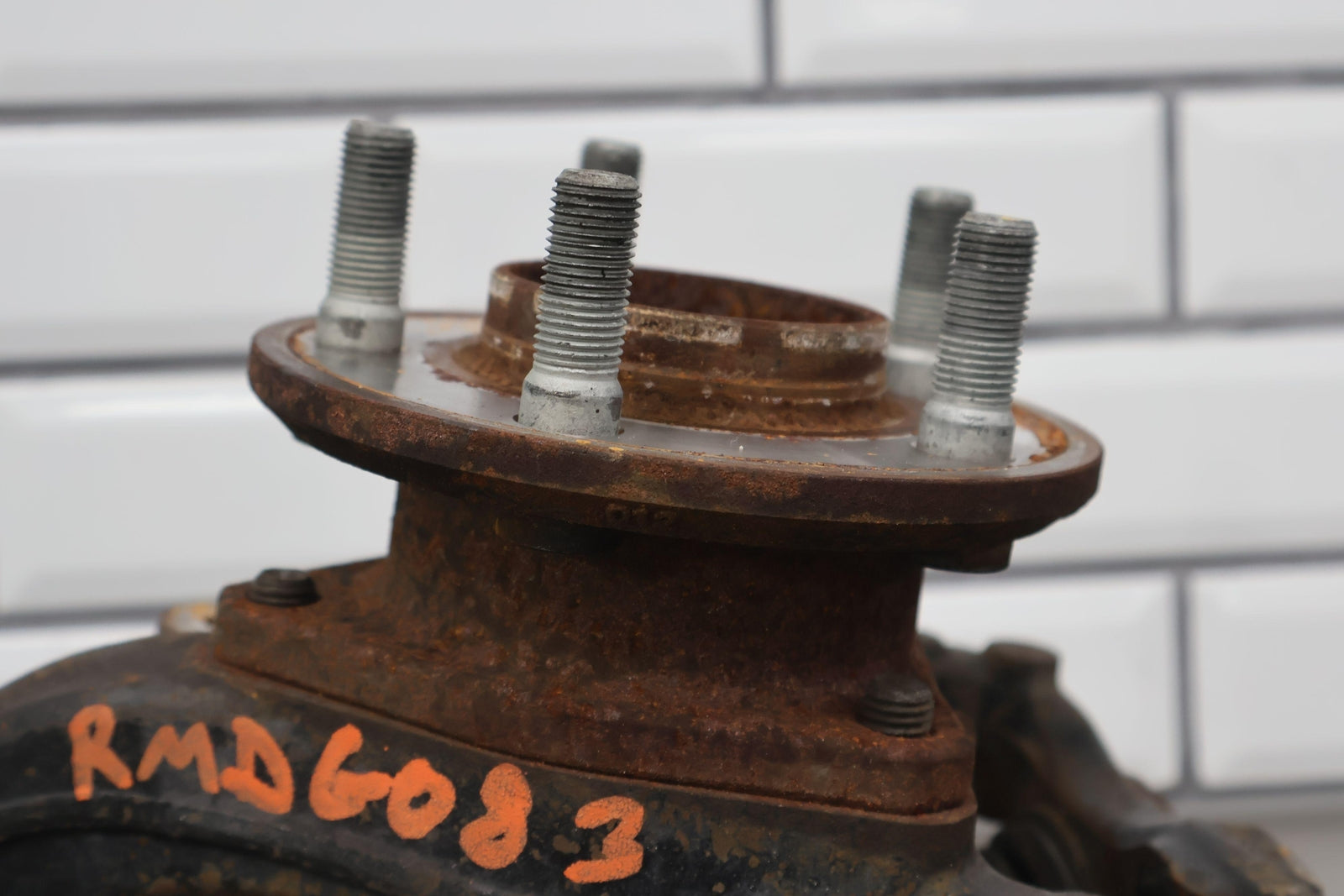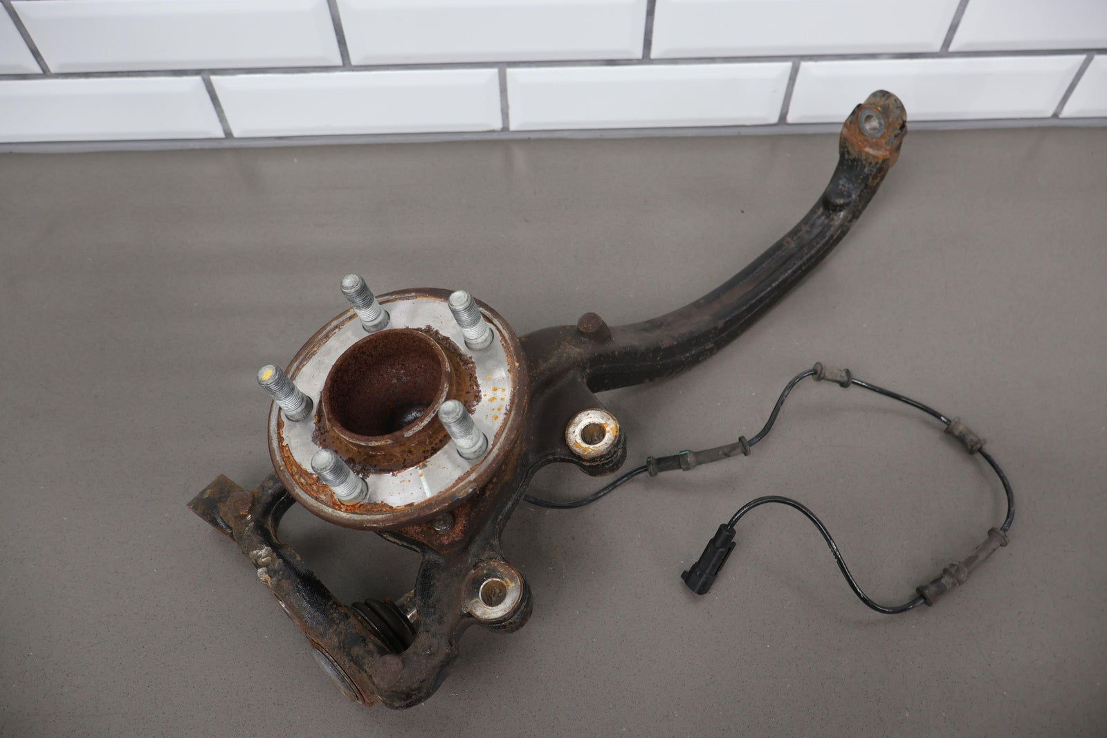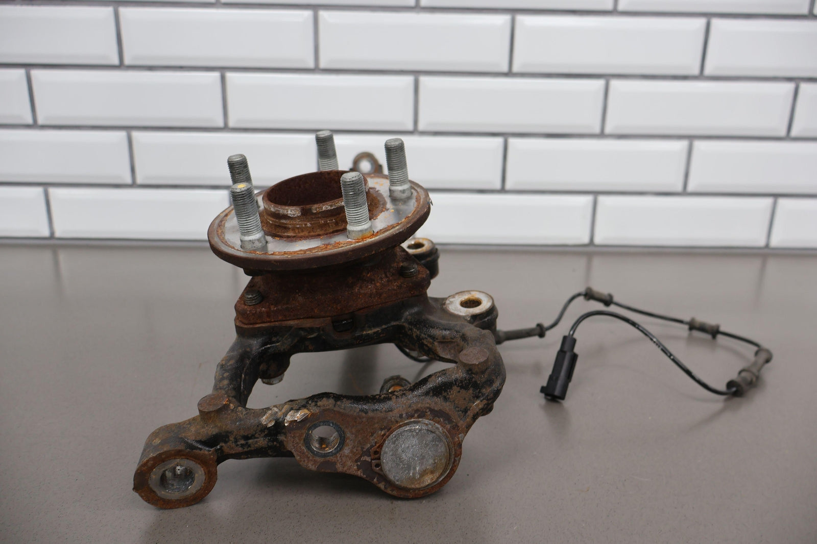 Eje delantero izquierdo, pinza de 6 pistones (opción Br7), incluye rótula inferior, cubo, sensor ABS, herrajes varios, acabado desgastado