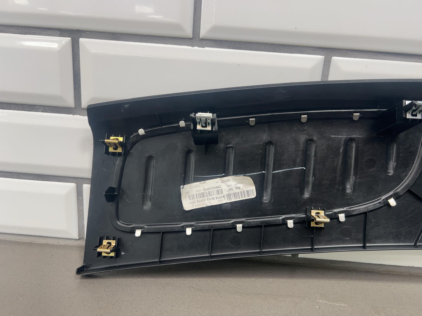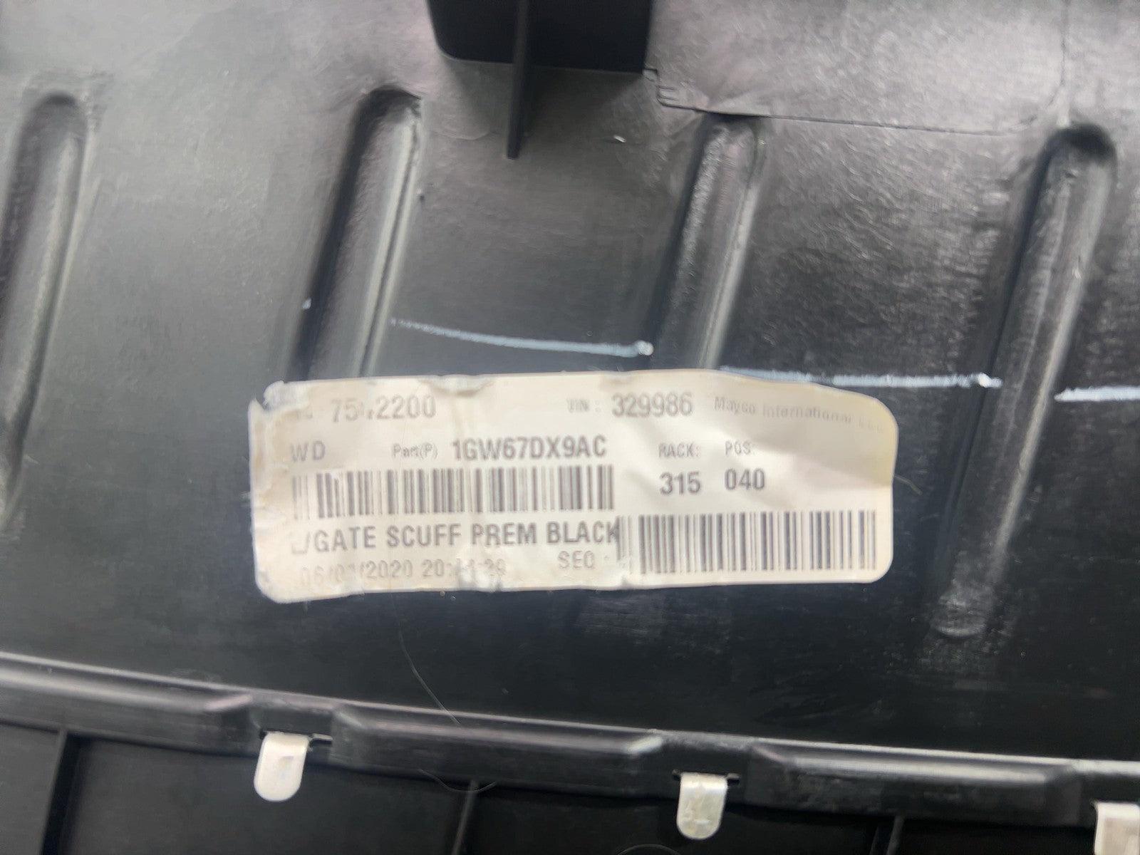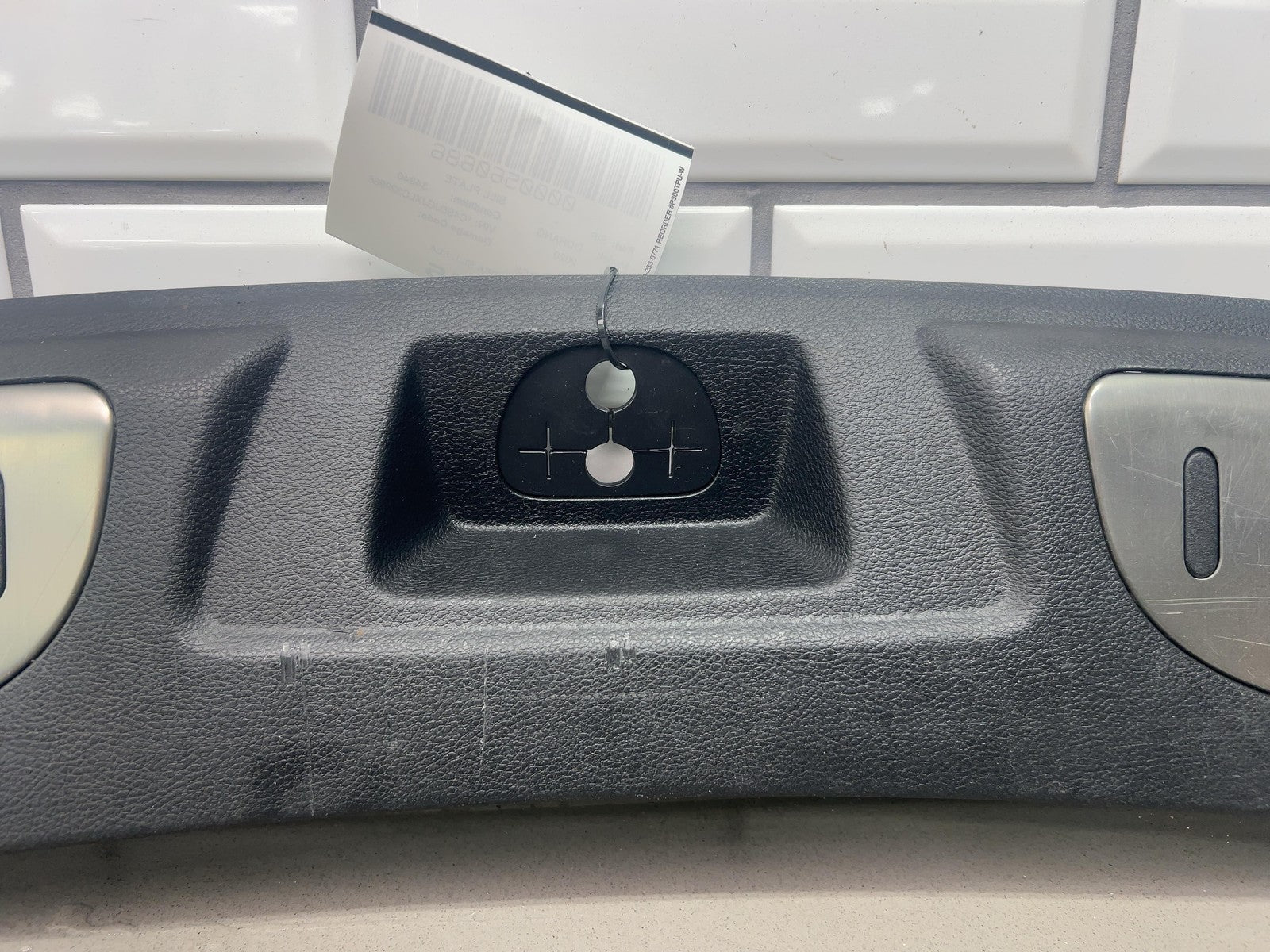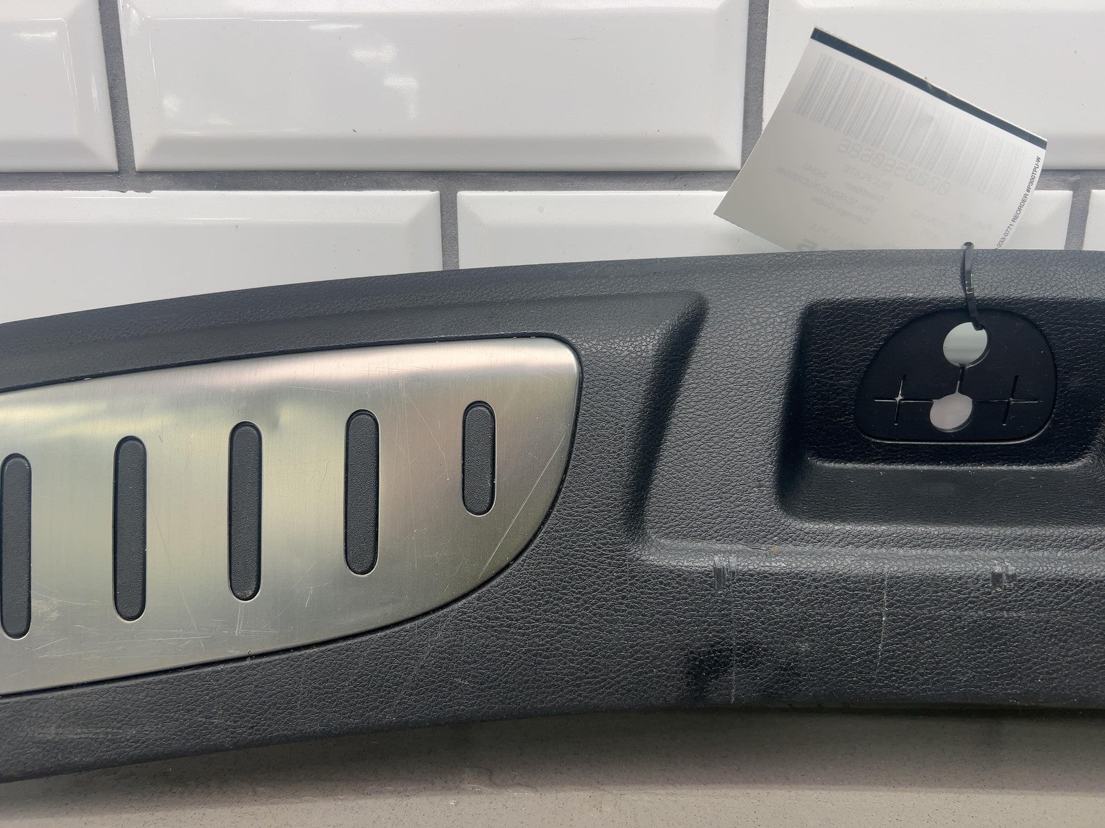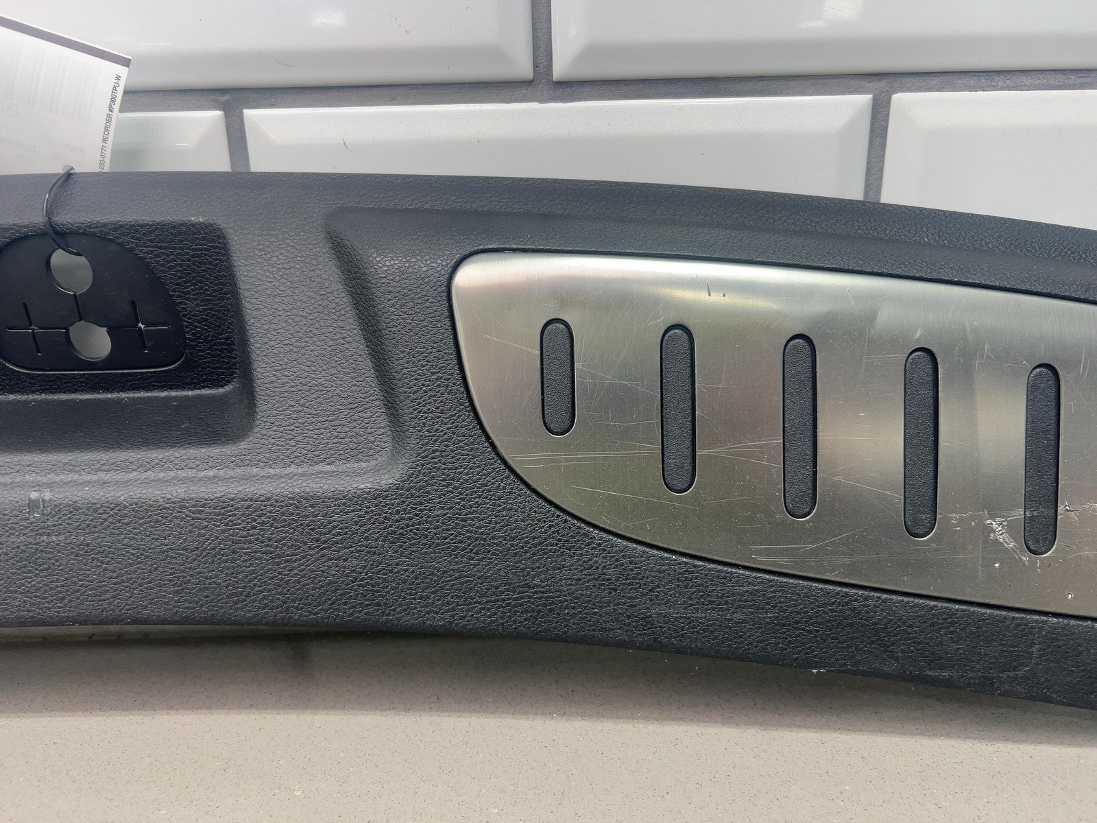 Notas importantes: Placa de umbral del área de carga del portón trasero, negra (x9), rayones/arañazos leves