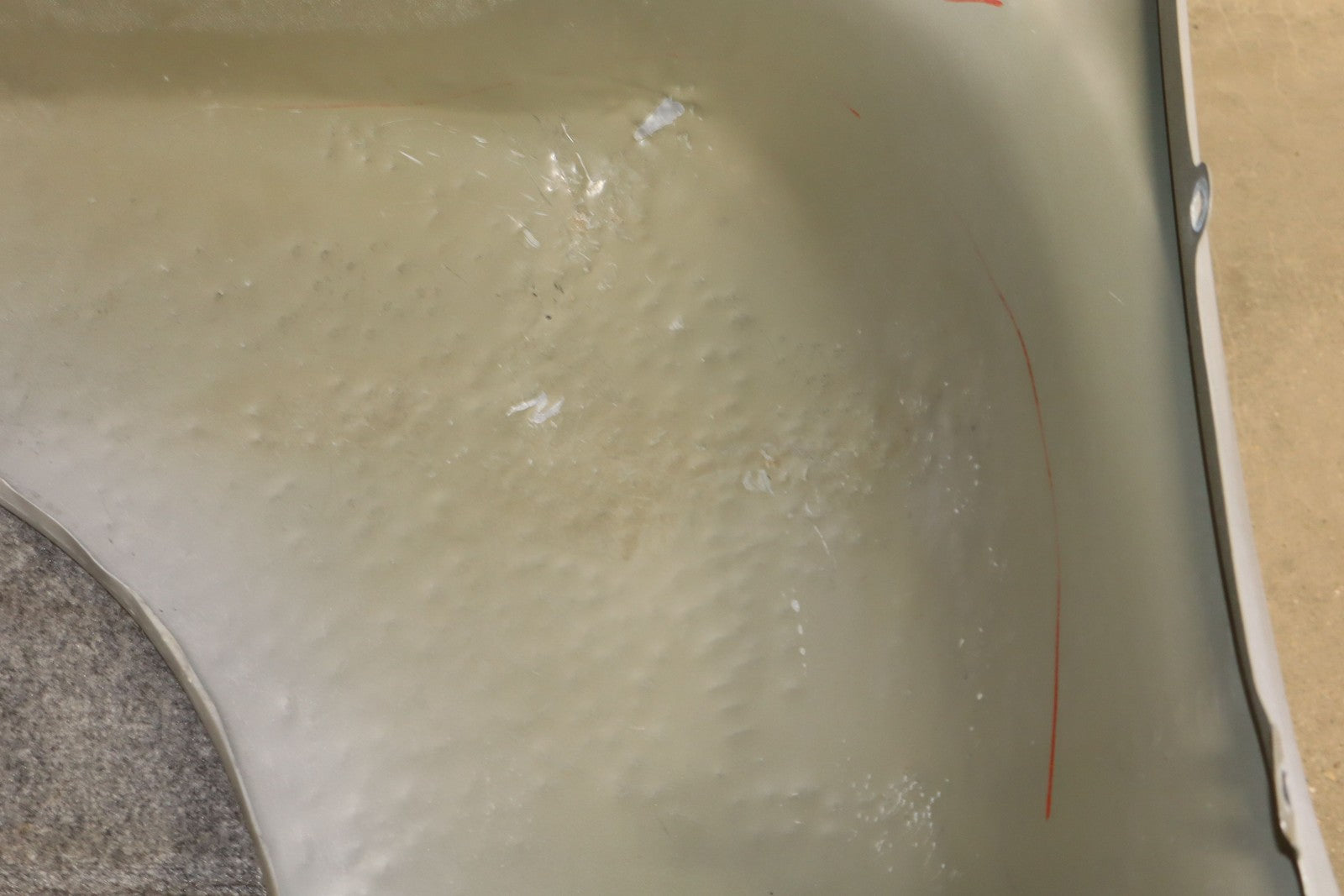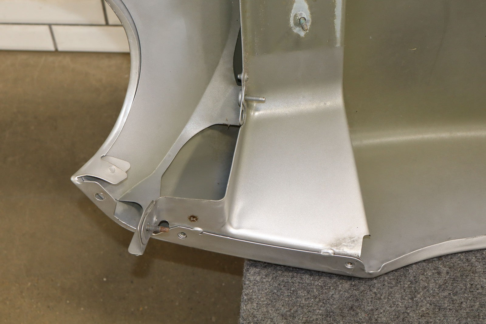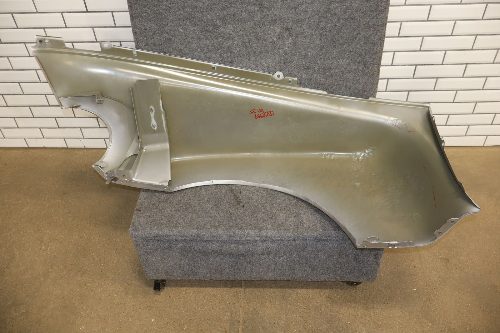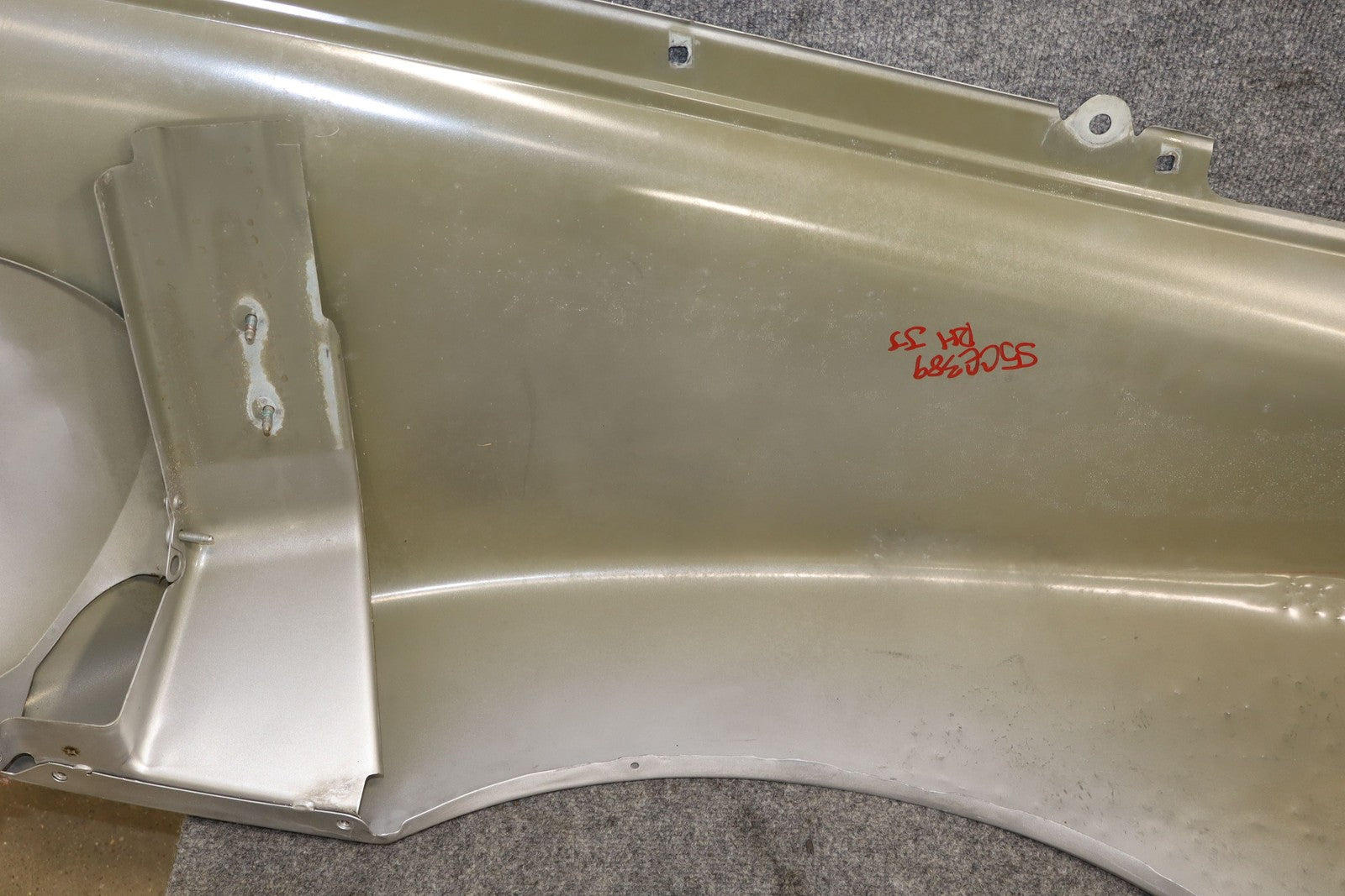 Rh, Riccochet Silver Metallic (67u-respray), Large Previous Repair (red), Mild Scuffs/scratches