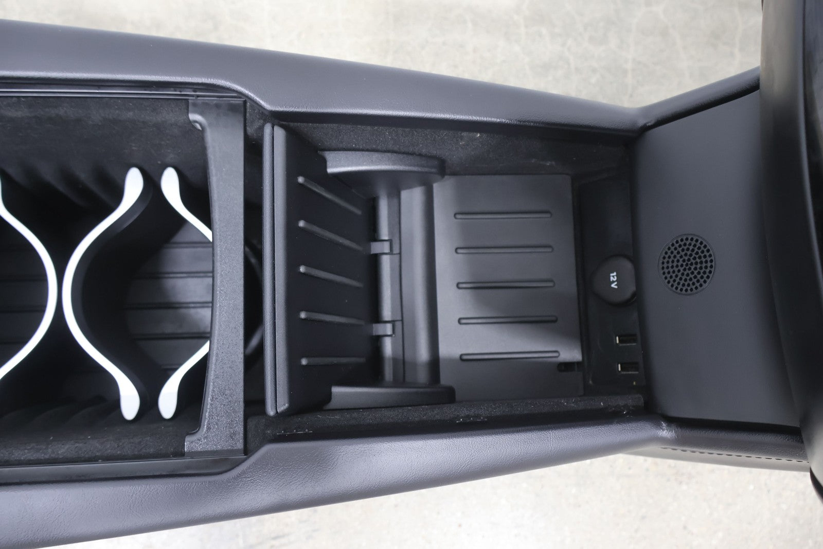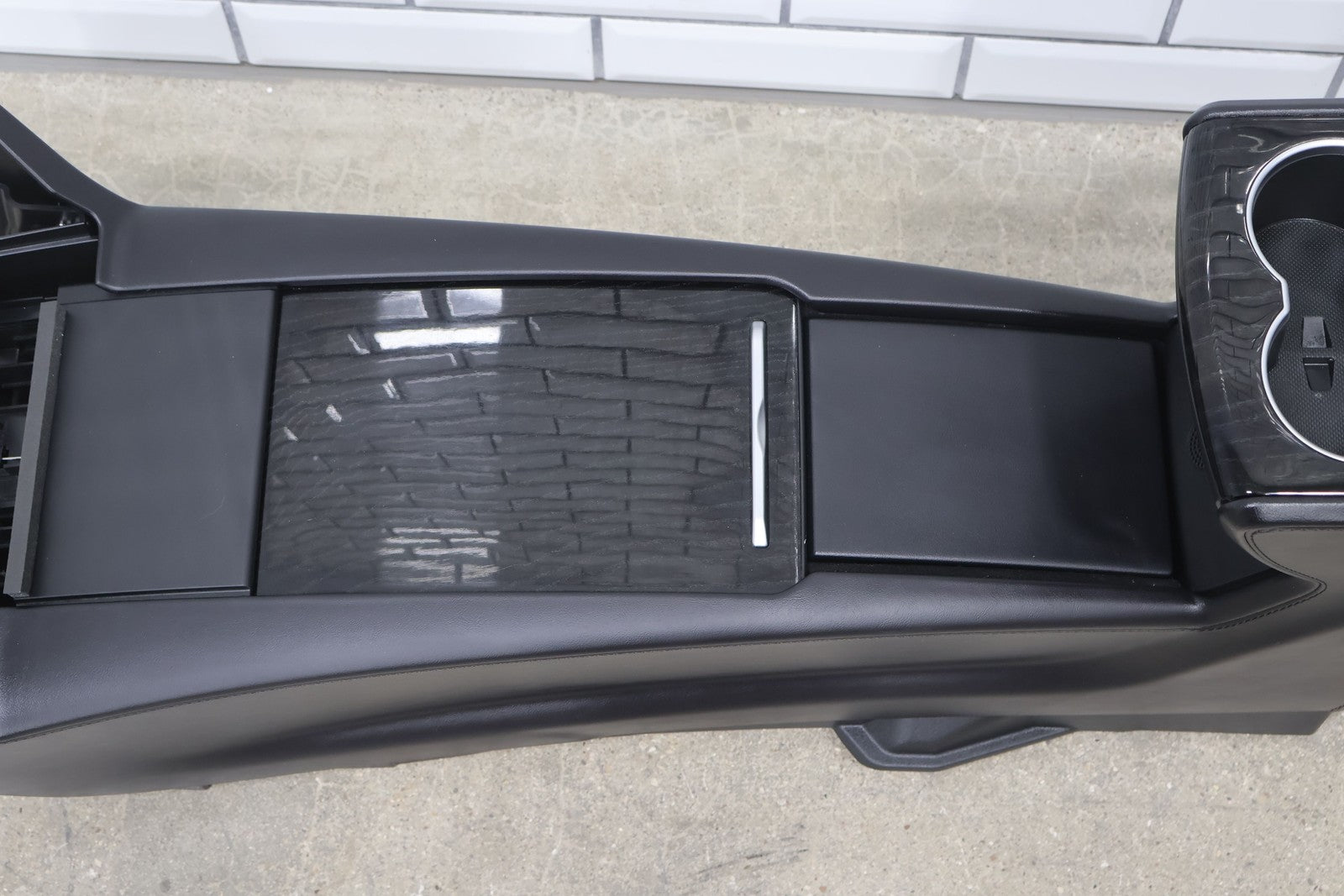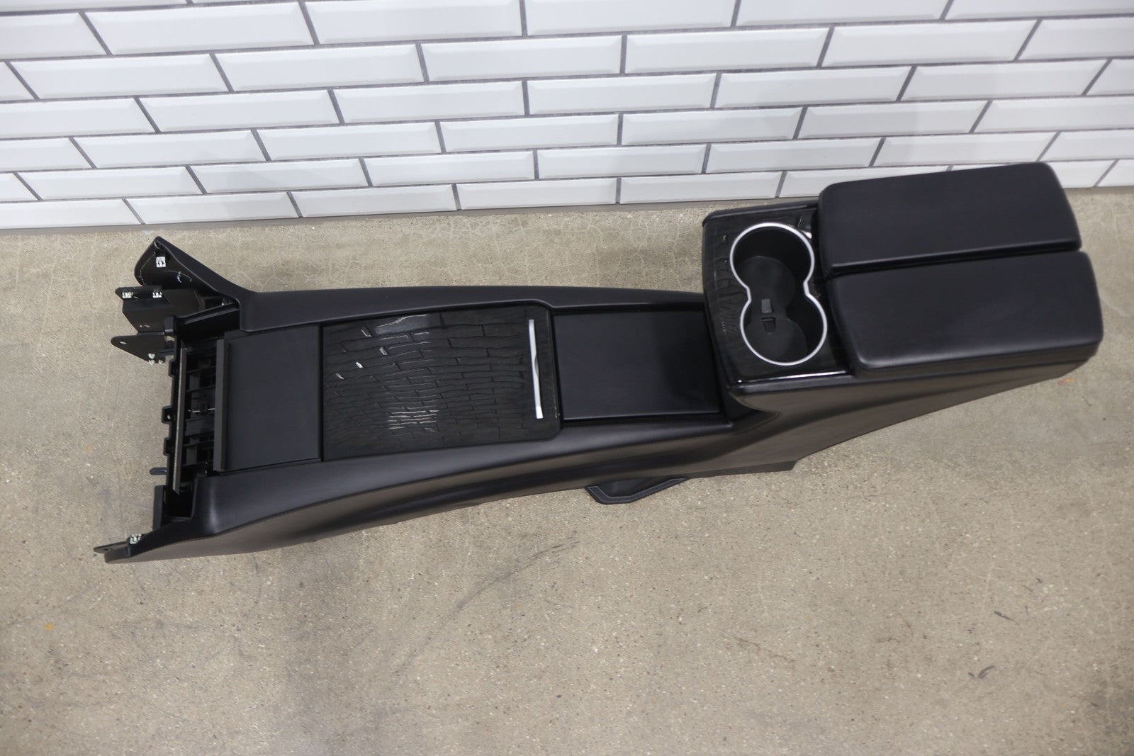 Floor Console, Black (blk), Includes Arm Rest/black Woodgrain Trim, Lid Scuffs/scratches, Mounted Solid