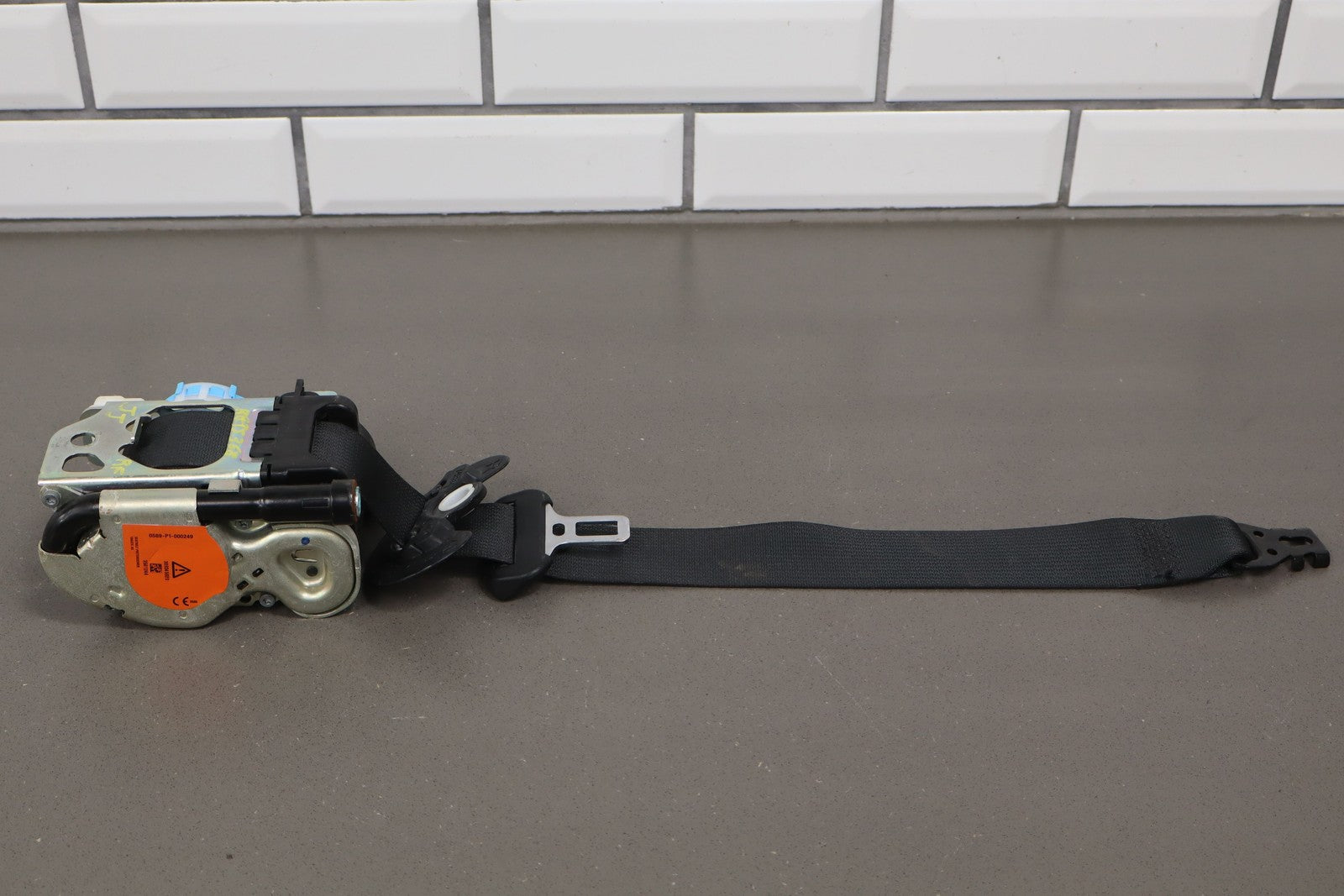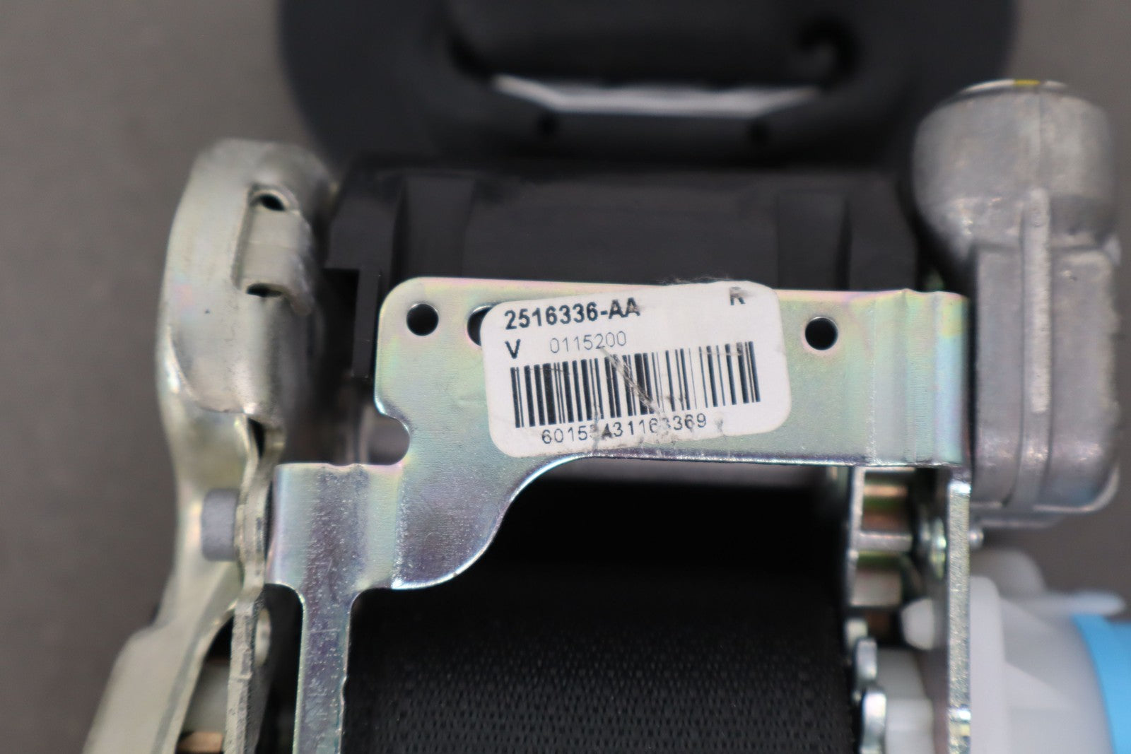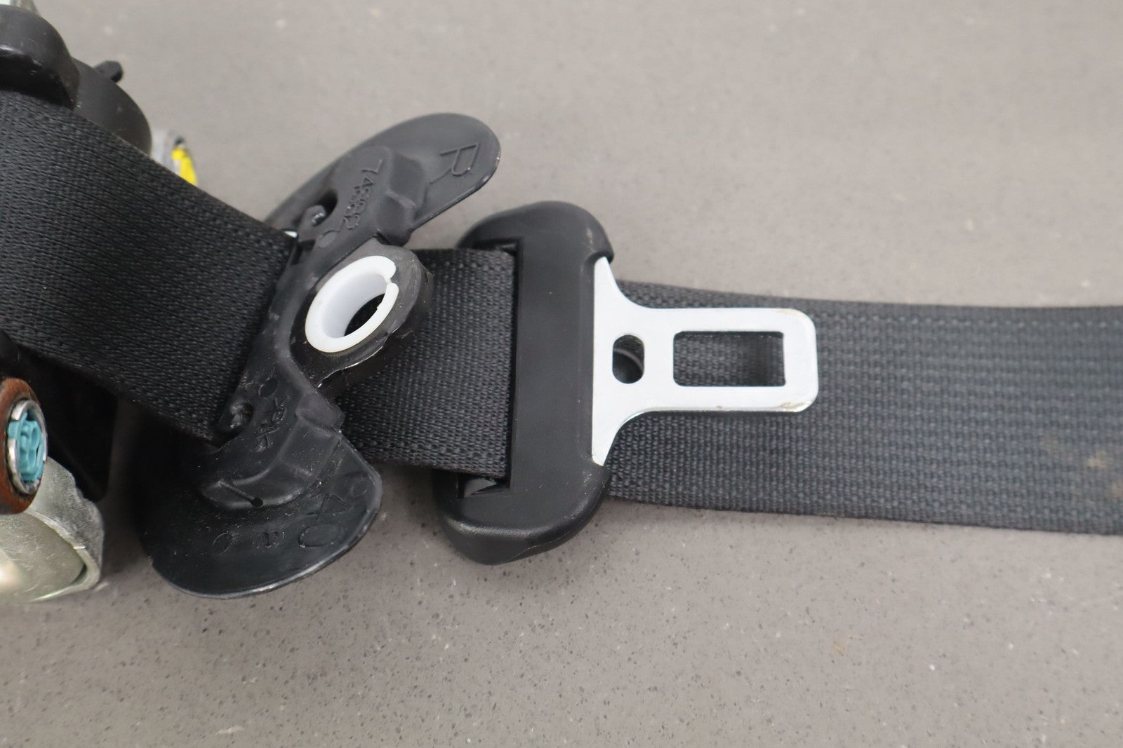 Important notes: Rh Front Retractor, Black, Mild Wear, Light Staining, Retracts Properly