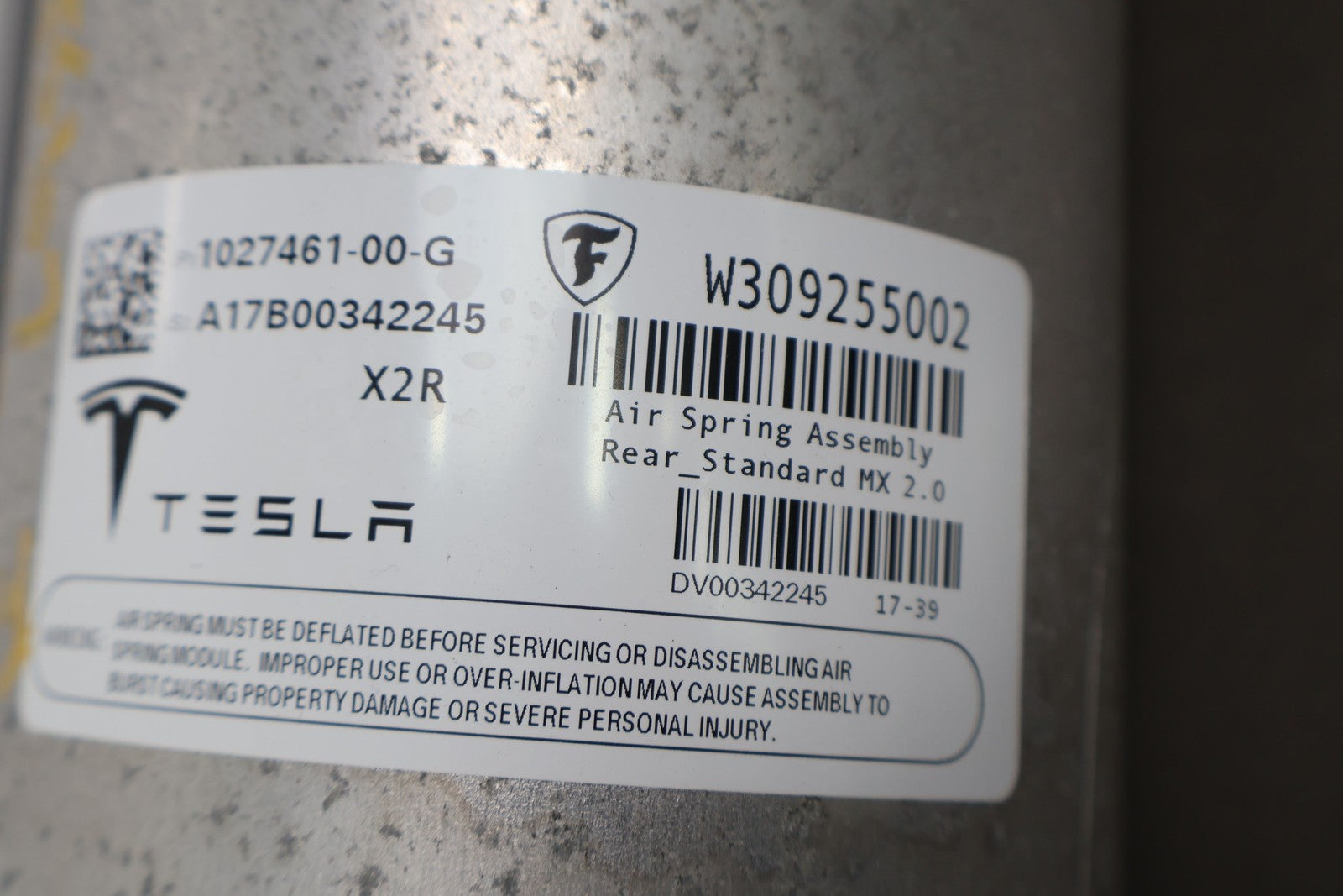 2016-2020 Tesla Model X Rear Left LH Air Strut OEM (1027461-00-G) OEM