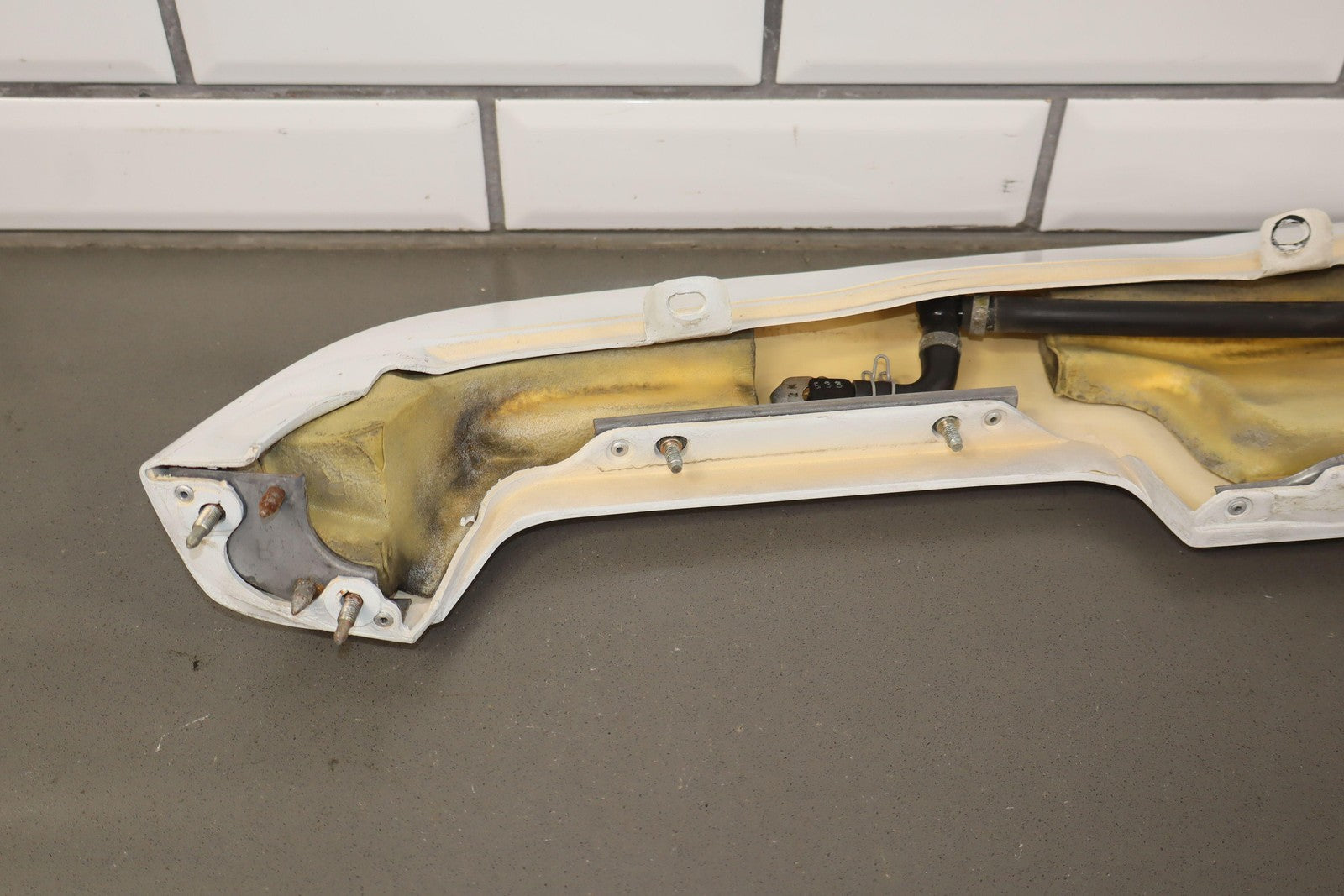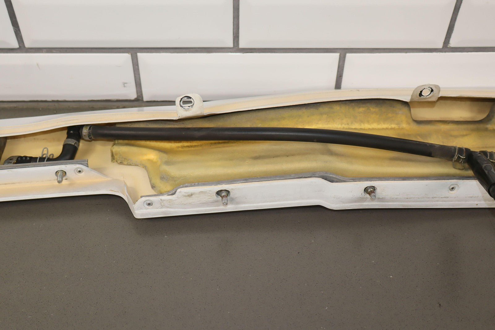 Front Bumper Headlight Washer Panel, Super White (040), Includes Sprayers-lines, Decent Sun Fade